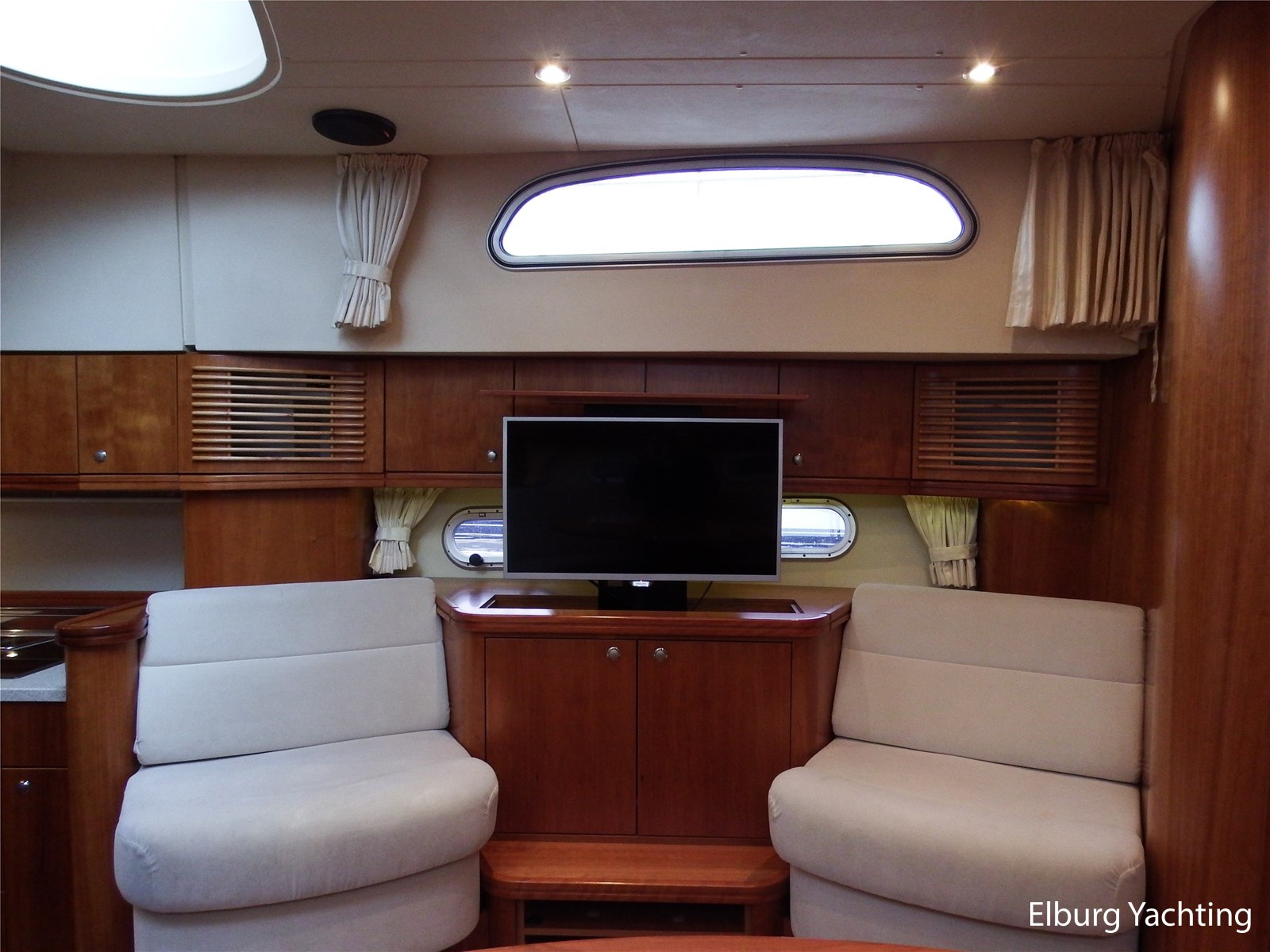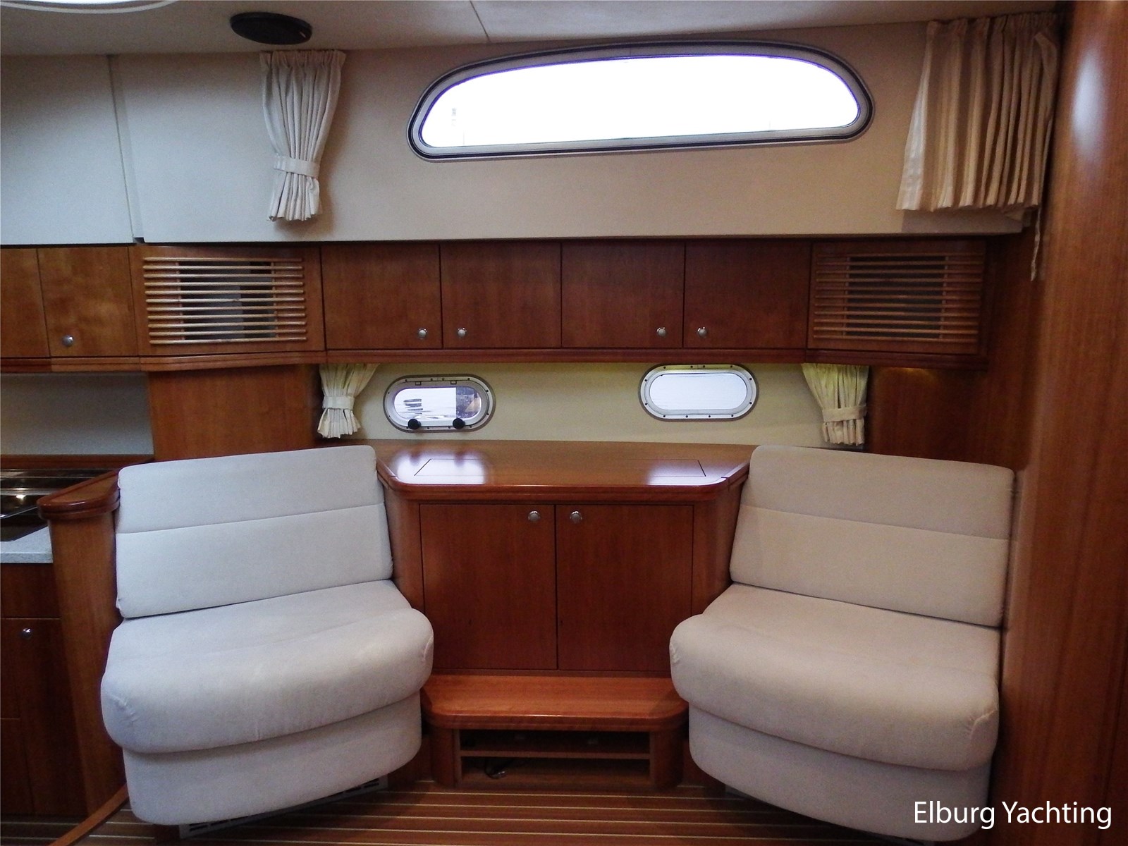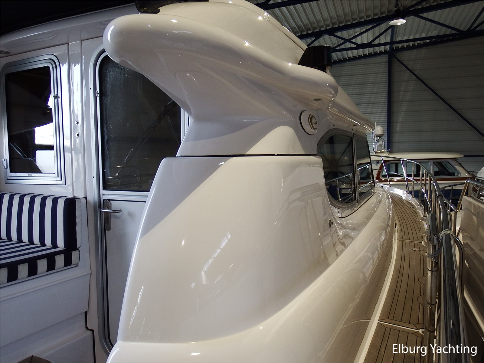 Verder wordt het jacht geleverd met: Groot achterdek met vaste bank, Biminitop over achterdek, groot schuifdak in vast stuurhuis, luxe vaarstoel met lederen bekleding, dubbele r.v.s. zeereling, r.v.s. stootlijst, ruime dinette in salon, veel kastruimte, dekkasten op achterdek, raam in de spiegel bij eigenaarshut, combi wasmachine/droger, vaatwasser, achteruitvaarcamera, TV in de salon, Stereo installatie, hekdouche, vloerverwarming, zonnebed op voordek, geveerde Savas vaarstoel, oceaanwaardig, veel bergruimte in de bilges, traptredes in de romp om eenvoudig aan boord te komen, opklapbare r.v.s. kikkers op zwemplatform, elektronische gashendel.