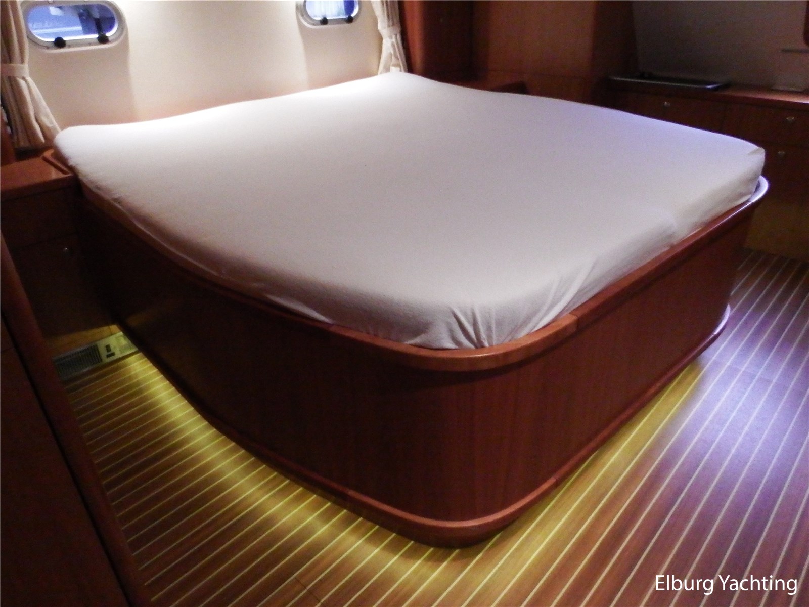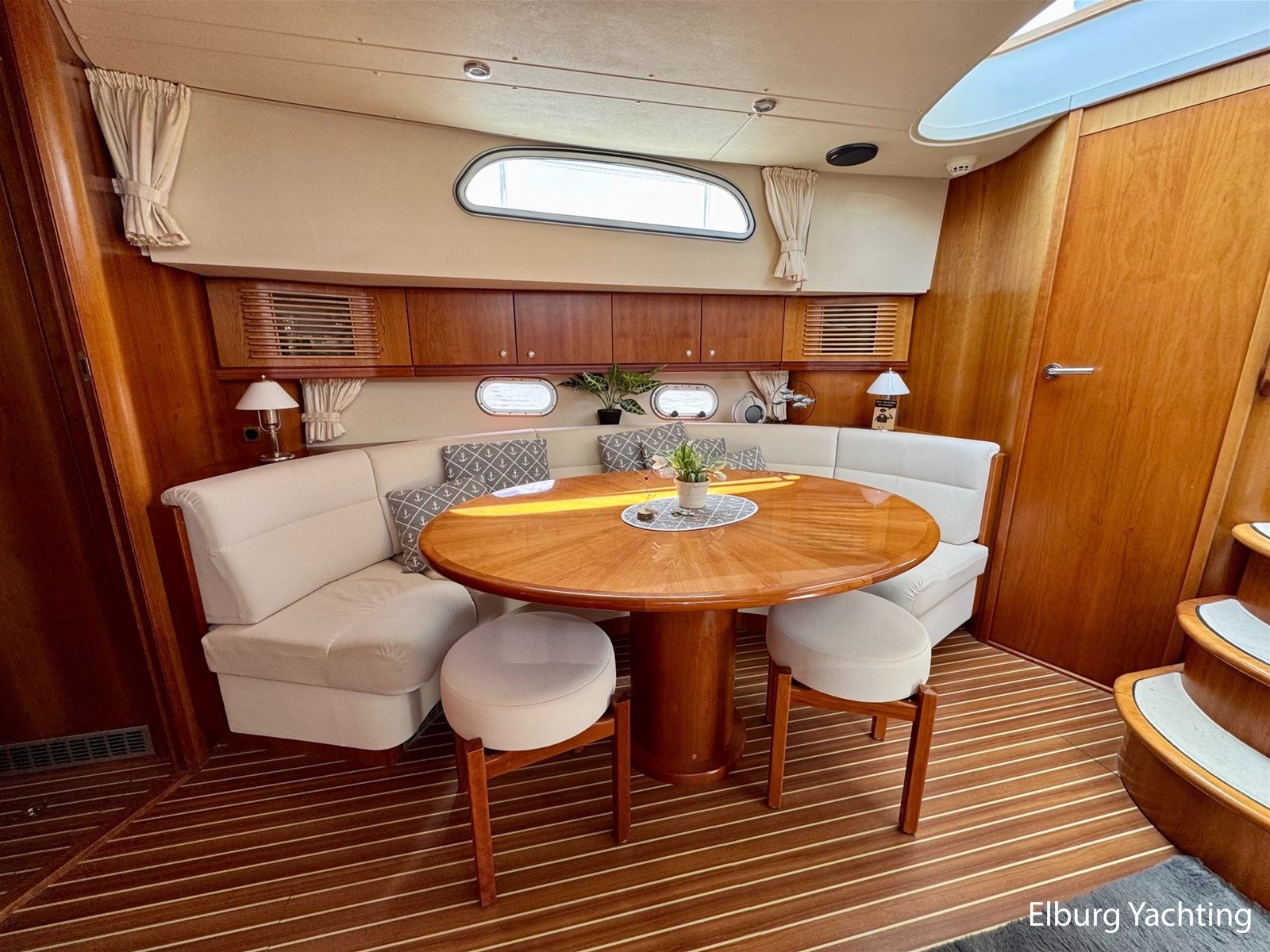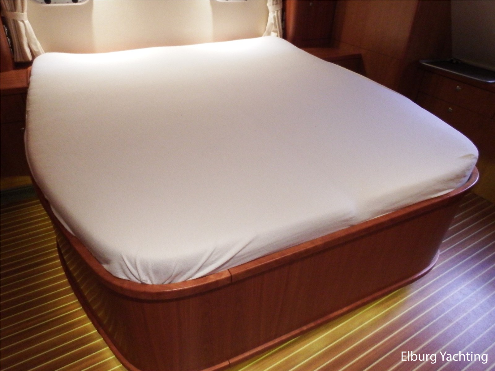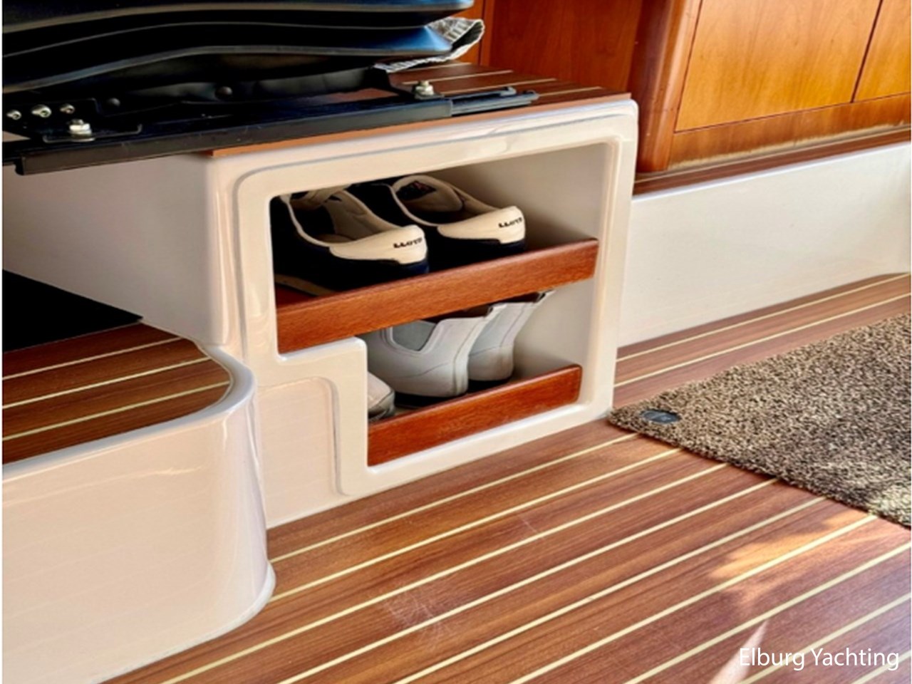 - Kersen+ teakvloer door gehele boot + witte stoffering (vernieuwd 2022)