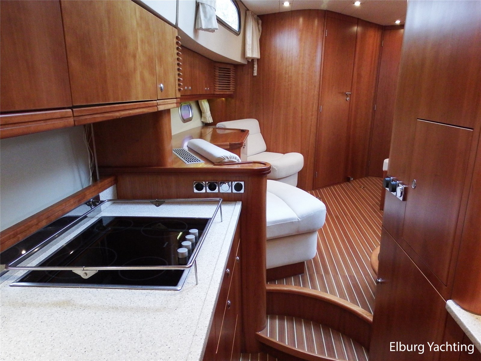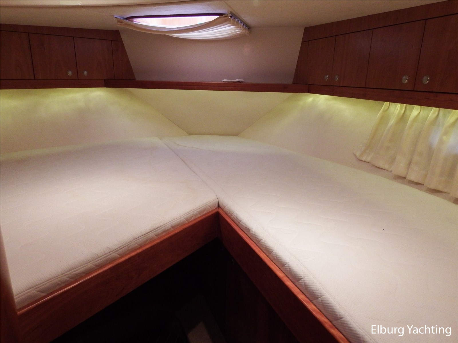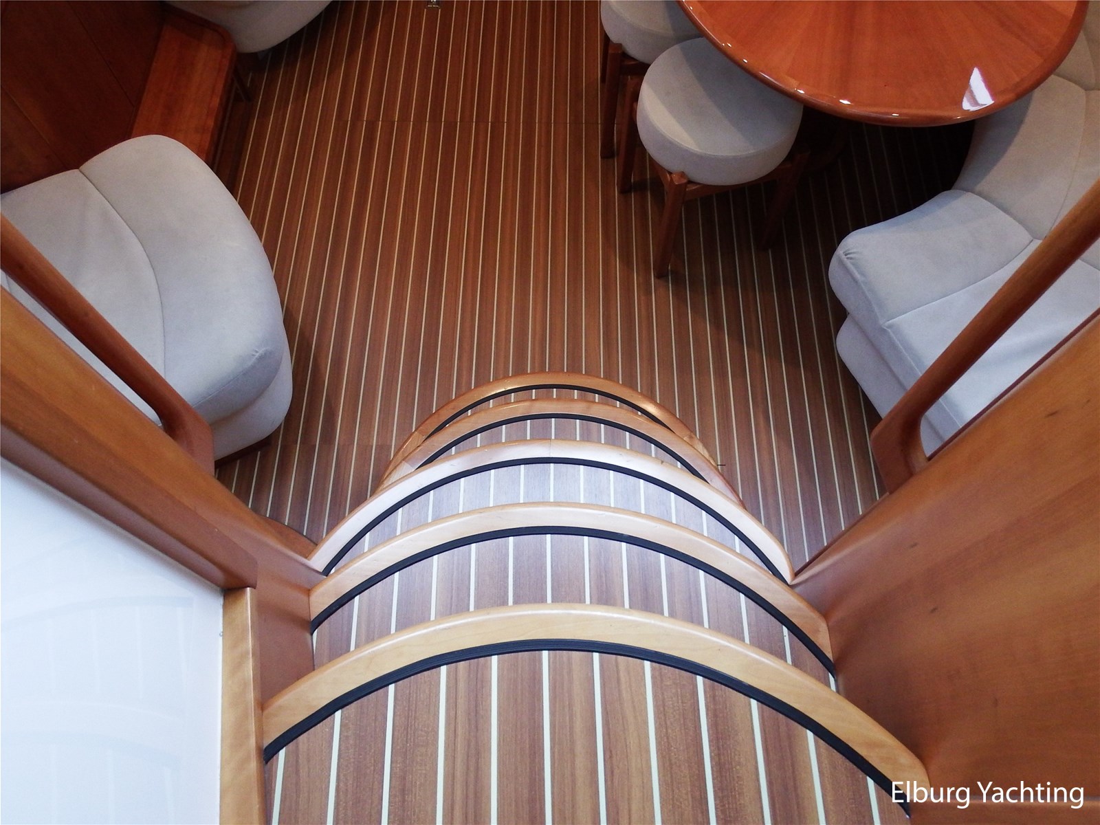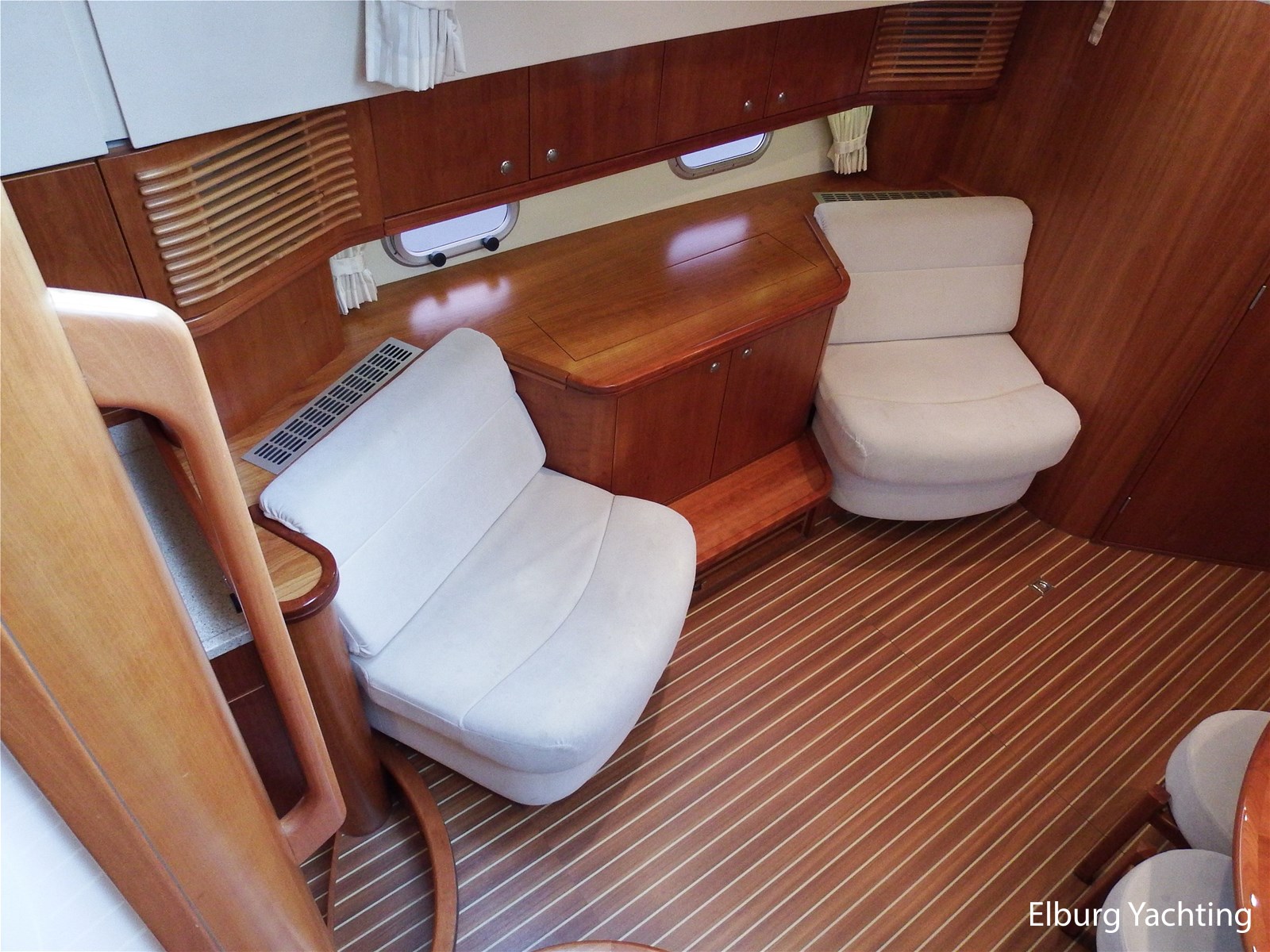 - Kersen+ teakvloer door gehele boot + witte stoffering (vernieuwd 2022)