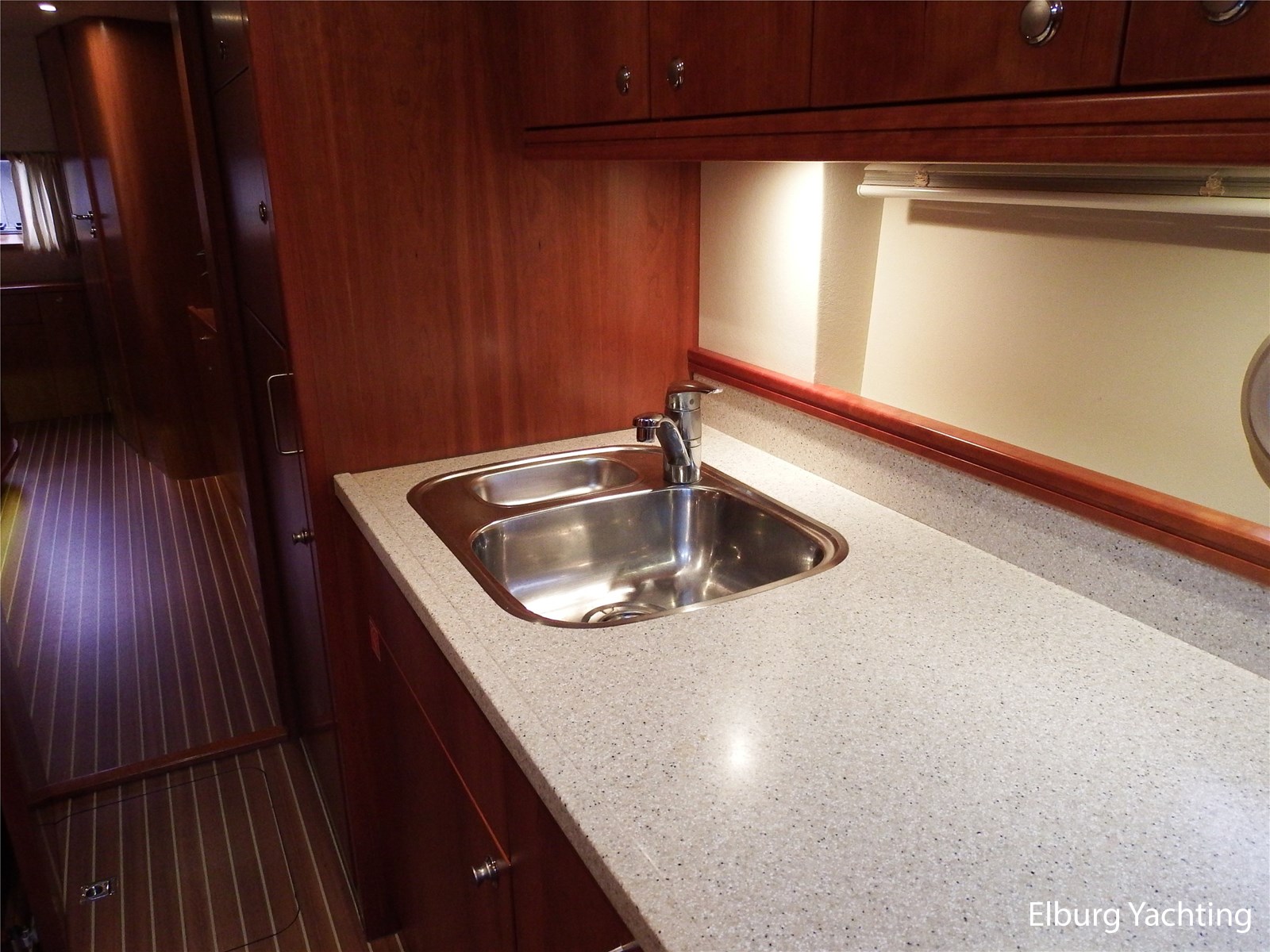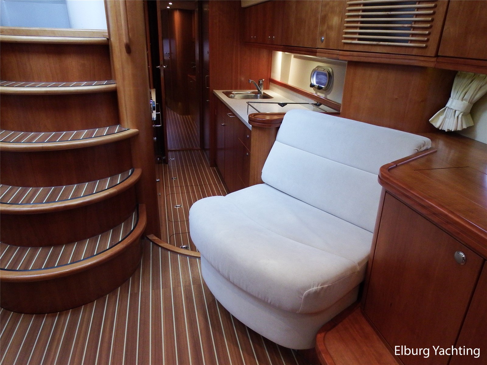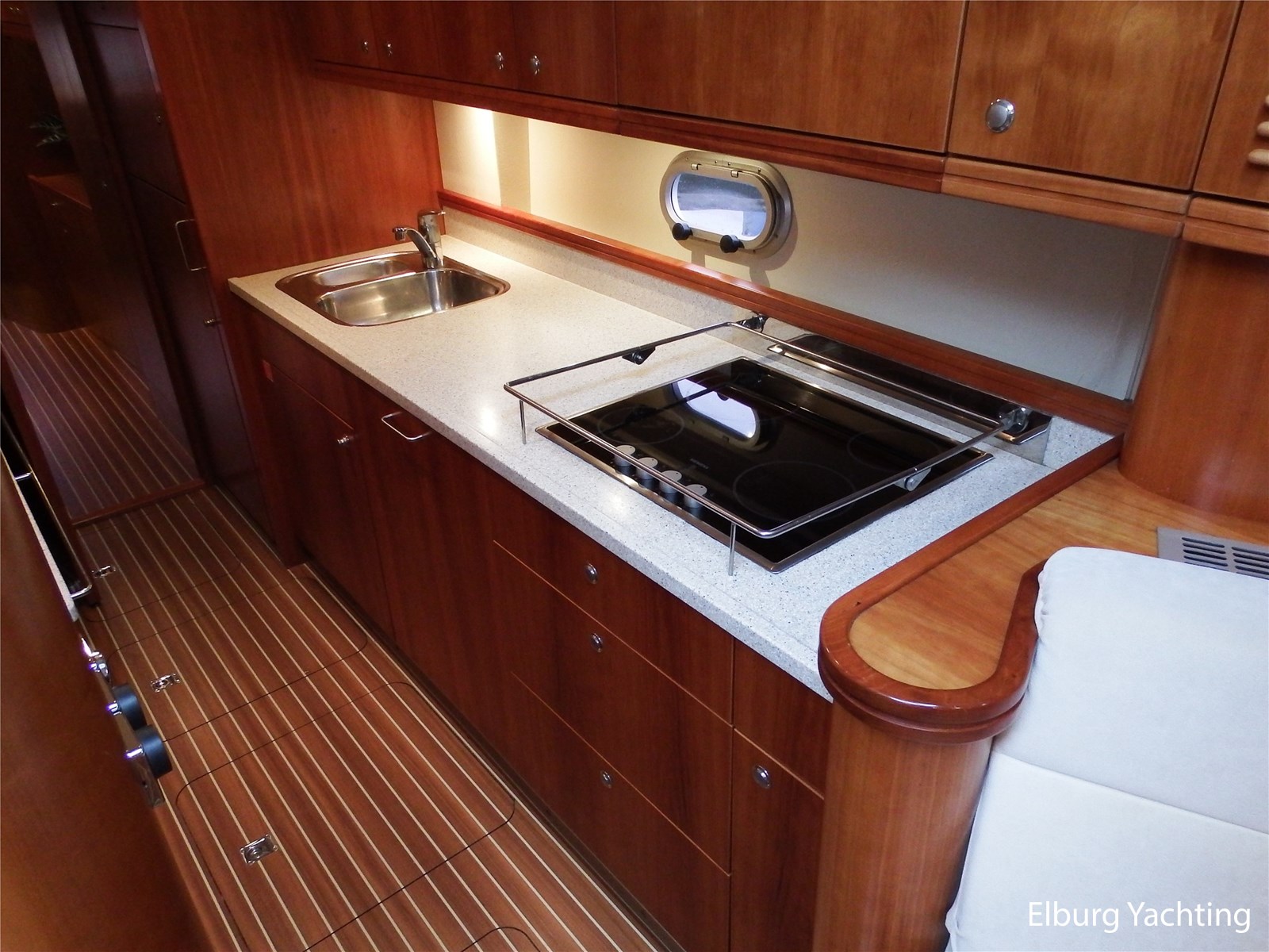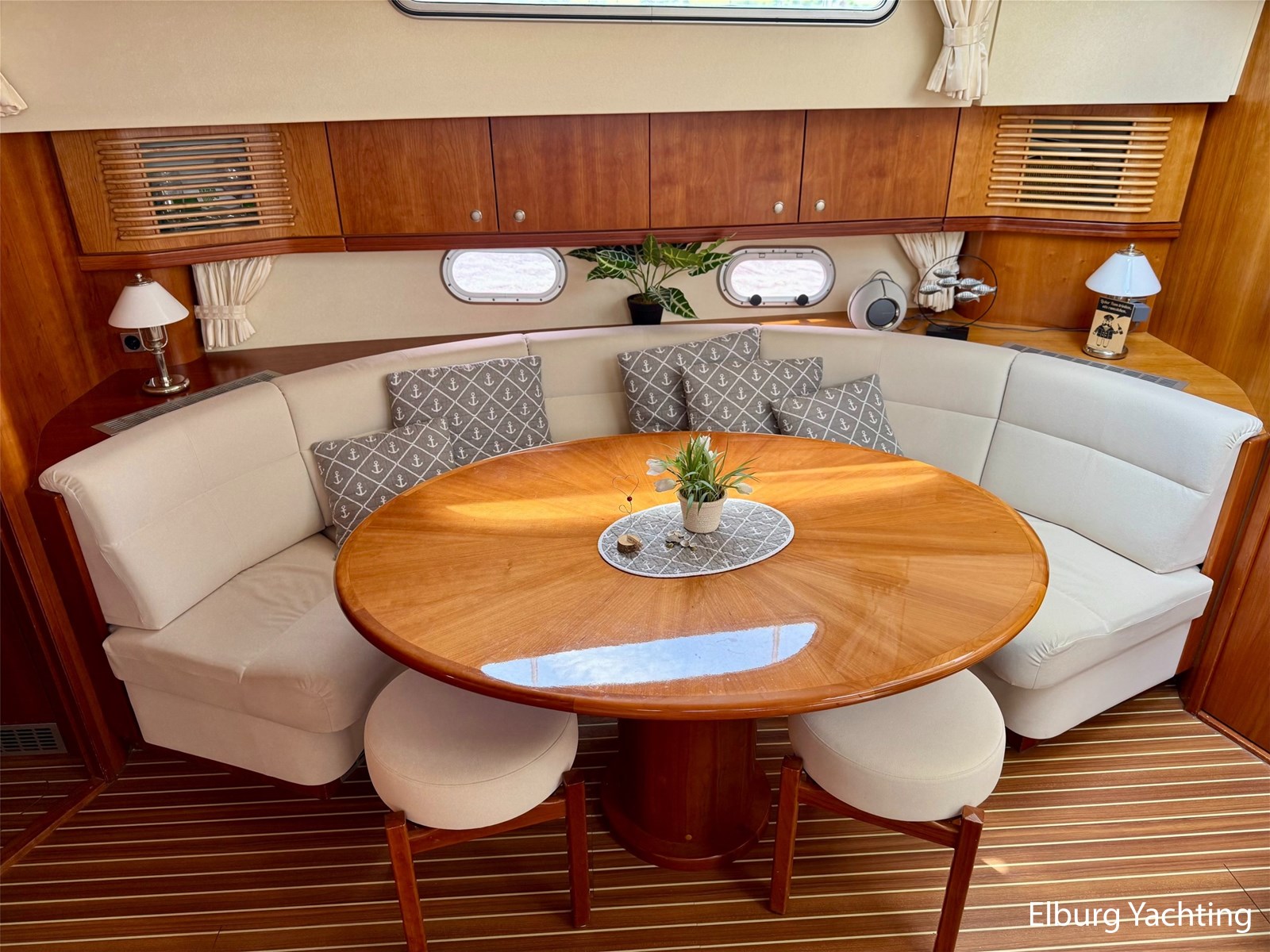 - Kersen+ teakvloer door gehele boot + witte stoffering (vernieuwd 2022)