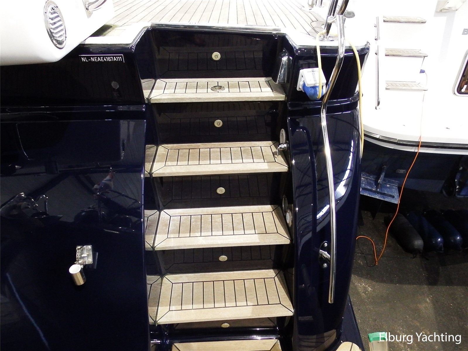 - Verlengd zwemplateau en ingelegd met teak (nagelopen 2022) + luie trap naar achterdek