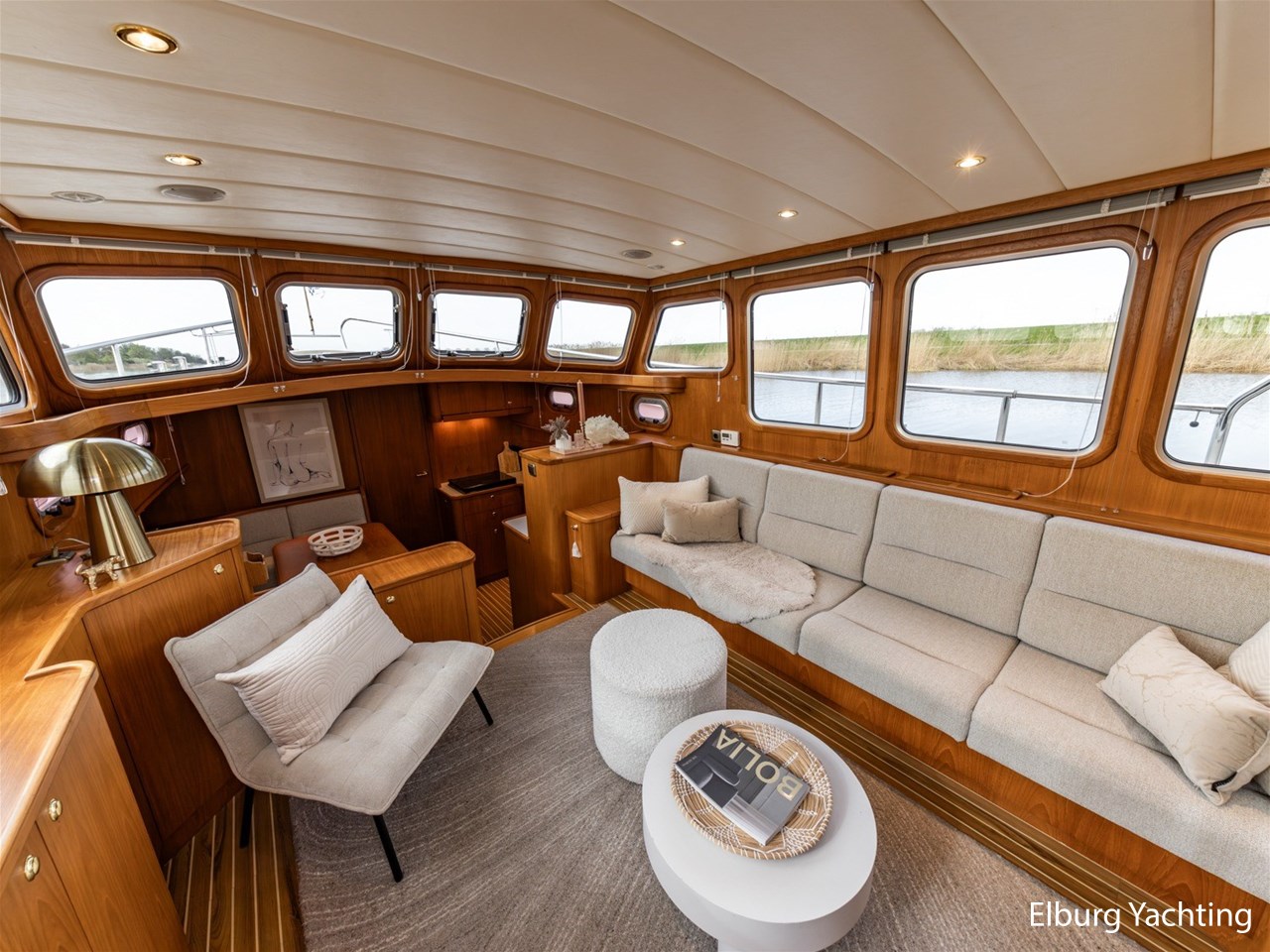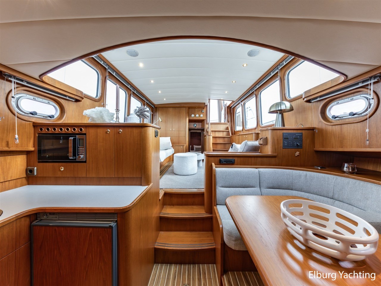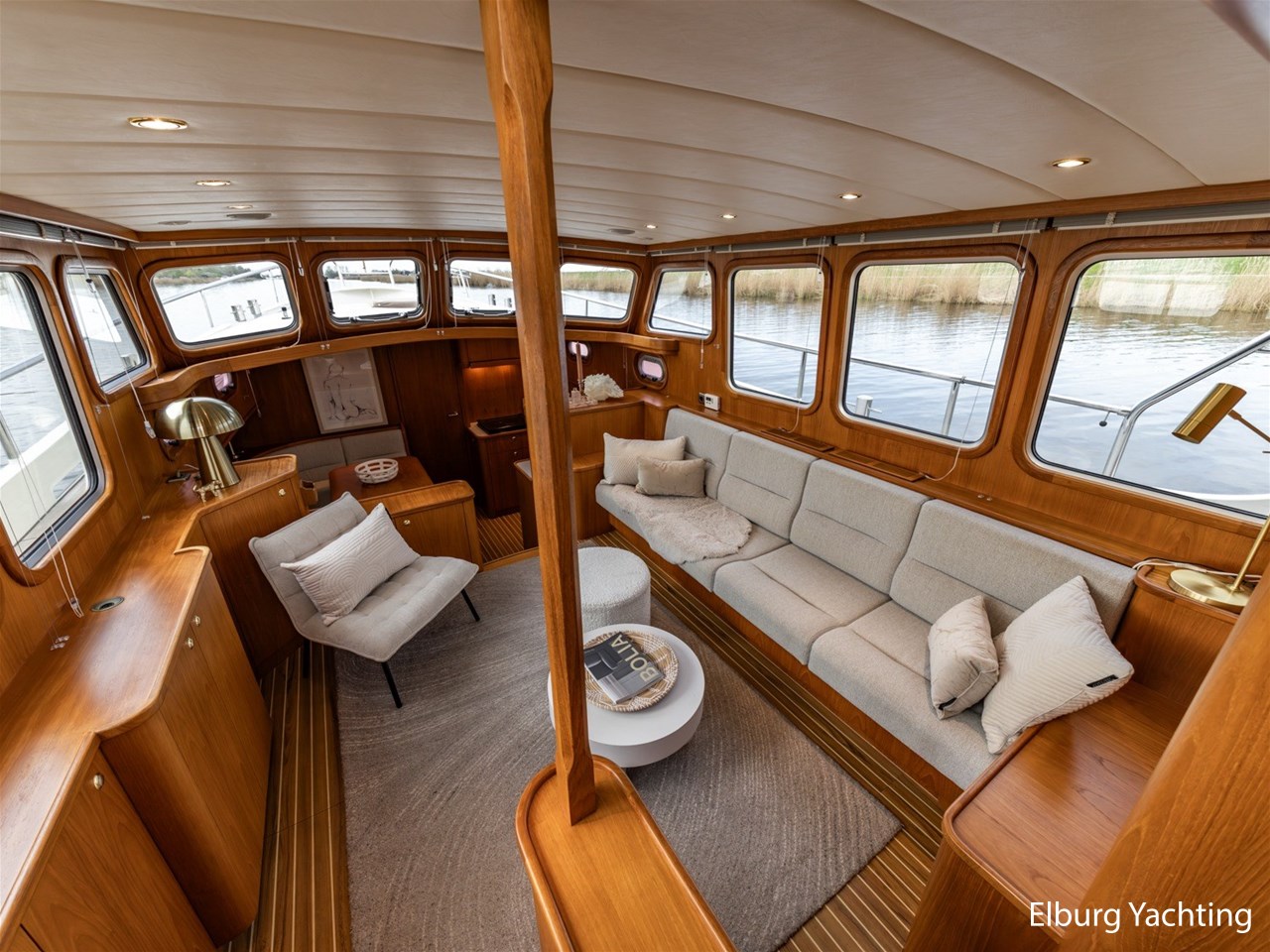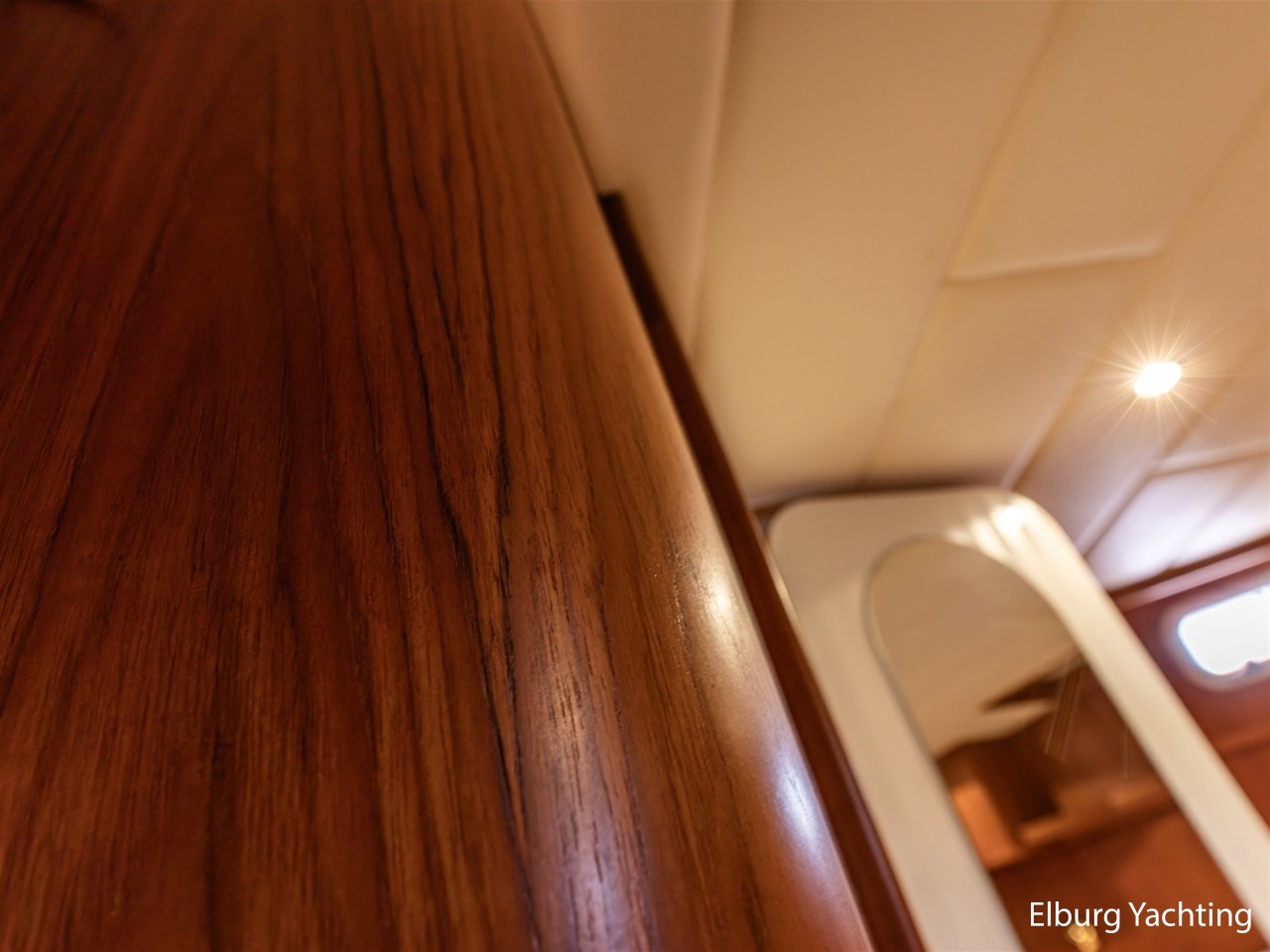 Beautiful Linden Kotter 13.70 aft cabin in good condition offered. The Zuiver is a very richly built Linden Kotter 13.70 that has been well maintained. The yacht was designed by renowned yacht designer Theo Gillissen and built by Linden Jachtbouw in Hardinxveld in 2005. Since then, the first owner has mainly kept the yacht indoors and only launched it for the beautiful summer weeks, which is clearly visible. Under the current owners, a number of changes have been made to the yacht in recent years. For example, it was fitted with beautiful light grey upholstery in 2024, and the support mast was made hydraulically lowerable, allowing a clearance height of approximately 3.50 metres to be achieved in a short period of time. The navigation equipment has been replaced. The wooden interior has been checked, the hull and superstructure are waxed every year, and the teak deck has been impregnated. In short, the yacht has been well cared for and is ready for a new owner! If you have any questions or would like to make an appointment, you are welcome at Elburg Yachting 7 days a week.
