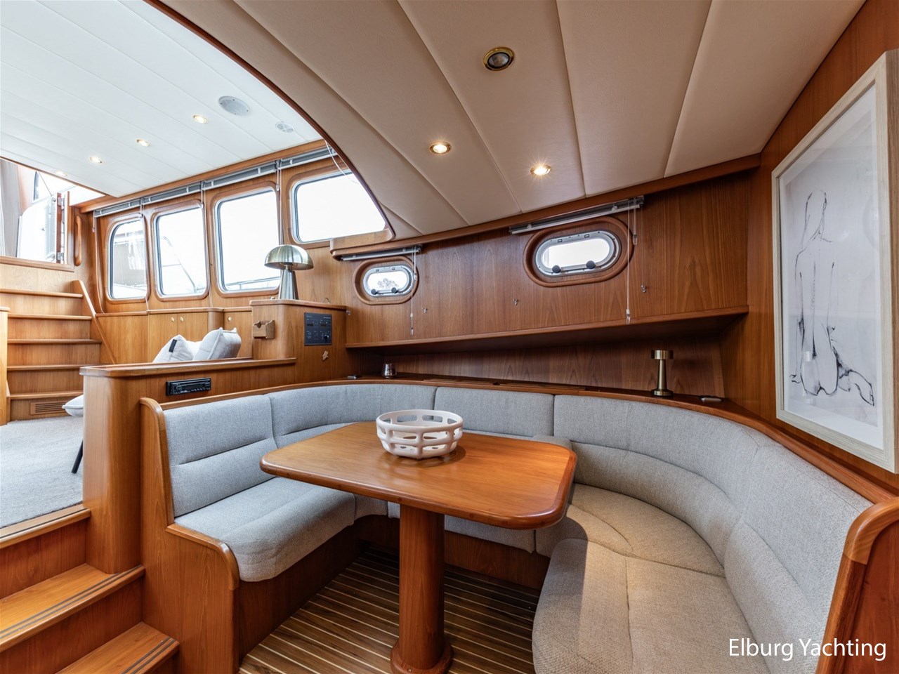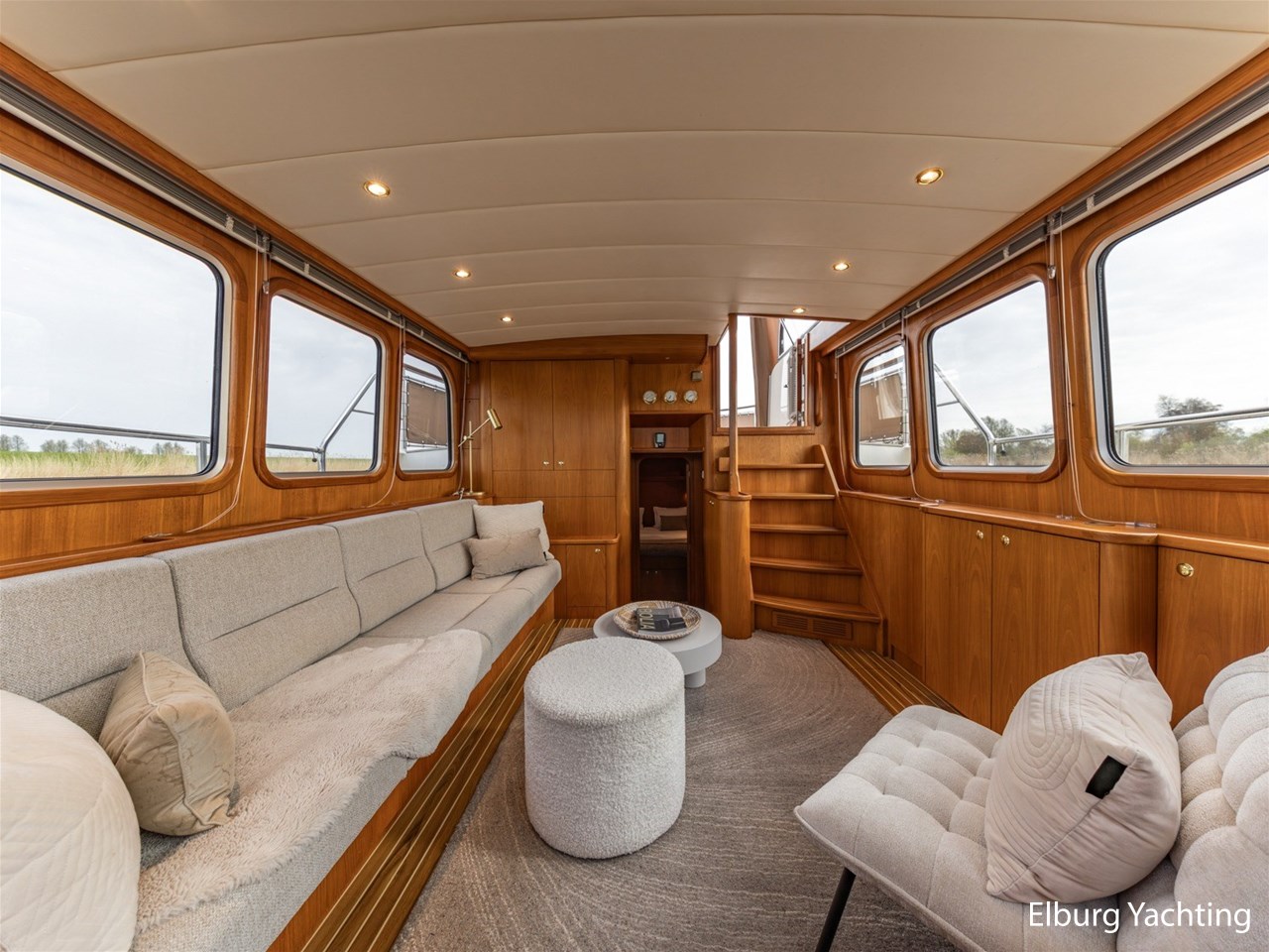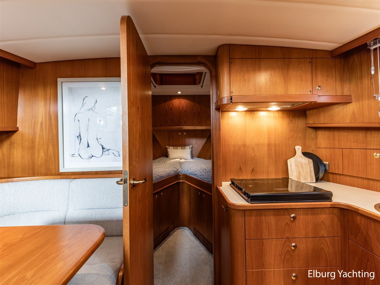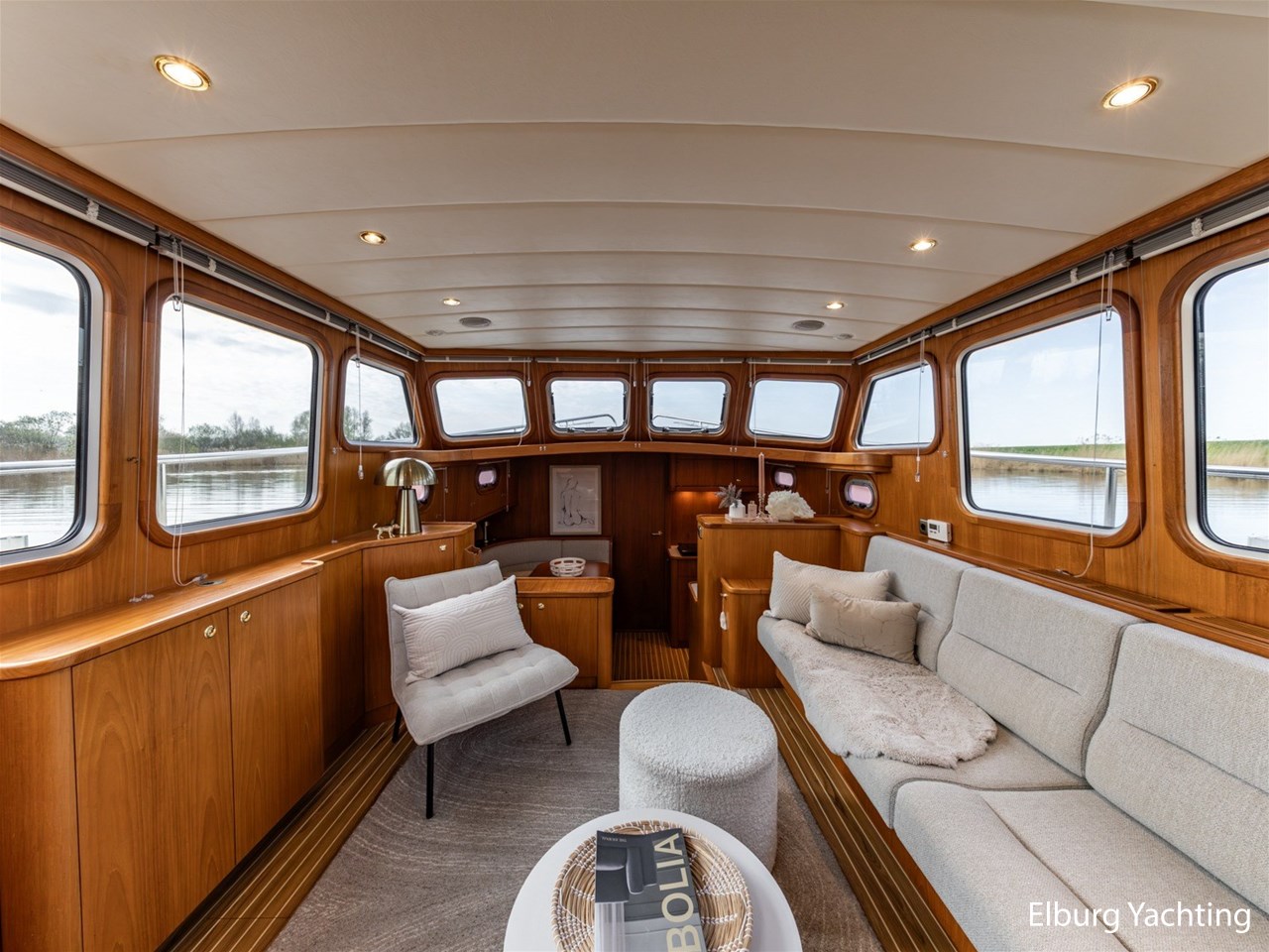 Beautiful Linden Kotter 13.70 aft cabin in good condition offered. The Zuiver is a very richly built Linden Kotter 13.70 that has been well maintained. The yacht was designed by renowned yacht designer Theo Gillissen and built by Linden Jachtbouw in Hardinxveld in 2005. Since then, the first owner has mainly kept the yacht indoors and only launched it for the beautiful summer weeks, which is clearly visible. Under the current owners, a number of changes have been made to the yacht in recent years. For example, it was fitted with beautiful light grey upholstery in 2024, and the support mast was made hydraulically lowerable, allowing a clearance height of approximately 3.50 metres to be achieved in a short period of time. The navigation equipment has been replaced. The wooden interior has been checked, the hull and superstructure are waxed every year, and the teak deck has been impregnated. In short, the yacht has been well cared for and is ready for a new owner! If you have any questions or would like to make an appointment, you are welcome at Elburg Yachting 7 days a week.