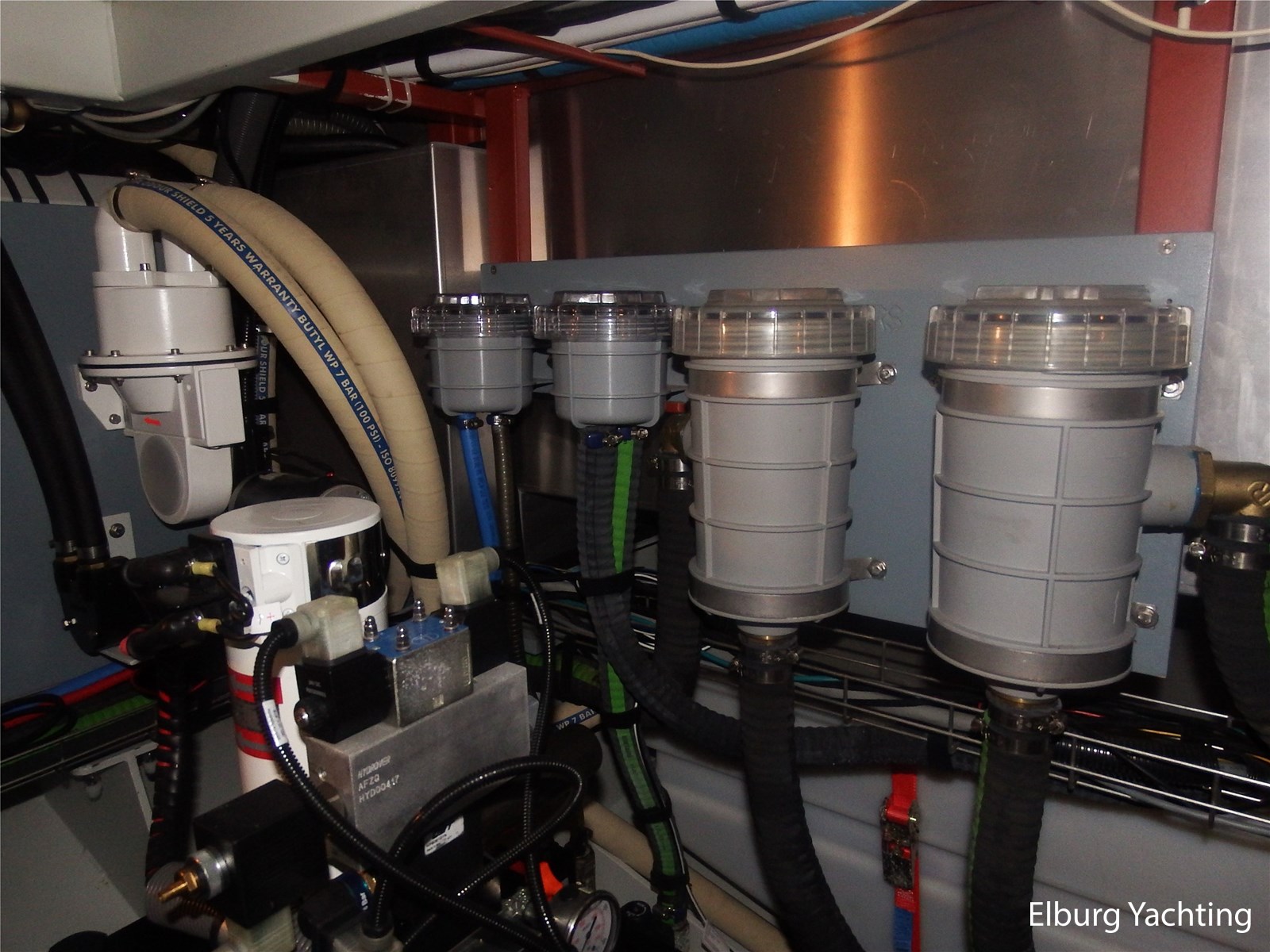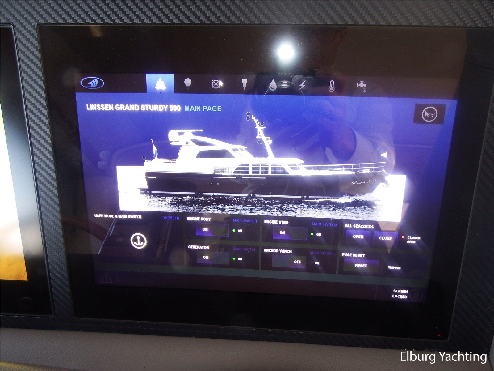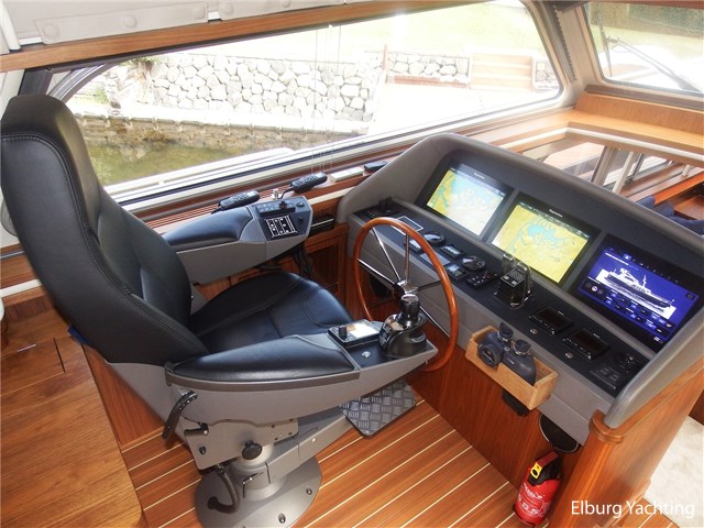 Deze Linssen Grand Stury 590 Variotop is uitgevoerd met: 2 x Spudpalen tot maximaal 4.20m onder het schip, Opacmare hydraulische kraan om bijboot te liften, Xenta dynamic positioning voor het behoud van zijn positie tijdens het stil liggen/wachten op het water, trolling valves, MagnusMaster stabilisatiesysteem, muggenhorren rondom, stahoogte door gehele boot ca. 2.00 m een extra kinderbed in 3e hut, 2 x TV met elektrische lift en DVB-T en DVB-S ontvanger, Raymarine STV60 satellietsysteem, Fusion audio installatie met afstandsbediening en buitenspeakers ook te bedienen via Raymarine plotter, AEG was-droog combinatie, Siemens vaatwasser, indirecte verlichting op achterdek, dubbele Alpha pro 24/75A dynamo's. Het Canbus elektra systeem is te bedienen via de Yachtcontrol bedieningsschermen in de salon / kombuis / stuurhuis en tevens via een app op de tablet of smartphone, dimverlichting door het gehele jacht, Xenta motorbediening met toerental synchronisatie, Xenta joystick bediening voor eenvoudig afmeren (bedient beide motoren, roeren en boeg- en hekschroef), op iedere motor dubbele omschakelbare brandstoffilters, elektrische kogelkranen voor koelwater, Raymarine i70 windmeter met Airmar 150 WX weerstation, Raymarine roerstandaanwijzer, Raymarine AIS, 5x camera's rondom de boot met afstandsbediening, zoeklicht, WIFI antenne met router, elektrisch verstelbare tafel op achterdek, zijtrap om makkelijk aan/van boord te gaan bij zijsteigers, boegdoorgang in reling, wegklapbare fenderkorven voor en achter, elektrische verhaallieren op achterdek met voetbediening. De minimale doorvaarthoogte is 4,70m.