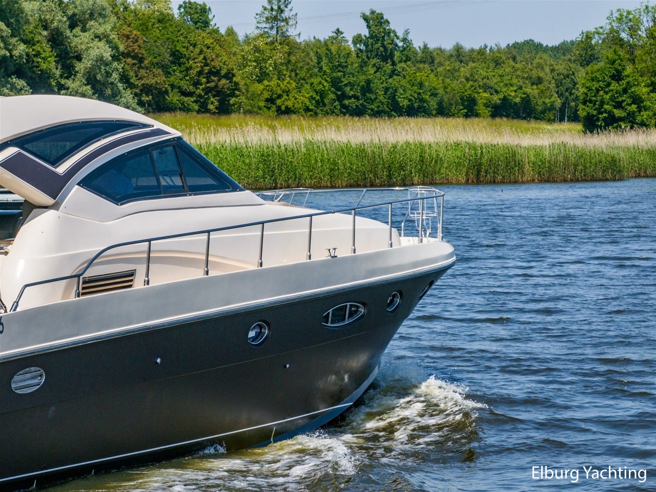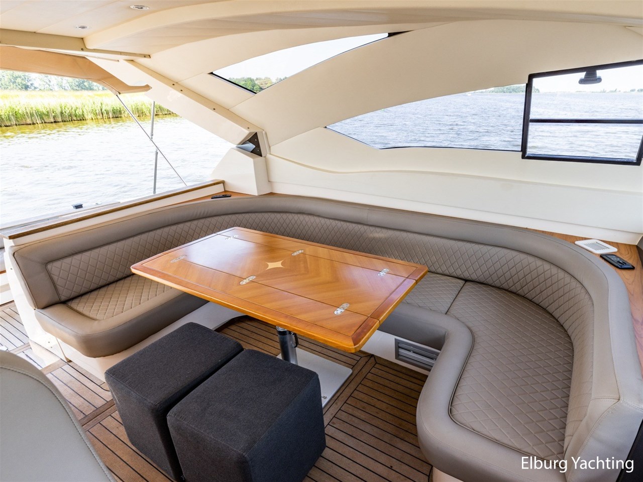 - Antislip op zijdek + teak in open kuip en stuurhuis