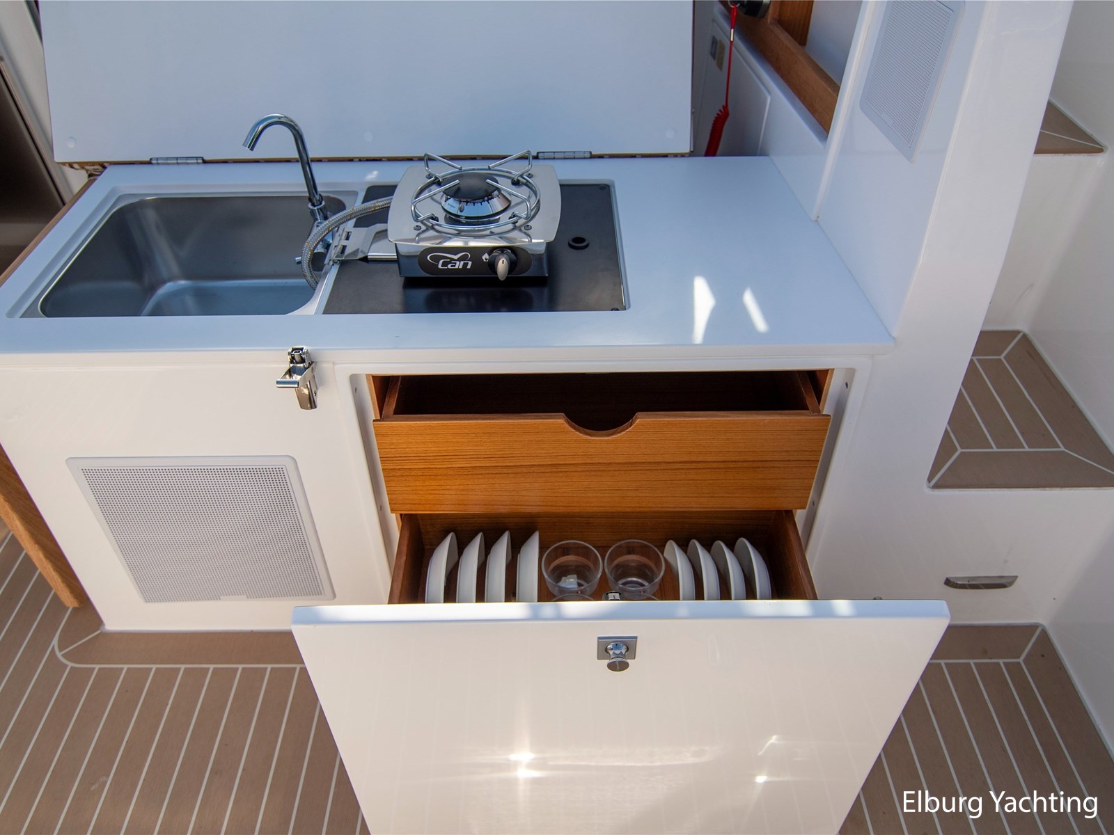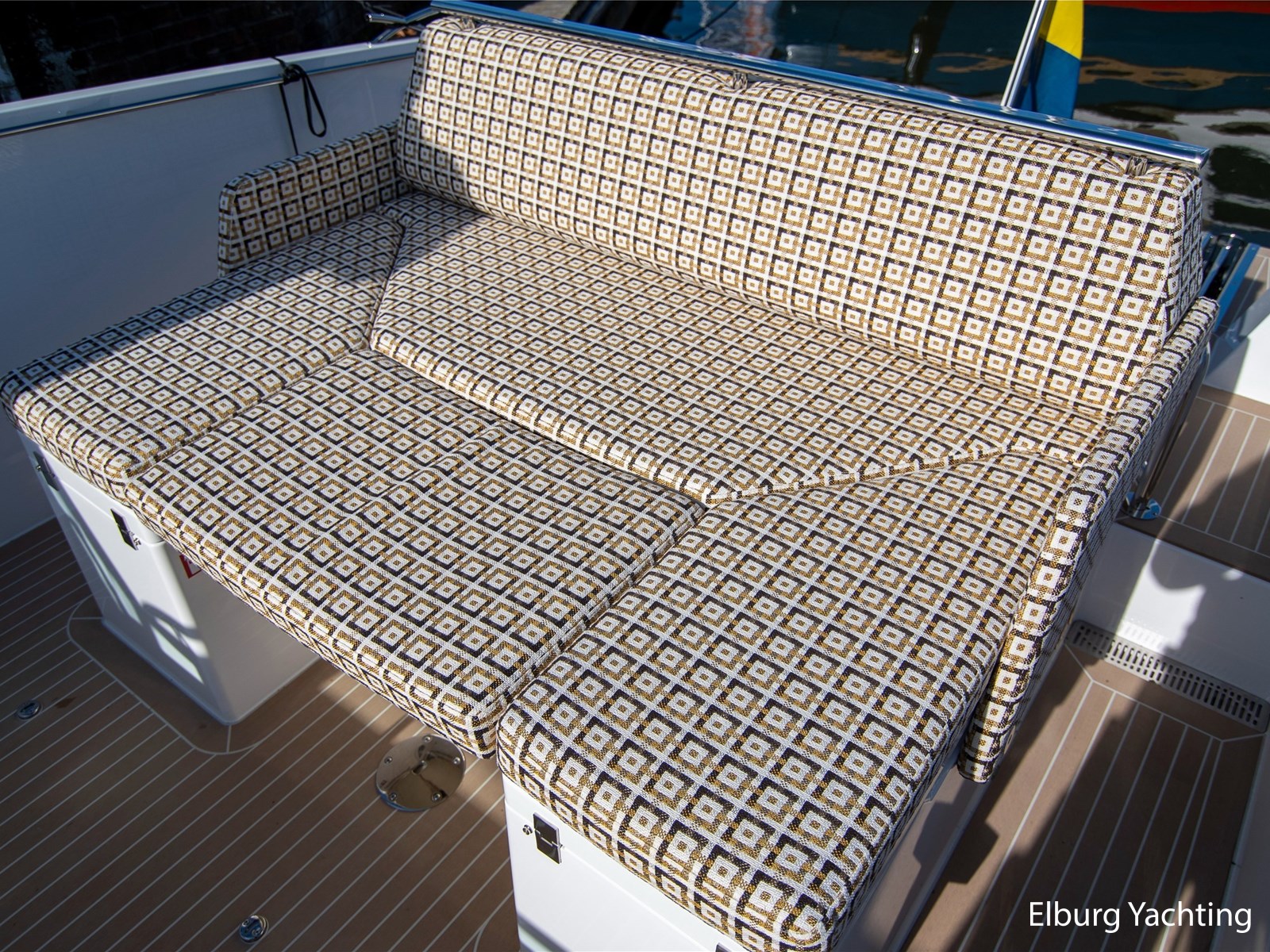 - Geïntegreerd met teak + R.V.S. zwemtrap