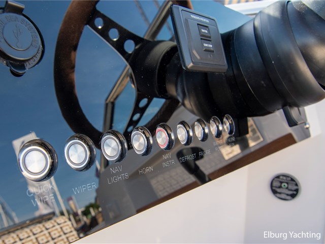 Ook aan boord is comfort en vermaak uitstekend geregeld. Het Fusion-audiosysteem met extra speakers en subwoofer levert hoogwaardige geluidskwaliteit, terwijl USB- en 12V-aansluitingen bij zowel de stuurstand als de kajuit zorgen dat al uw apparaten opgeladen blijven. De interieur- en zitbekleding is voorzien van een upgrade, waardoor het aan boord extra stijlvol en comfortabel is.