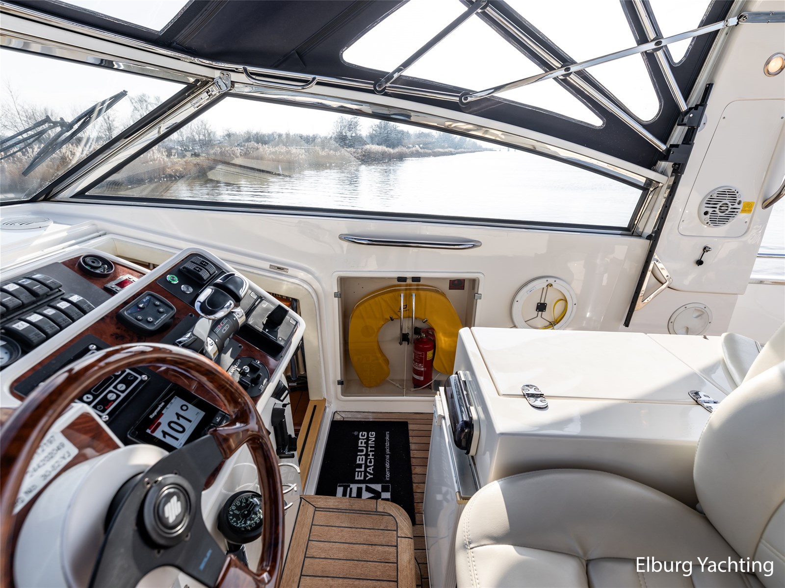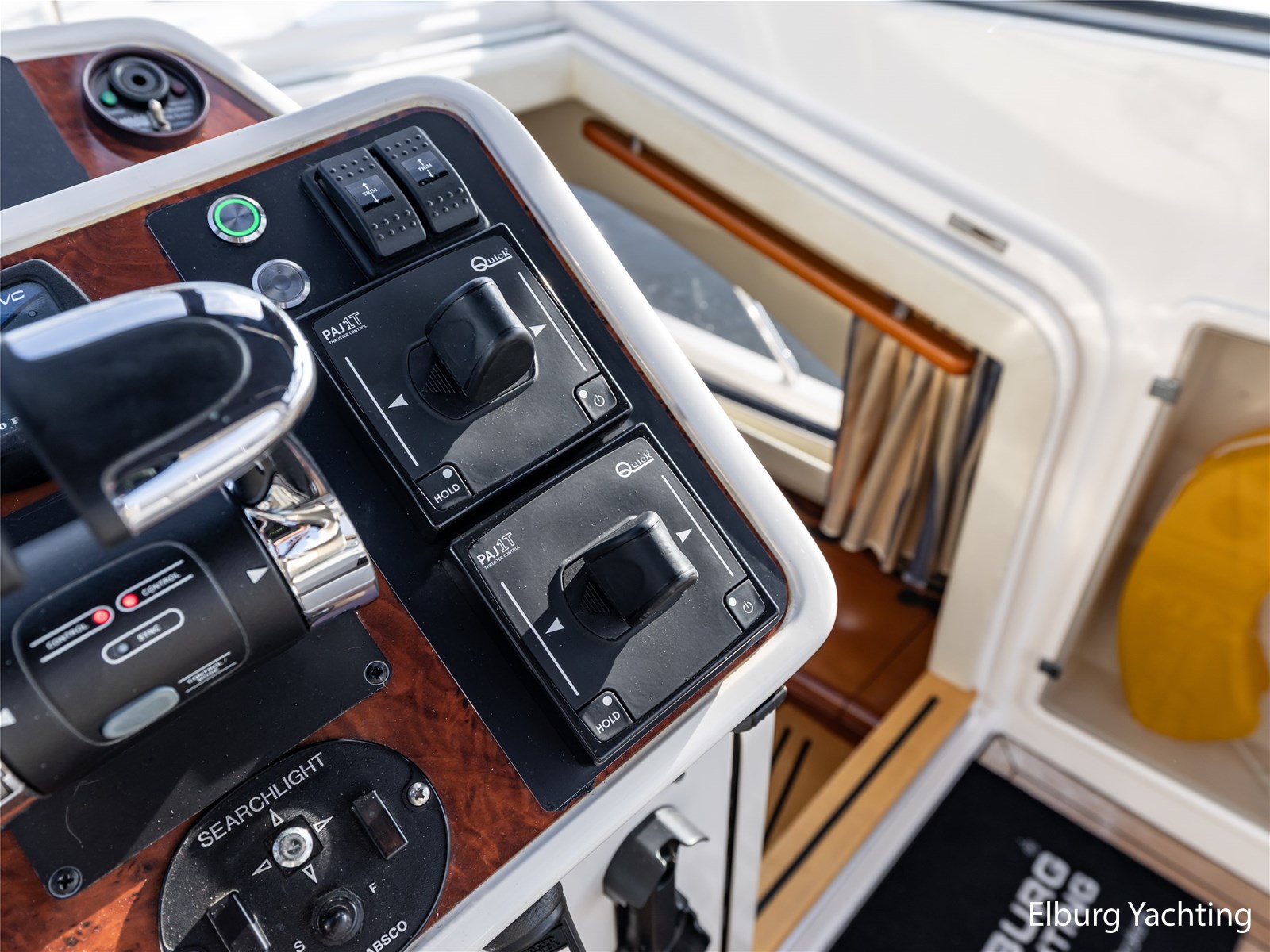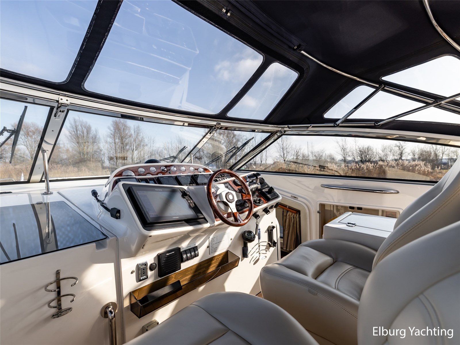 Deze Atlantic is origineel in Nederland geleverd en met zorg onderhouden. Bij de stuurstand ervaart u direct het gevoel van controle en overzicht. Het jacht is uitgevoerd met twee luxe vaarstoelen waarmee u ook tijdens de lange vaardagen ontspannen op uw bestemming aankomt. Het jacht is uitgerust met een eenvoudig cabrio systeem waardoor eenvoudig en snel het cabriodak opengemaakt kan worden. Tevens is de radarbeugel hydraulisch neerlaatbaar waardoor een kruiphoogte van ca. 3.50 meter gerealiseerd kan worden.