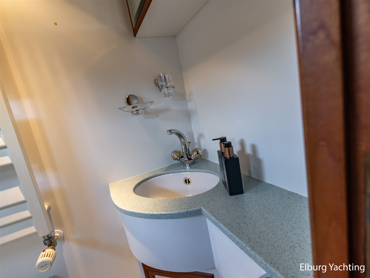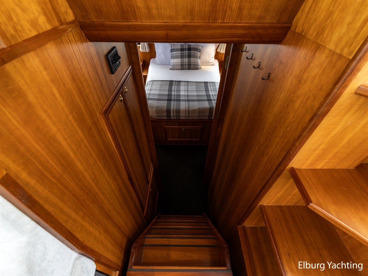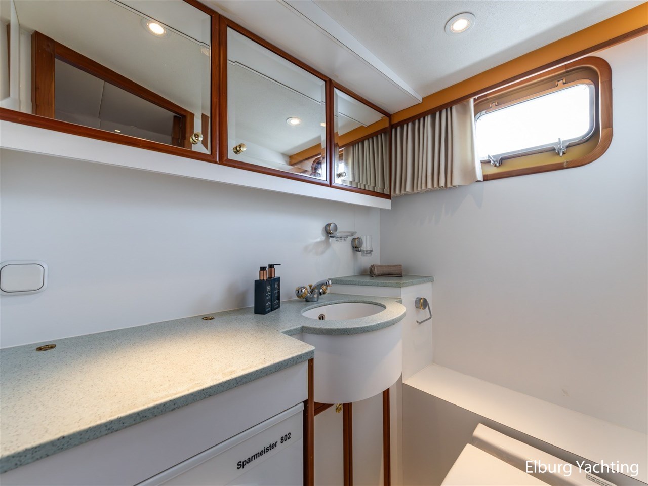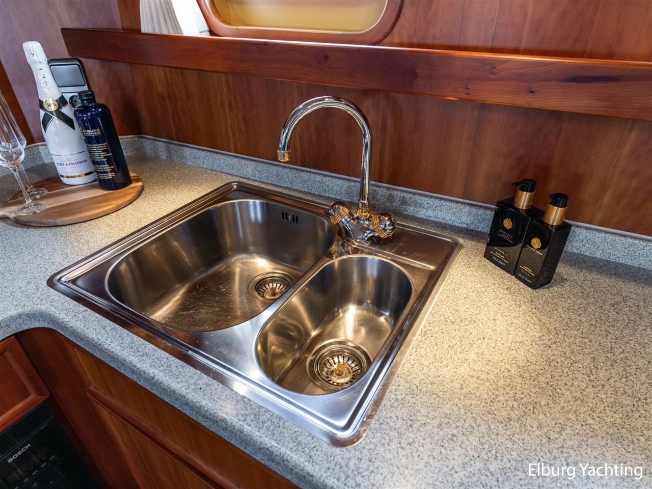 This ship has two spacious double cabins, both equipped with private en-suite bathrooms. The saloon and the galley are openly connected, creating a spacious feeling and pleasant interaction. The interior is richly finished with great attention to detail.