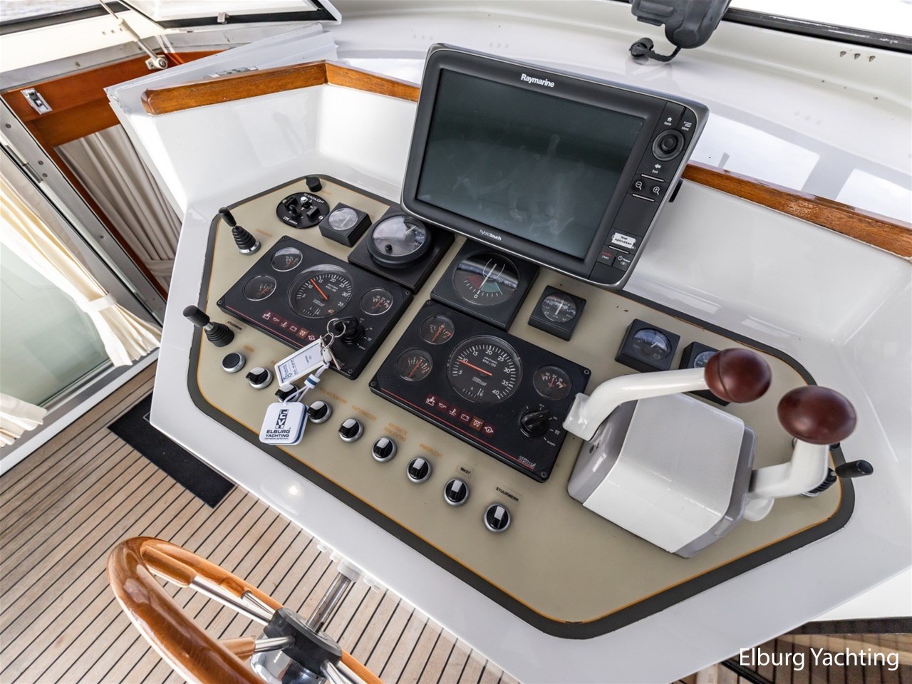 - 2 x hydraulic (indoor + outside helm position) + joystick rudder control