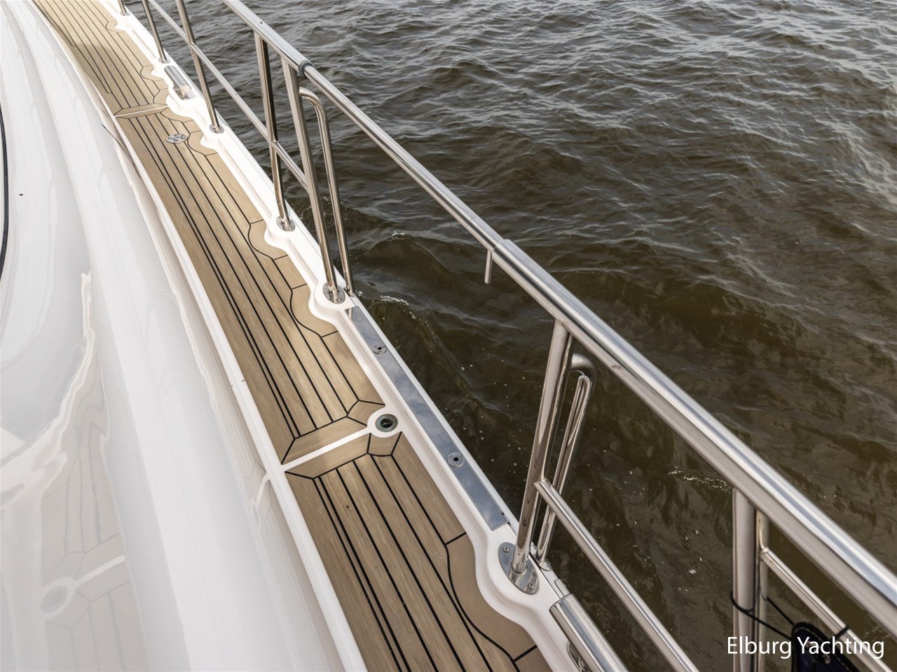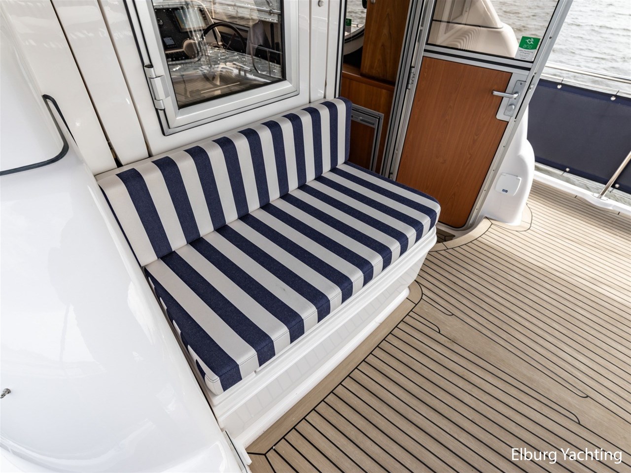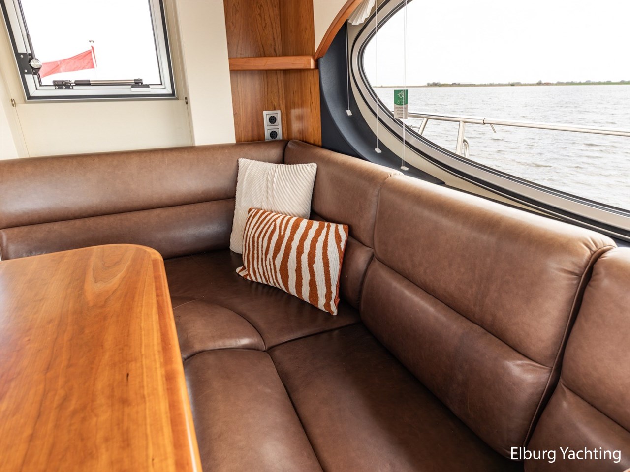 The yacht has a well-maintained appearance, a warm finish and a practical layout with plenty of living space. This 2018 model is also fitted with the updated corner sofa near the helm, underfloor heating in the wheelhouse and Fusion audio.