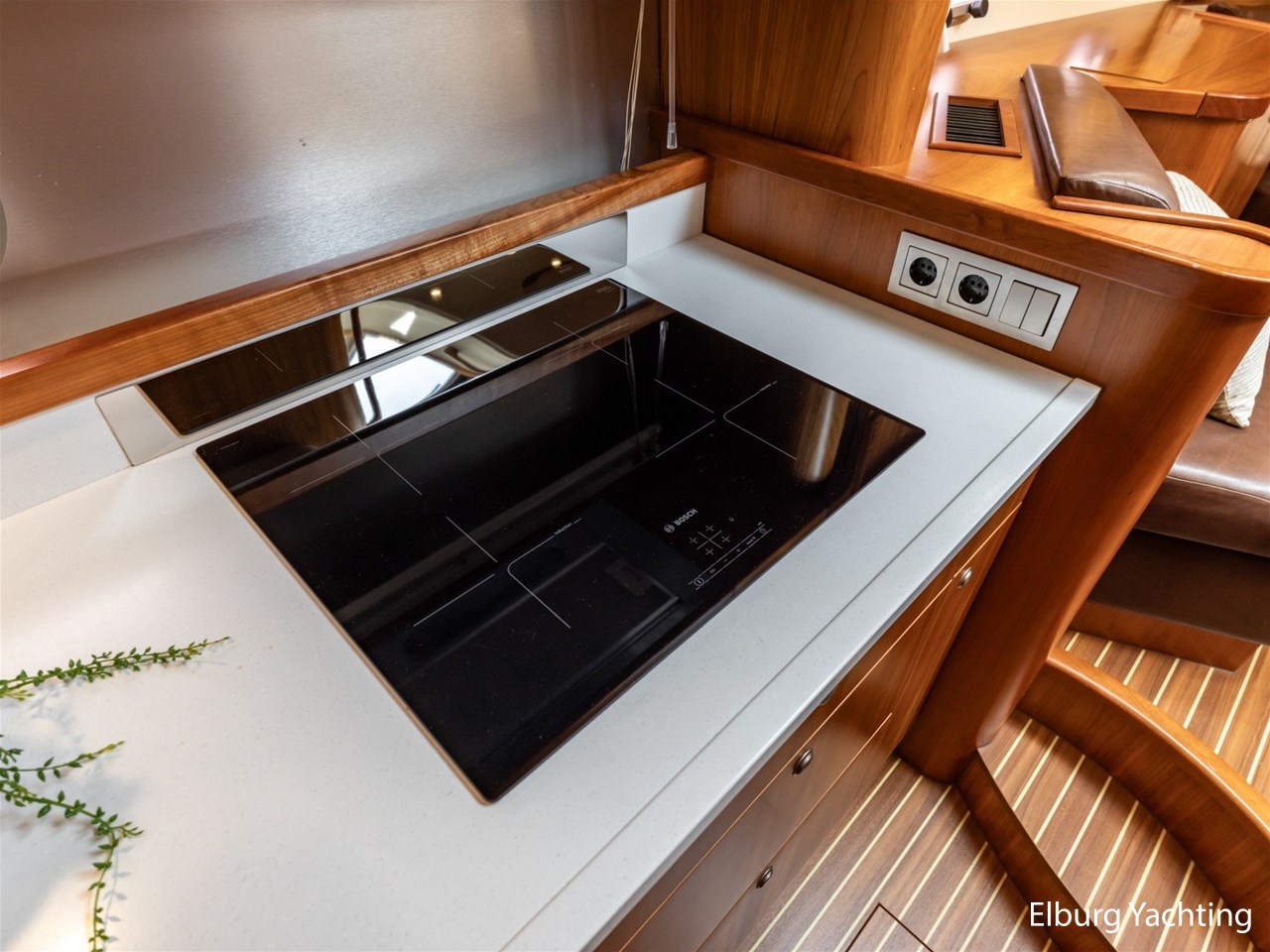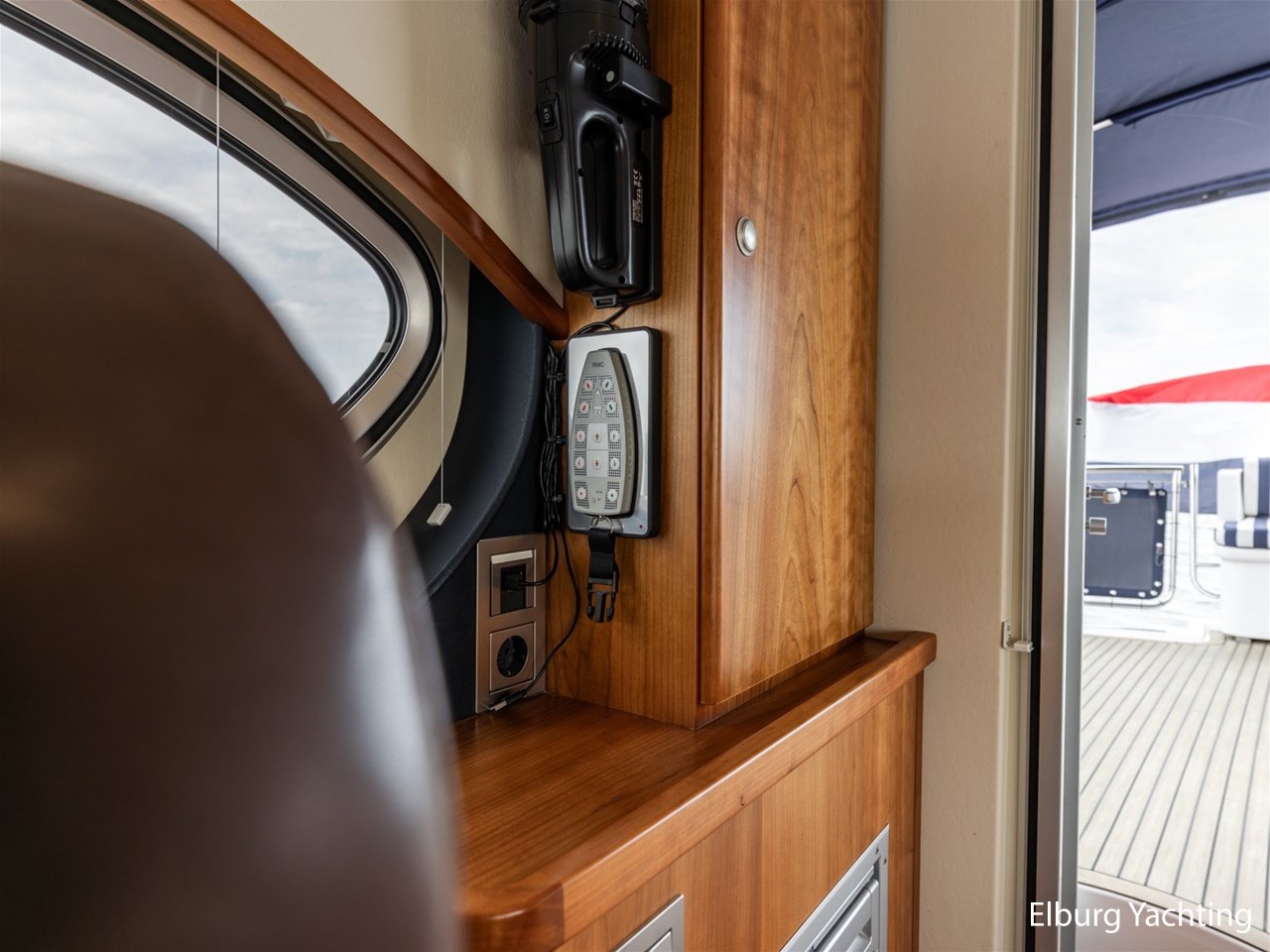 The yacht offers great ease of use whilst underway. The Hydronautica remote control, together with the camera system, makes manoeuvring in harbours very straightforward. Furthermore, the boat is fitted with an electrically operated sunroof at the helm and an electrically operated radar arch.
