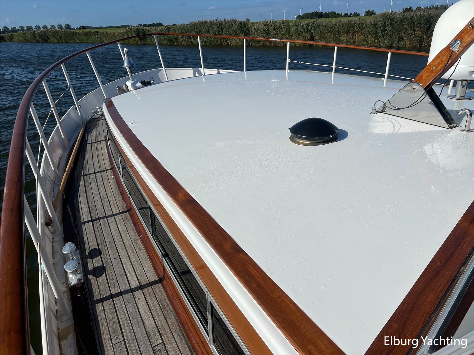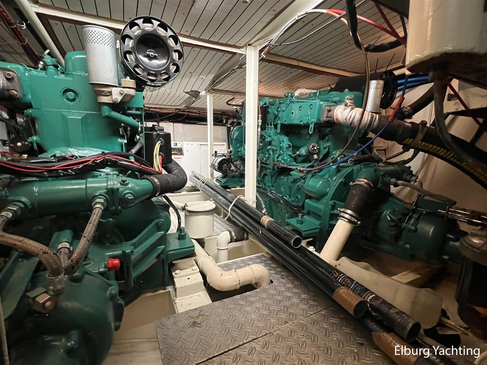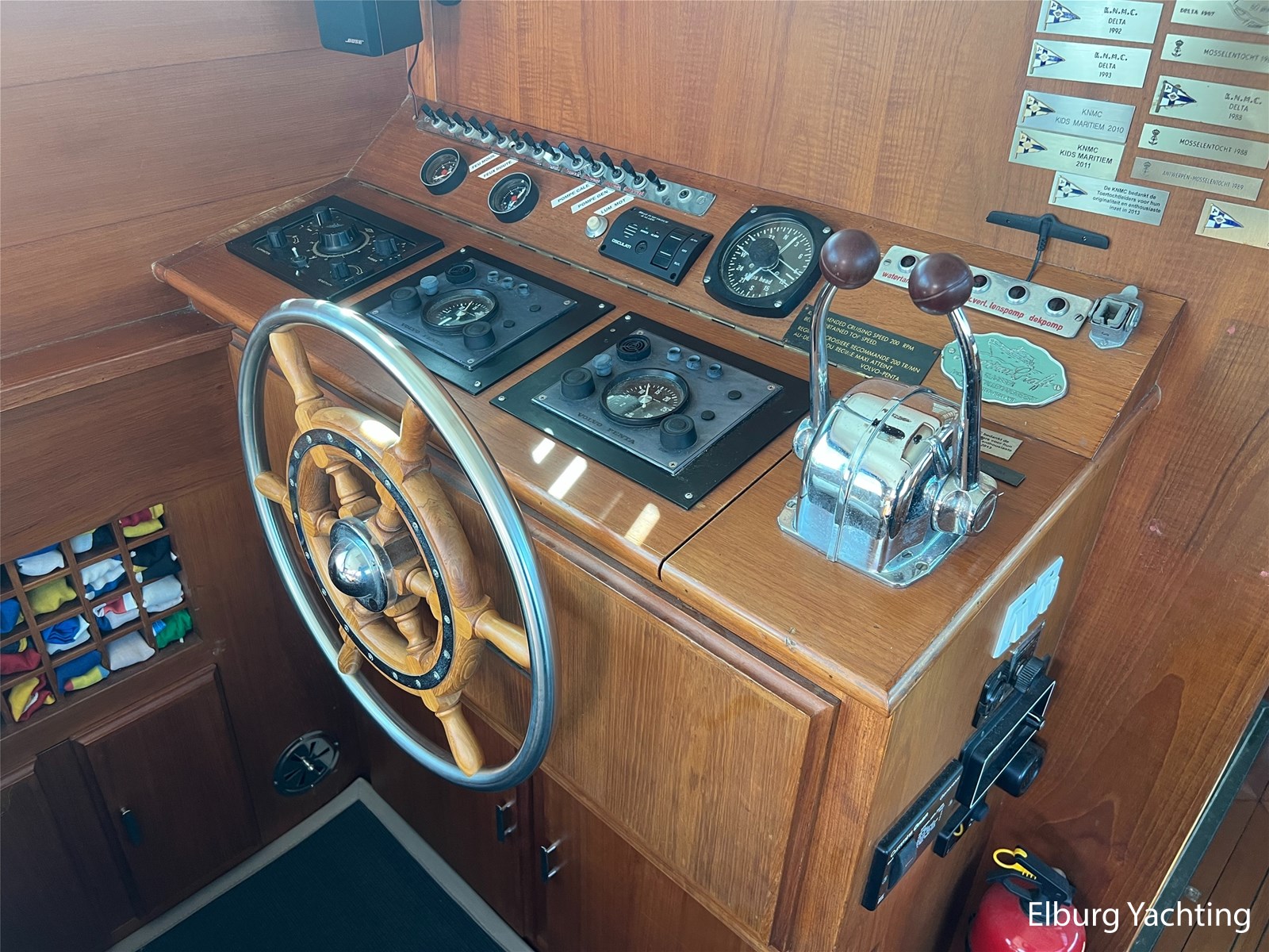 Deze bijzondere Super van Craft is met haar unieke kleurstelling een prachtige klassieke verschijning op het water. Het schip heeft een ruim achterdek met een grote (zomer) bimini en de mogelijkheid om beschut te varen achter de cabrio kap van de stuurstand. De salon is groot genoeg om naast de captain chair met ca. 6 personen plaats te nemen aan de tafel. De laatste jaren is er veel geïnvesteerd om deze Super van Craft weer in een mooie conditie te krijgen, maar er zijn nog klussen aan boord om af te ronden. Het schip is uitgevoerd met: Eigenaarshut met groot vrijstaand bed, grote bimini over achterdek, Sunbrella afdekhoezen voor o.a (bank op achterdek, loopplank, ankerlier), machinekamer geschilderd in 2022 + motoren geschilderd, dynamo's gereviseerd en nieuwe uitlaatdempers geplaatst in 2022, granieten aanrechtblad in keuken met Franke r.v.s. spoelbak, nieuw plafond in keuken met dimbare LED spots, Siemens vaatwasser, zwarte lamellen voor alle ramen in salon, vernieuwde badkamer in eigenaarshut met o.a nieuwe wasbak, nieuwe kraan, nieuwe marmeren topblad, houten opbouw en potdeksels in 2022 volledig kaal gehaald en opnieuw opgebouwd, Jabsco schijnwerper, in 2022 salon dak opnieuw geschilderd, alle chrome details zijn opnieuw verchroomd in 2022, generator vervangen voor een gebruikte Onan 4kW model in 2024, AIS met zichtbaarheid op het plotterscherm. Het teak dek op het schip is nog een punt van aandacht waar de volgende eigenaar mee aan de slag kan. Het is een zeer ruim opgezette Super van Craft met 3 hutten en 2 badkamers.