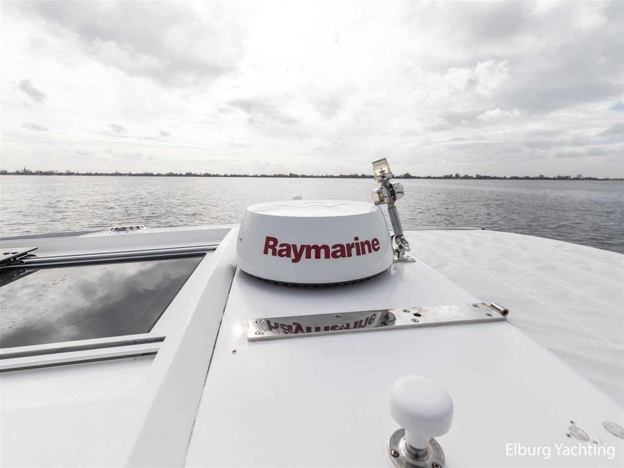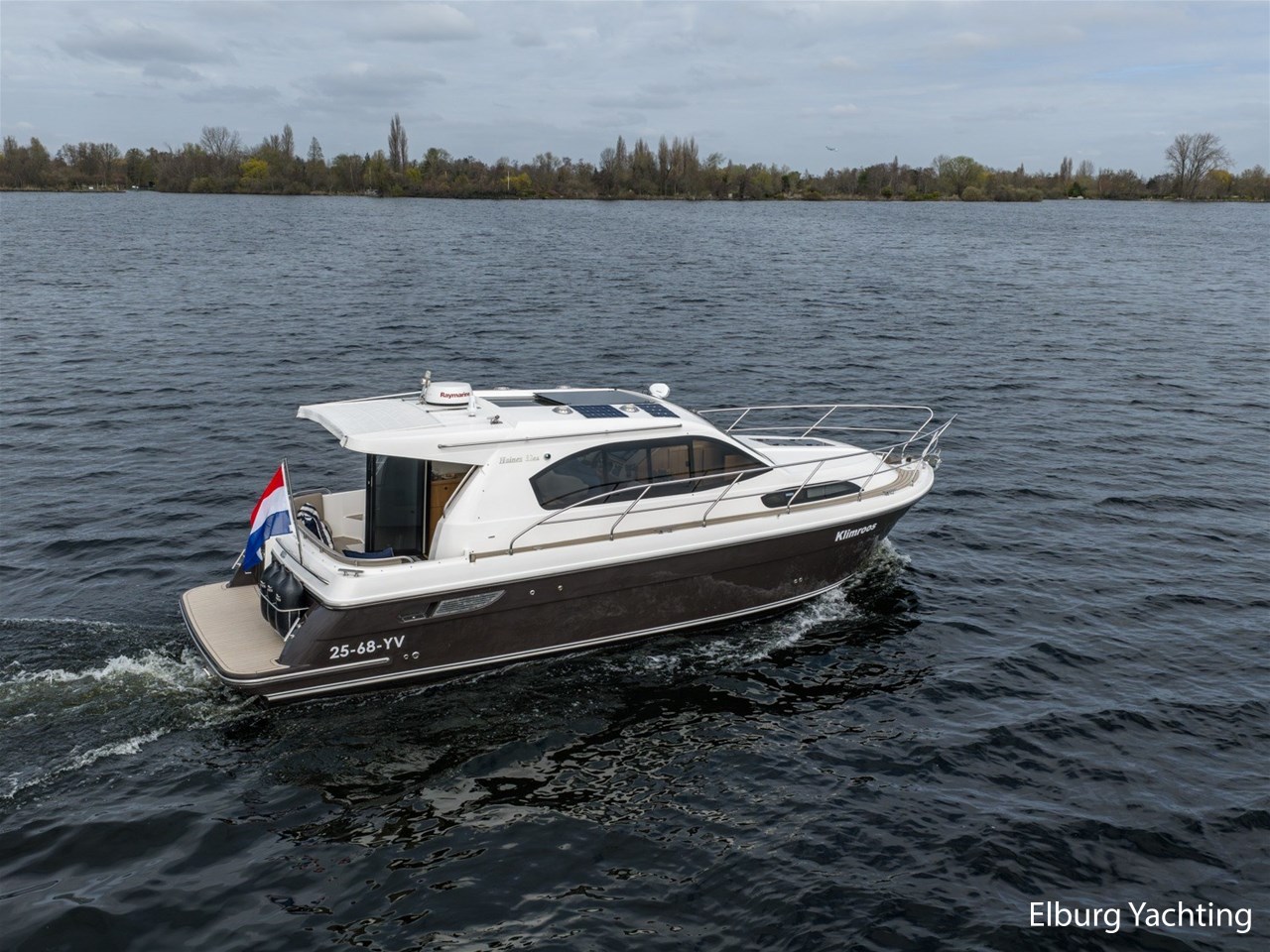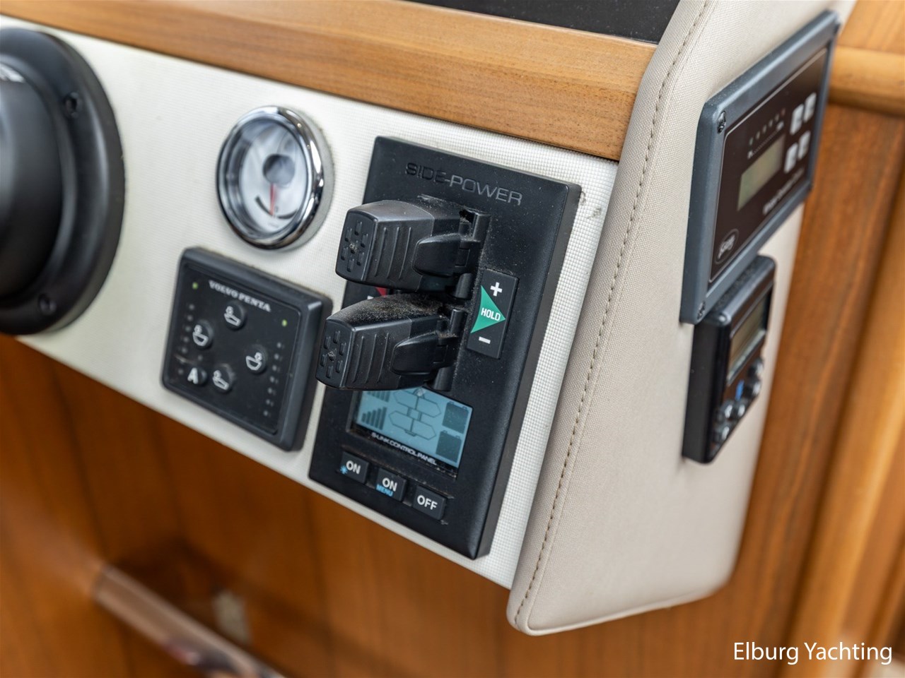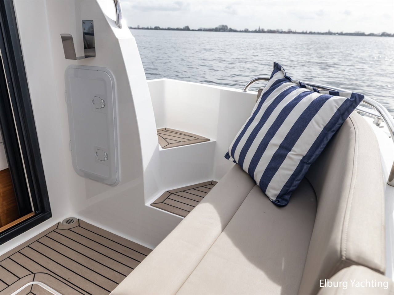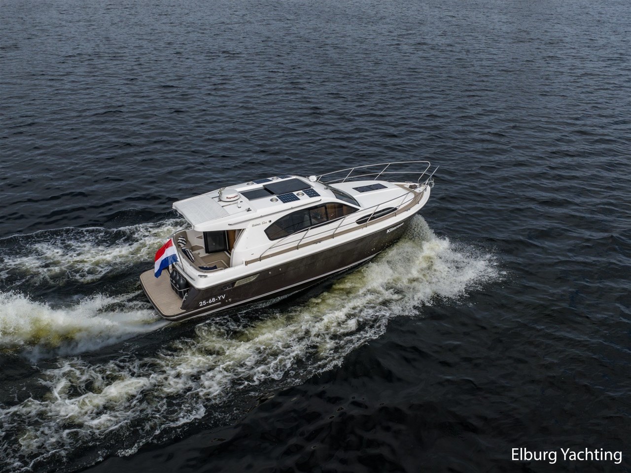 The Haines 32 Offshore is goanywhere open-cockpit motor yacht from the renowned Haines Offshore range in excellent maintained condition. This Haines 32 Offshore is designed for both leisurely cruises and sporty sailing on inland waterways, rivers, and the open sea. Thanks to its specially designed hull and powerful 260 hp Yanmar engine, the boat offers comfort at both low speeds and high speeds up to 17 knots. The yacht makes optimal use of the available space thanks to a smart layout. The open cockpit creates a direct connection to the water for an optimal boating experience. The three folding doors are equipped with screens and curtains, which enhance the connection between the outside and inside. The cockpit can be fully enclosed with a cockpit cover, making it comfortable to use in all weather conditions. There are two large storage compartments under the rear bench, and additional storage space is available in the port and starboard side compartments, for example for mooring lines, jackets, or other accessories. The saloon features high-quality woodwork and is equipped with a comfortable U-shaped bench, providing a panoramic view of the sailing area. An electrically adjustable bench can easily be converted into an additional passenger seat facing the direction of travel. Additionally, the saloon features an electrically operated sliding roof, equipped with both a sunshade and a mosquito net screen. The boat is equipped with forced-air heating in all areas. The floor in the salon, galley, and bedroom features high-quality PVC flooring. The lockable owner’s cabin offers a freestanding double bed, and the salon sofa can be converted into two additional berths. The galley is luxuriously and practically appointed, featuring Avonite countertops, convenient storage drawers, and a 3-burner induction cooktop. There is no gas on board, so everything is electrically powered for added safety. The head is equipped with an electrically operated Tecma toilet, mounted on a raised platform and connected to a holding tank, with the option to discharge directly into surface water via a bypass valve through the hull. In addition, the space features a washing machine (Daewoo DWD-CV702WP, 2022) with a 3 kg capacity. For added convenience and storage, there are spacious shelves, two drawers under the sink, and a large storage compartment under the washing machine. Equipment and extras include: water tanks replaced with plastic ones in 2021, new Whisper Power 8kW generator installed in 2021, electrically operated aft hatch for added convenience, Navionics Raymarine chart update in 2024, TV on a lift in the saloon, onboard Wi-Fi router for internet (SIM card not included), 4 x solar panels with control unit (2x 39W + 2x 54W), rearview camera via chartplotter screen, searchlight, dimmers for saloon lighting, Radio/CD with USB, rudder position indicator, 12-volt power supply, shore power alarm and “Where is my boat?” system, remote control for lighting upon arrival, deck wash pump, frost-proof Gardena hose reel, also for refueling. Clearance height approx. 2.75 m. Want to experience this Haines 32 Offshore for yourself? This Haines is currently available for viewing by appointment in Aalsmeer. For questions and/or to schedule a viewing, you are welcome at Elburg Yachting 7 days a week.