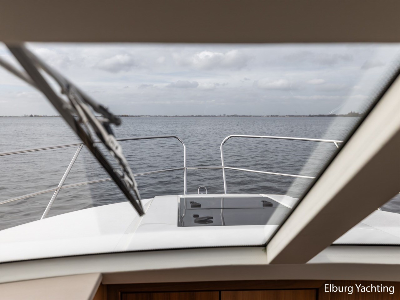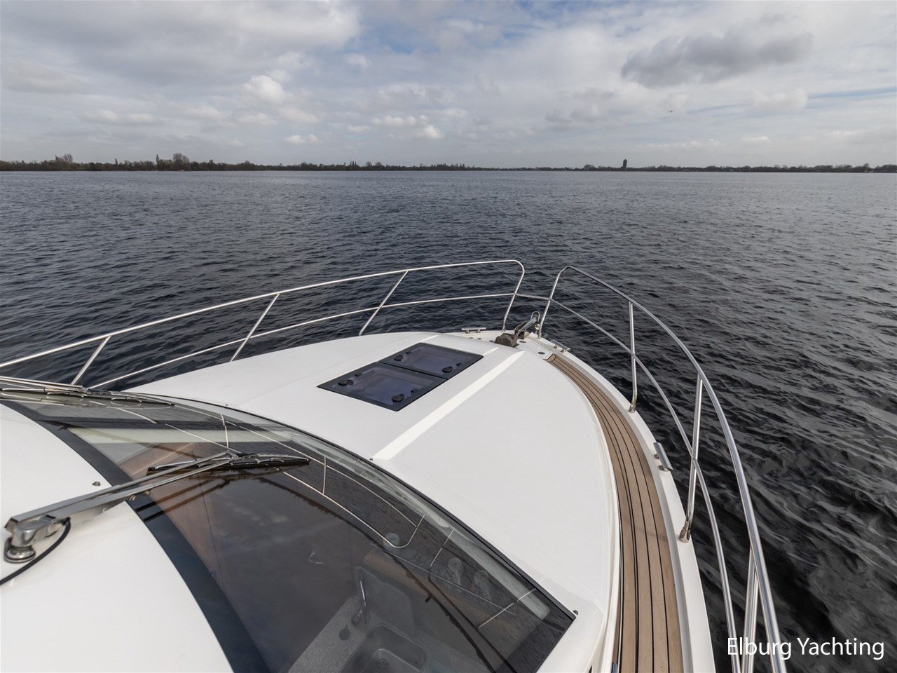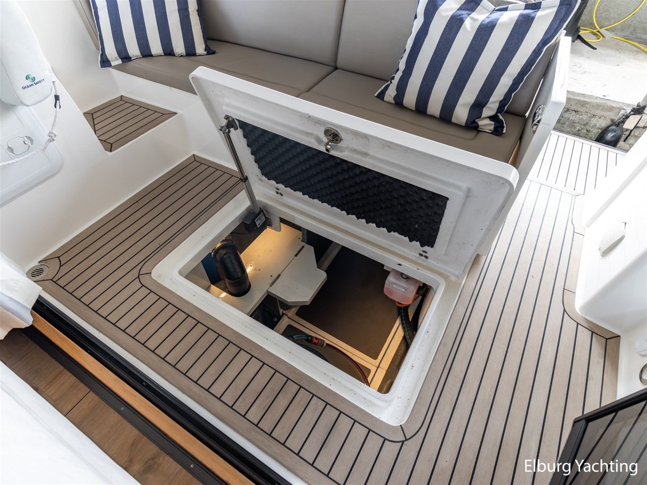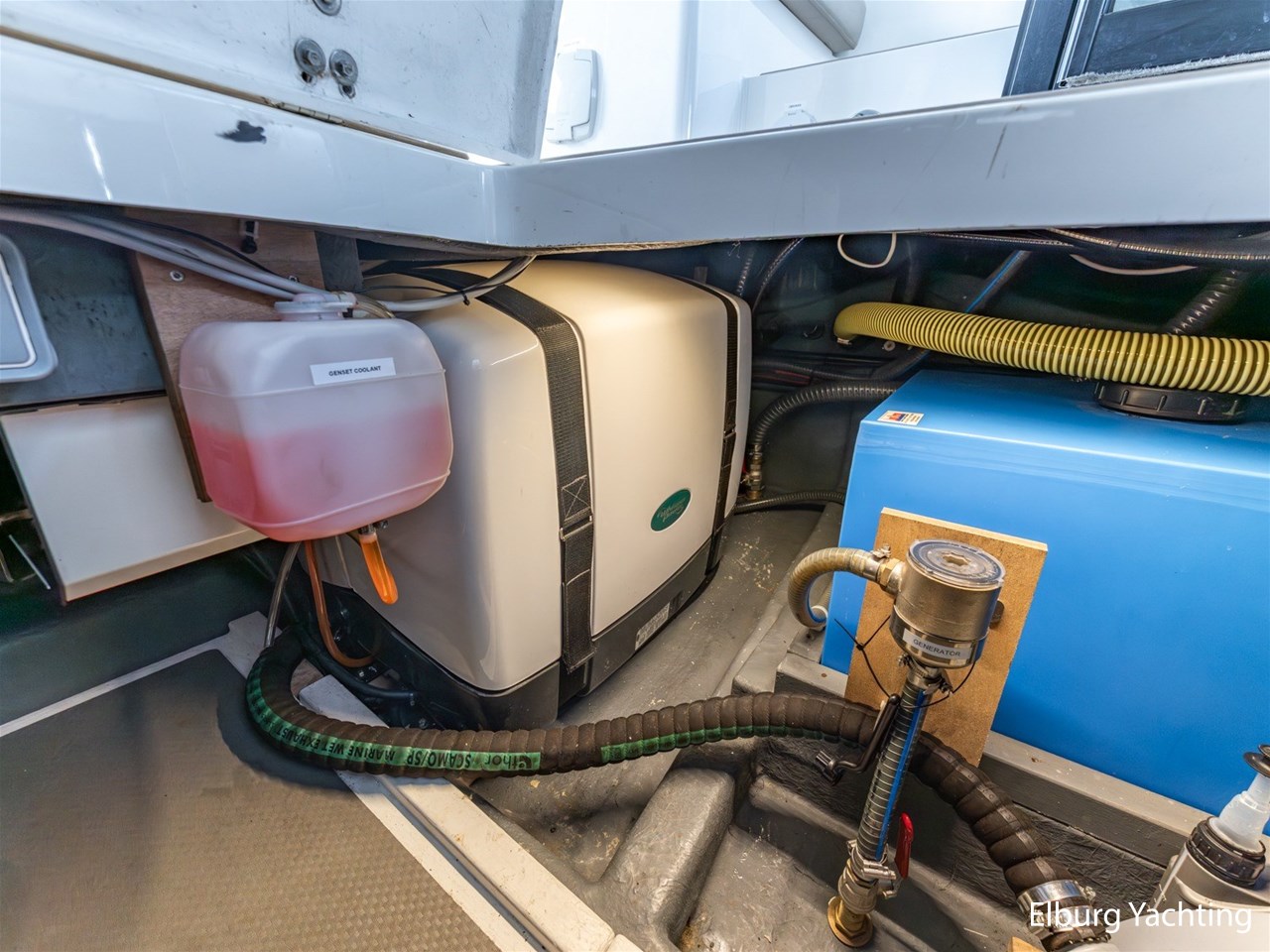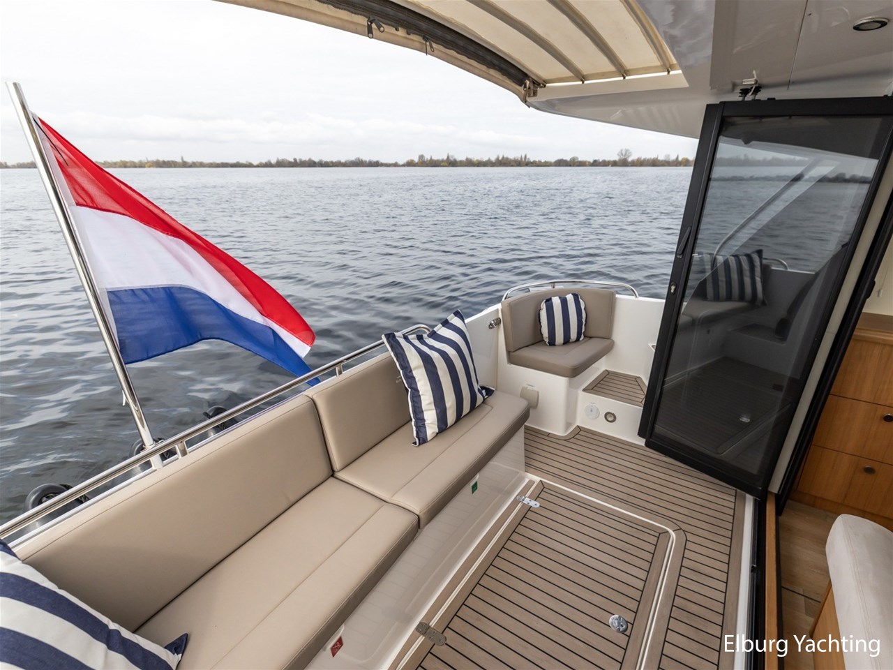 The Haines 32 Offshore is goanywhere open-cockpit motor yacht from the renowned Haines Offshore range in excellent maintained condition. This Haines 32 Offshore is designed for both leisurely cruises and sporty sailing on inland waterways, rivers, and the open sea. Thanks to its specially designed hull and powerful 260 hp Yanmar engine, the boat offers comfort at both low speeds and high speeds up to 17 knots. The yacht makes optimal use of the available space thanks to a smart layout. The open cockpit creates a direct connection to the water for an optimal boating experience. The three folding doors are equipped with screens and curtains, which enhance the connection between the outside and inside. The cockpit can be fully enclosed with a cockpit cover, making it comfortable to use in all weather conditions. There are two large storage compartments under the rear bench, and additional storage space is available in the port and starboard side compartments, for example for mooring lines, jackets, or other accessories. The saloon features high-quality woodwork and is equipped with a comfortable U-shaped bench, providing a panoramic view of the sailing area. An electrically adjustable bench can easily be converted into an additional passenger seat facing the direction of travel. Additionally, the saloon features an electrically operated sliding roof, equipped with both a sunshade and a mosquito net screen. The boat is equipped with forced-air heating in all areas. The floor in the salon, galley, and bedroom features high-quality PVC flooring. The lockable owner’s cabin offers a freestanding double bed, and the salon sofa can be converted into two additional berths. The galley is luxuriously and practically appointed, featuring Avonite countertops, convenient storage drawers, and a 3-burner induction cooktop. There is no gas on board, so everything is electrically powered for added safety. The head is equipped with an electrically operated Tecma toilet, mounted on a raised platform and connected to a holding tank, with the option to discharge directly into surface water via a bypass valve through the hull. In addition, the space features a washing machine (Daewoo DWD-CV702WP, 2022) with a 3 kg capacity. For added convenience and storage, there are spacious shelves, two drawers under the sink, and a large storage compartment under the washing machine. Equipment and extras include: water tanks replaced with plastic ones in 2021, new Whisper Power 8kW generator installed in 2021, electrically operated aft hatch for added convenience, Navionics Raymarine chart update in 2024, TV on a lift in the saloon, onboard Wi-Fi router for internet (SIM card not included), 4 x solar panels with control unit (2x 39W + 2x 54W), rearview camera via chartplotter screen, searchlight, dimmers for saloon lighting, Radio/CD with USB, rudder position indicator, 12-volt power supply, shore power alarm and “Where is my boat?” system, remote control for lighting upon arrival, deck wash pump, frost-proof Gardena hose reel, also for refueling. Clearance height approx. 2.75 m. Want to experience this Haines 32 Offshore for yourself? This Haines is currently available for viewing by appointment in Aalsmeer. For questions and/or to schedule a viewing, you are welcome at Elburg Yachting 7 days a week.