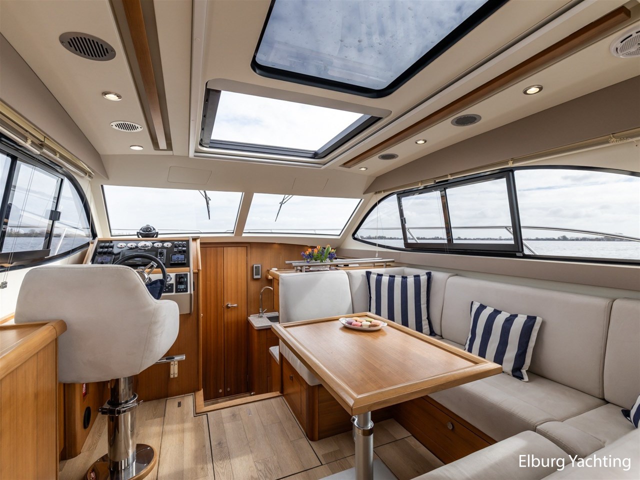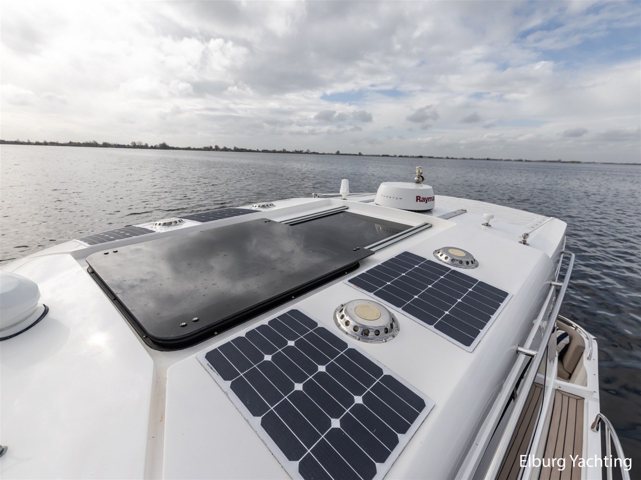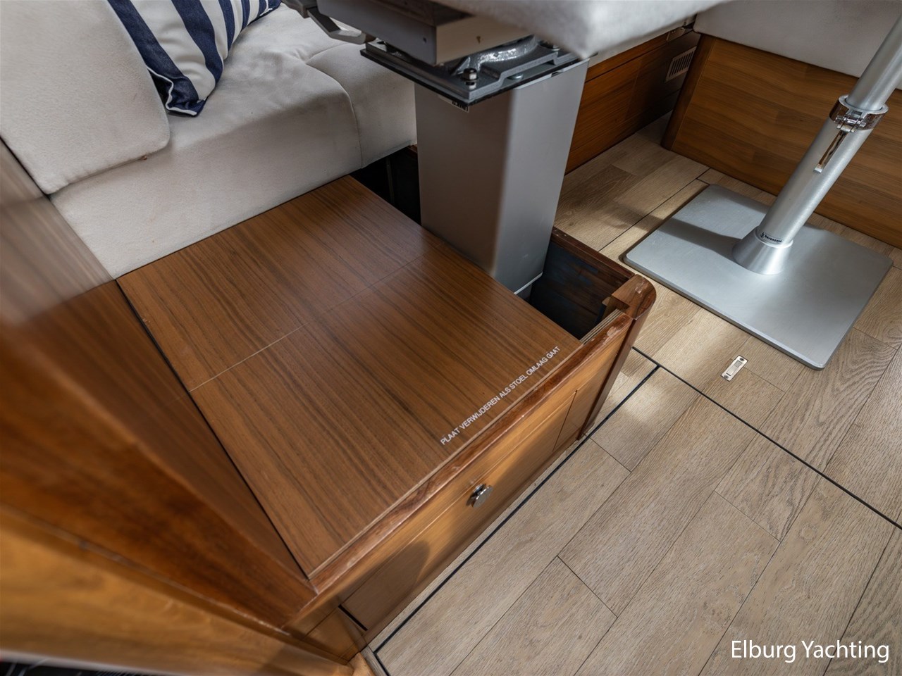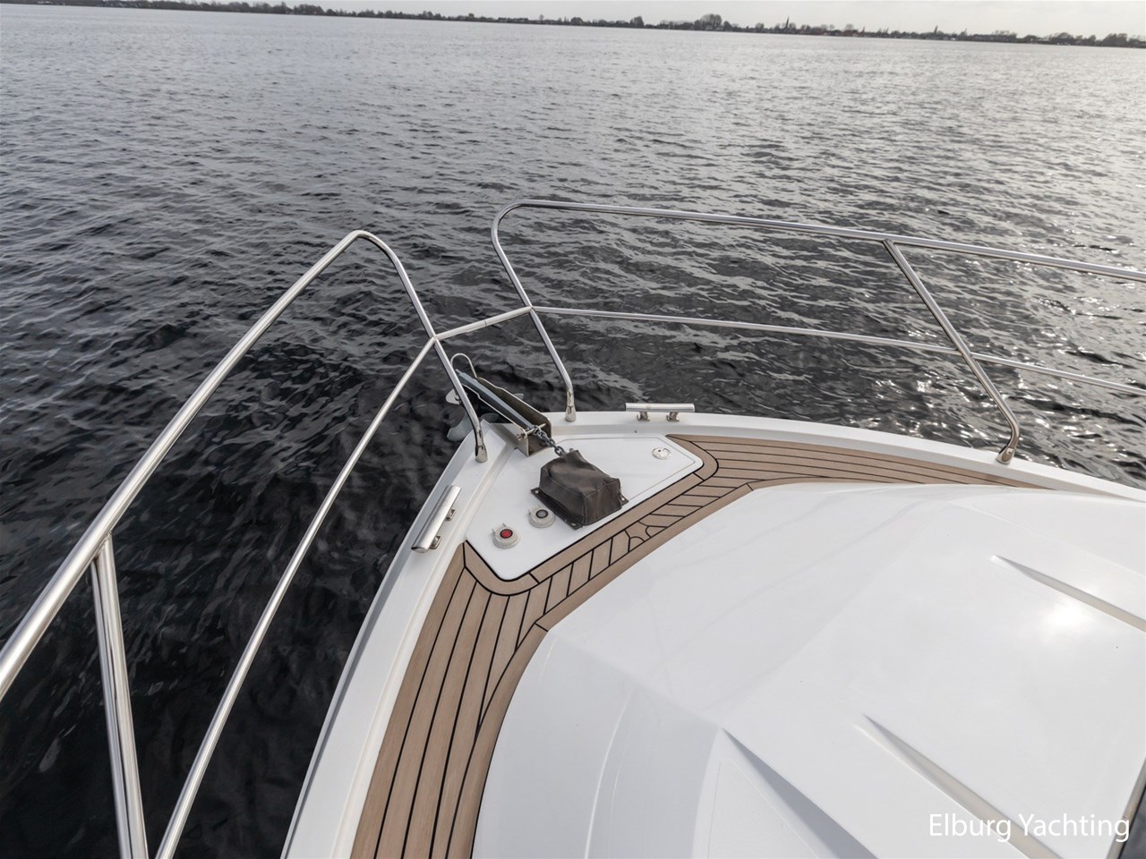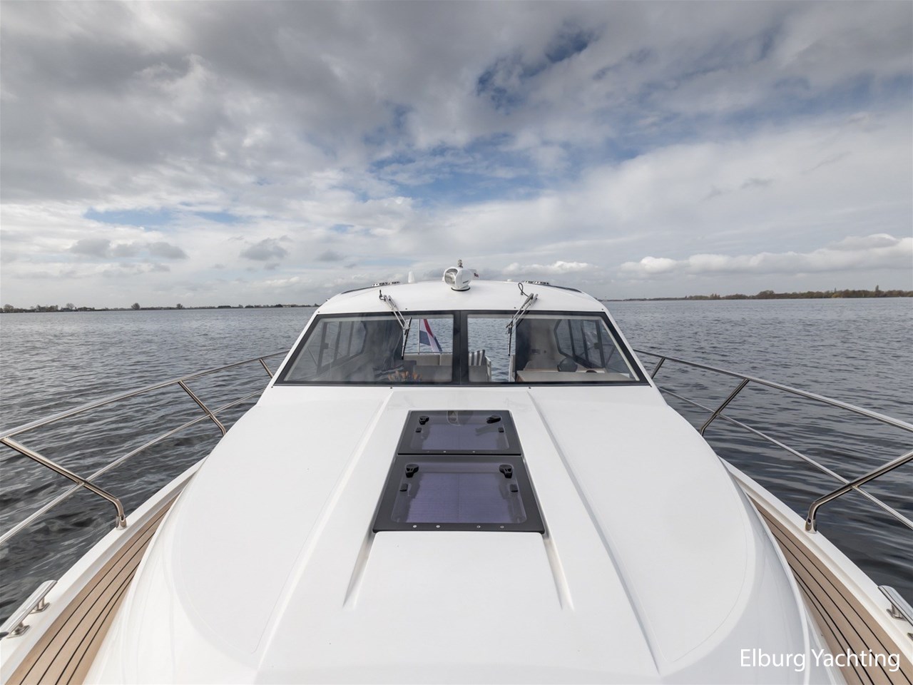 The Haines 32 Offshore is goanywhere open-cockpit motor yacht from the renowned Haines Offshore range in excellent maintained condition. This Haines 32 Offshore is designed for both leisurely cruises and sporty sailing on inland waterways, rivers, and the open sea. Thanks to its specially designed hull and powerful 260 hp Yanmar engine, the boat offers comfort at both low speeds and high speeds up to 17 knots. The yacht makes optimal use of the available space thanks to a smart layout. The open cockpit creates a direct connection to the water for an optimal boating experience. The three folding doors are equipped with screens and curtains, which enhance the connection between the outside and inside. The cockpit can be fully enclosed with a cockpit cover, making it comfortable to use in all weather conditions. There are two large storage compartments under the rear bench, and additional storage space is available in the port and starboard side compartments, for example for mooring lines, jackets, or other accessories. The saloon features high-quality woodwork and is equipped with a comfortable U-shaped bench, providing a panoramic view of the sailing area. An electrically adjustable bench can easily be converted into an additional passenger seat facing the direction of travel. Additionally, the saloon features an electrically operated sliding roof, equipped with both a sunshade and a mosquito net screen. The boat is equipped with forced-air heating in all areas. The floor in the salon, galley, and bedroom features high-quality PVC flooring. The lockable owner’s cabin offers a freestanding double bed, and the salon sofa can be converted into two additional berths. The galley is luxuriously and practically appointed, featuring Avonite countertops, convenient storage drawers, and a 3-burner induction cooktop. There is no gas on board, so everything is electrically powered for added safety. The head is equipped with an electrically operated Tecma toilet, mounted on a raised platform and connected to a holding tank, with the option to discharge directly into surface water via a bypass valve through the hull. In addition, the space features a washing machine (Daewoo DWD-CV702WP, 2022) with a 3 kg capacity. For added convenience and storage, there are spacious shelves, two drawers under the sink, and a large storage compartment under the washing machine. Equipment and extras include: water tanks replaced with plastic ones in 2021, new Whisper Power 8kW generator installed in 2021, electrically operated aft hatch for added convenience, Navionics Raymarine chart update in 2024, TV on a lift in the saloon, onboard Wi-Fi router for internet (SIM card not included), 4 x solar panels with control unit (2x 39W + 2x 54W), rearview camera via chartplotter screen, searchlight, dimmers for saloon lighting, Radio/CD with USB, rudder position indicator, 12-volt power supply, shore power alarm and “Where is my boat?” system, remote control for lighting upon arrival, deck wash pump, frost-proof Gardena hose reel, also for refueling. Clearance height approx. 2.75 m. Want to experience this Haines 32 Offshore for yourself? This Haines is currently available for viewing by appointment in Aalsmeer. For questions and/or to schedule a viewing, you are welcome at Elburg Yachting 7 days a week.