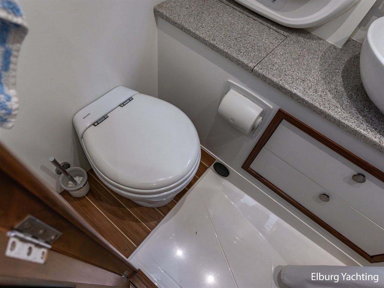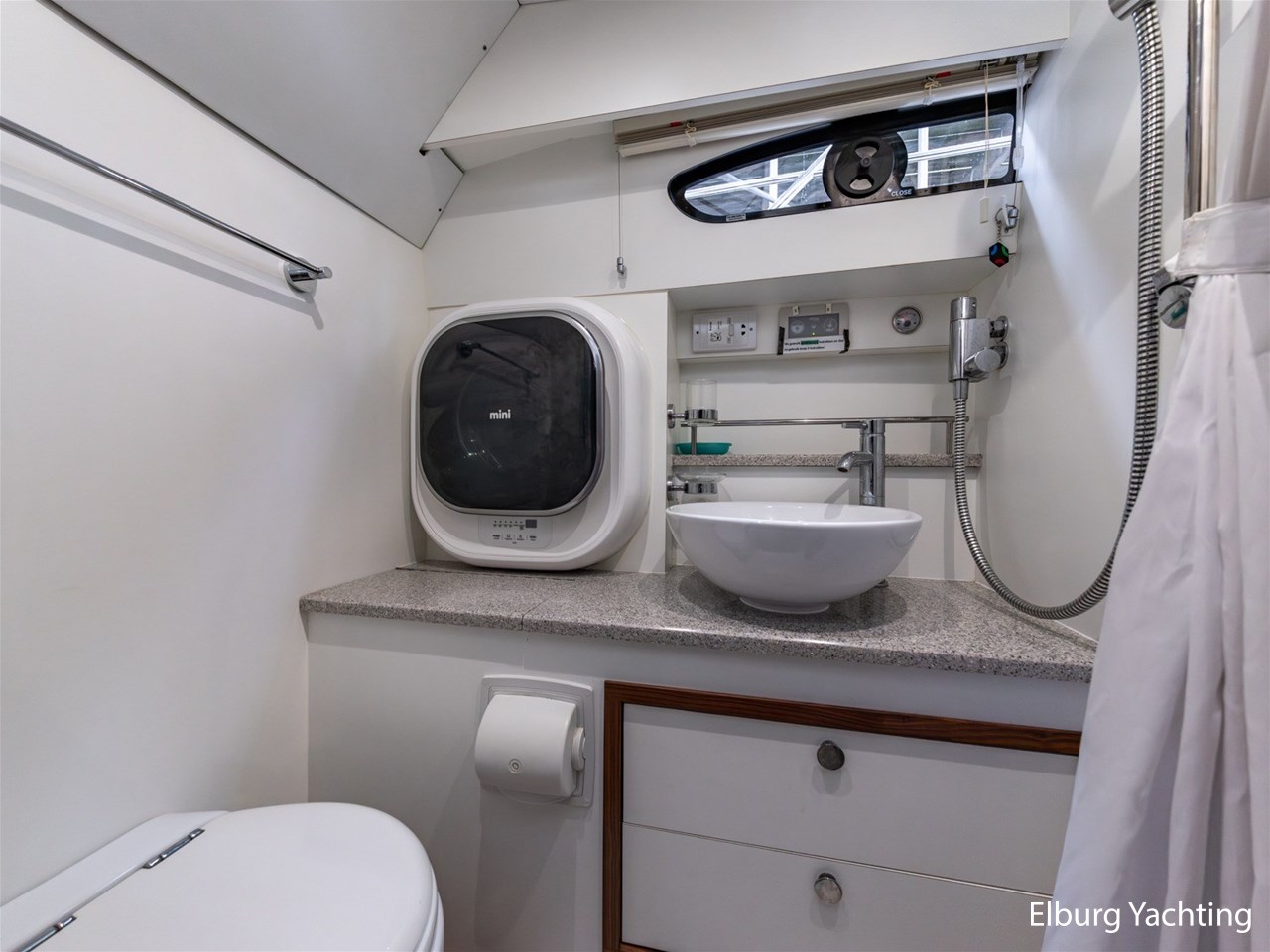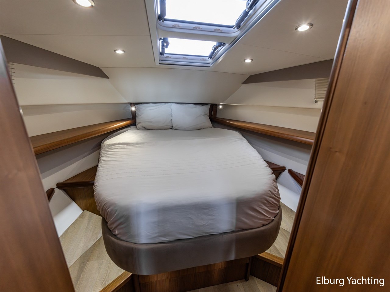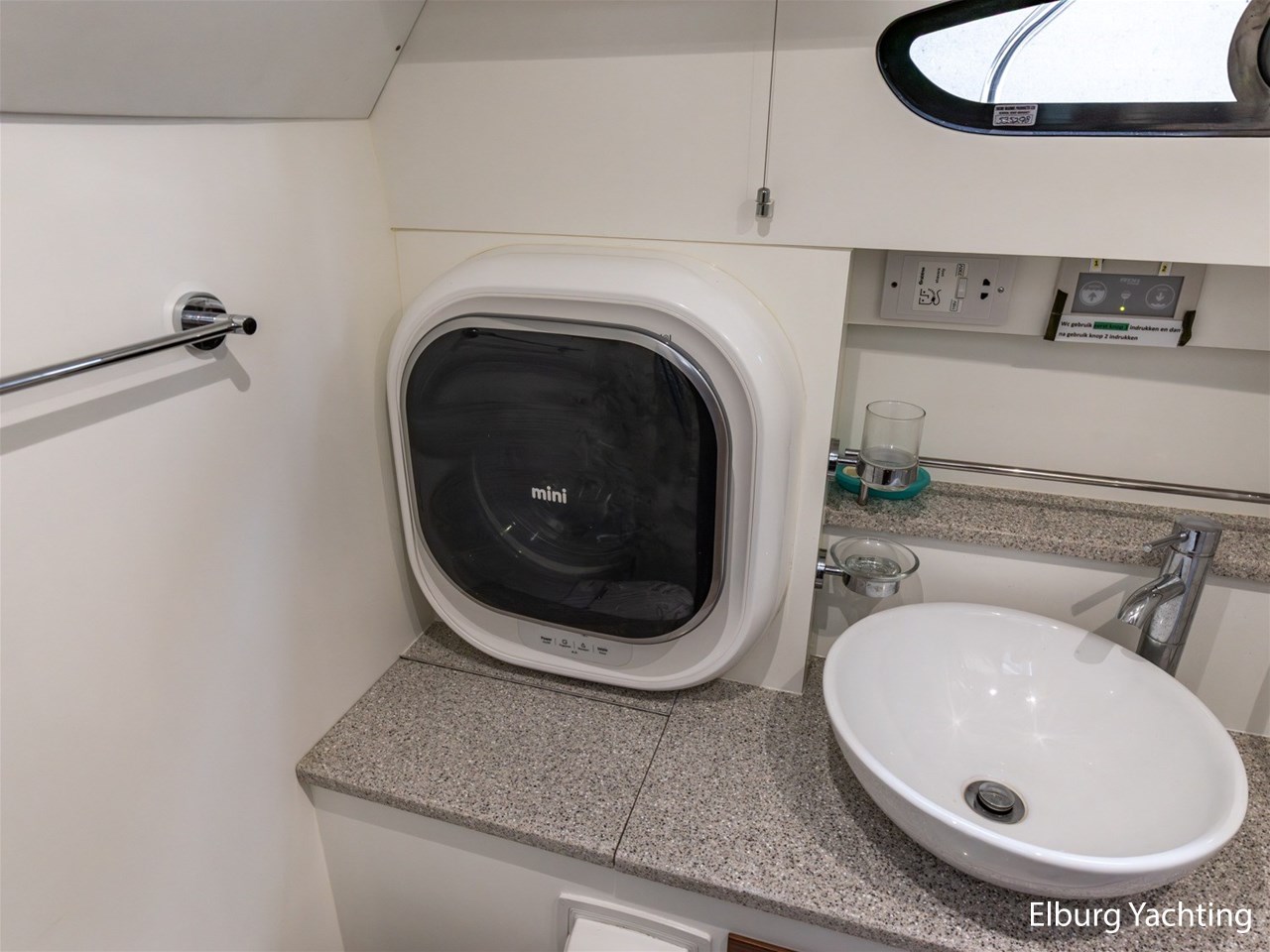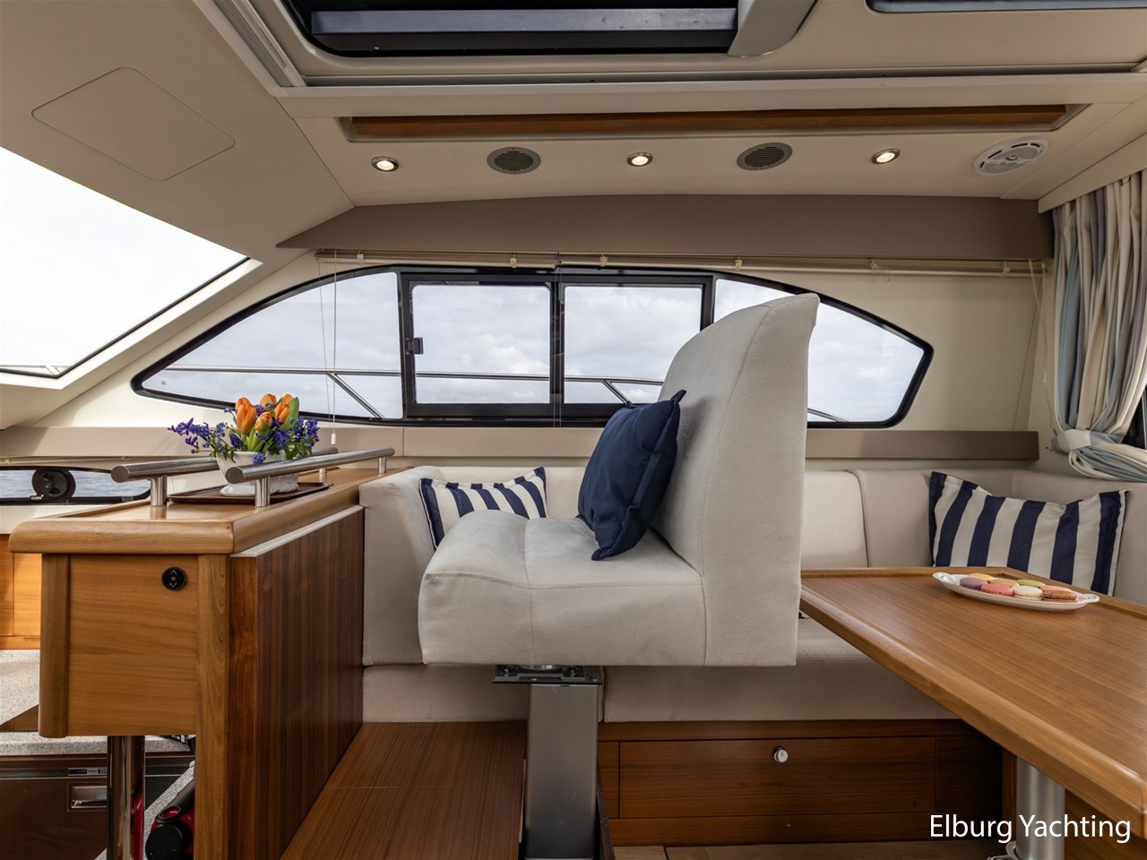 The Haines 32 Offshore is goanywhere open-cockpit motor yacht from the renowned Haines Offshore range in excellent maintained condition. This Haines 32 Offshore is designed for both leisurely cruises and sporty sailing on inland waterways, rivers, and the open sea. Thanks to its specially designed hull and powerful 260 hp Yanmar engine, the boat offers comfort at both low speeds and high speeds up to 17 knots. The yacht makes optimal use of the available space thanks to a smart layout. The open cockpit creates a direct connection to the water for an optimal boating experience. The three folding doors are equipped with screens and curtains, which enhance the connection between the outside and inside. The cockpit can be fully enclosed with a cockpit cover, making it comfortable to use in all weather conditions. There are two large storage compartments under the rear bench, and additional storage space is available in the port and starboard side compartments, for example for mooring lines, jackets, or other accessories. The saloon features high-quality woodwork and is equipped with a comfortable U-shaped bench, providing a panoramic view of the sailing area. An electrically adjustable bench can easily be converted into an additional passenger seat facing the direction of travel. Additionally, the saloon features an electrically operated sliding roof, equipped with both a sunshade and a mosquito net screen. The boat is equipped with forced-air heating in all areas. The floor in the salon, galley, and bedroom features high-quality PVC flooring. The lockable owner’s cabin offers a freestanding double bed, and the salon sofa can be converted into two additional berths. The galley is luxuriously and practically appointed, featuring Avonite countertops, convenient storage drawers, and a 3-burner induction cooktop. There is no gas on board, so everything is electrically powered for added safety. The head is equipped with an electrically operated Tecma toilet, mounted on a raised platform and connected to a holding tank, with the option to discharge directly into surface water via a bypass valve through the hull. In addition, the space features a washing machine (Daewoo DWD-CV702WP, 2022) with a 3 kg capacity. For added convenience and storage, there are spacious shelves, two drawers under the sink, and a large storage compartment under the washing machine. Equipment and extras include: water tanks replaced with plastic ones in 2021, new Whisper Power 8kW generator installed in 2021, electrically operated aft hatch for added convenience, Navionics Raymarine chart update in 2024, TV on a lift in the saloon, onboard Wi-Fi router for internet (SIM card not included), 4 x solar panels with control unit (2x 39W + 2x 54W), rearview camera via chartplotter screen, searchlight, dimmers for saloon lighting, Radio/CD with USB, rudder position indicator, 12-volt power supply, shore power alarm and “Where is my boat?” system, remote control for lighting upon arrival, deck wash pump, frost-proof Gardena hose reel, also for refueling. Clearance height approx. 2.75 m. Want to experience this Haines 32 Offshore for yourself? This Haines is currently available for viewing by appointment in Aalsmeer. For questions and/or to schedule a viewing, you are welcome at Elburg Yachting 7 days a week.