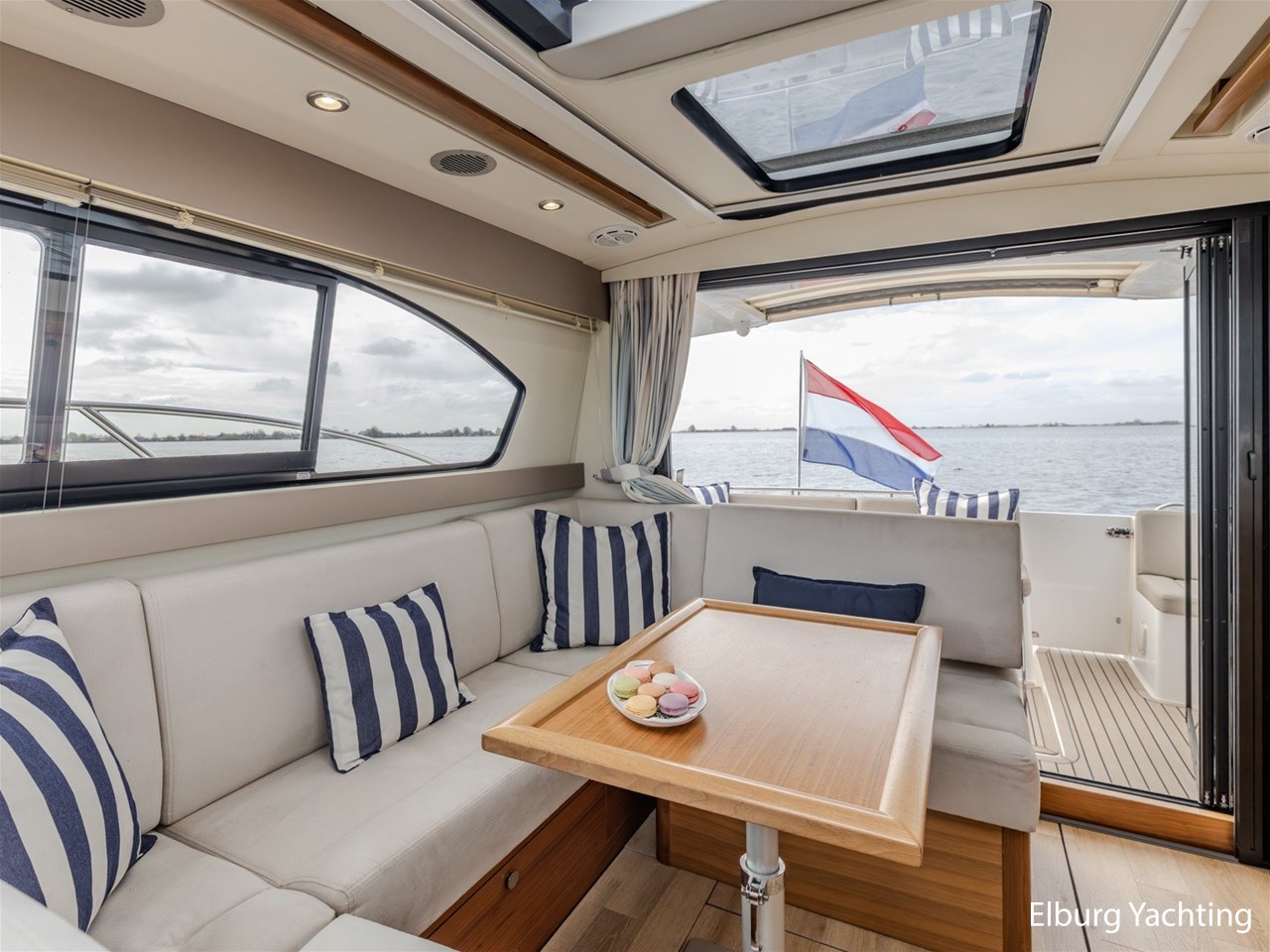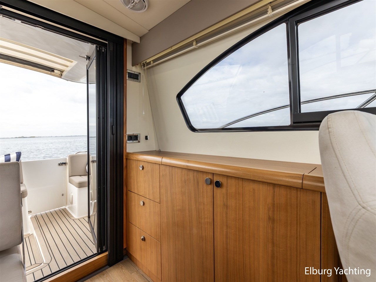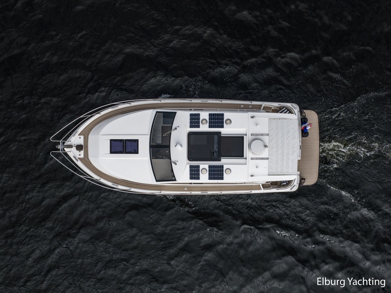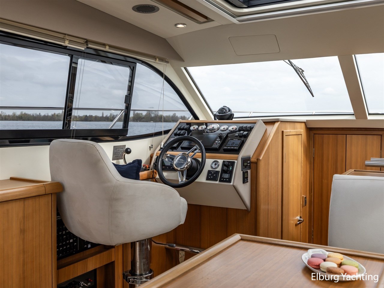 The Haines 32 Offshore is goanywhere open-cockpit motor yacht from the renowned Haines Offshore range in excellent maintained condition. This Haines 32 Offshore is designed for both leisurely cruises and sporty sailing on inland waterways, rivers, and the open sea. Thanks to its specially designed hull and powerful 260 hp Yanmar engine, the boat offers comfort at both low speeds and high speeds up to 17 knots. The yacht makes optimal use of the available space thanks to a smart layout. The open cockpit creates a direct connection to the water for an optimal boating experience. The three folding doors are equipped with screens and curtains, which enhance the connection between the outside and inside. The cockpit can be fully enclosed with a cockpit cover, making it comfortable to use in all weather conditions. There are two large storage compartments under the rear bench, and additional storage space is available in the port and starboard side compartments, for example for mooring lines, jackets, or other accessories. The saloon features high-quality woodwork and is equipped with a comfortable U-shaped bench, providing a panoramic view of the sailing area. An electrically adjustable bench can easily be converted into an additional passenger seat facing the direction of travel. Additionally, the saloon features an electrically operated sliding roof, equipped with both a sunshade and a mosquito net screen. The boat is equipped with forced-air heating in all areas. The floor in the salon, galley, and bedroom features high-quality PVC flooring. The lockable owner’s cabin offers a freestanding double bed, and the salon sofa can be converted into two additional berths. The galley is luxuriously and practically appointed, featuring Avonite countertops, convenient storage drawers, and a 3-burner induction cooktop. There is no gas on board, so everything is electrically powered for added safety. The head is equipped with an electrically operated Tecma toilet, mounted on a raised platform and connected to a holding tank, with the option to discharge directly into surface water via a bypass valve through the hull. In addition, the space features a washing machine (Daewoo DWD-CV702WP, 2022) with a 3 kg capacity. For added convenience and storage, there are spacious shelves, two drawers under the sink, and a large storage compartment under the washing machine. Equipment and extras include: water tanks replaced with plastic ones in 2021, new Whisper Power 8kW generator installed in 2021, electrically operated aft hatch for added convenience, Navionics Raymarine chart update in 2024, TV on a lift in the saloon, onboard Wi-Fi router for internet (SIM card not included), 4 x solar panels with control unit (2x 39W + 2x 54W), rearview camera via chartplotter screen, searchlight, dimmers for saloon lighting, Radio/CD with USB, rudder position indicator, 12-volt power supply, shore power alarm and “Where is my boat?” system, remote control for lighting upon arrival, deck wash pump, frost-proof Gardena hose reel, also for refueling. Clearance height approx. 2.75 m. Want to experience this Haines 32 Offshore for yourself? This Haines is currently available for viewing by appointment in Aalsmeer. For questions and/or to schedule a viewing, you are welcome at Elburg Yachting 7 days a week.
