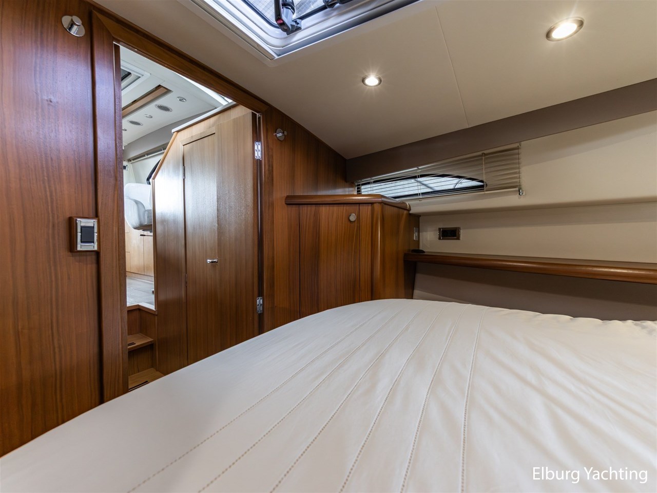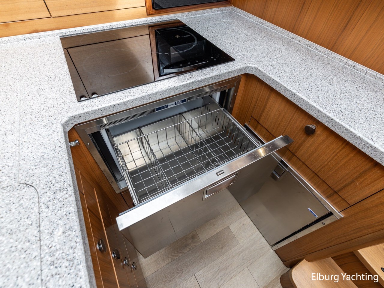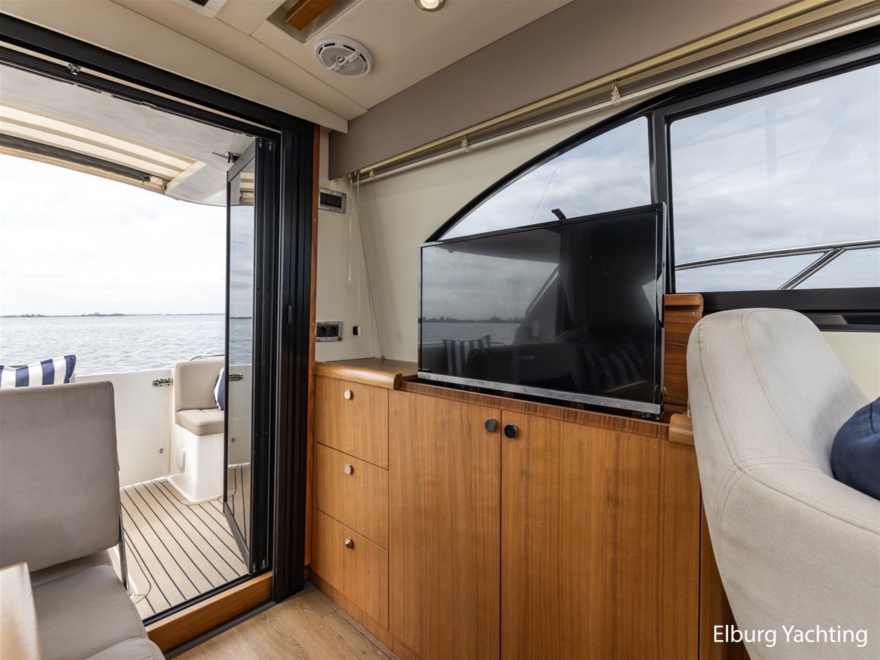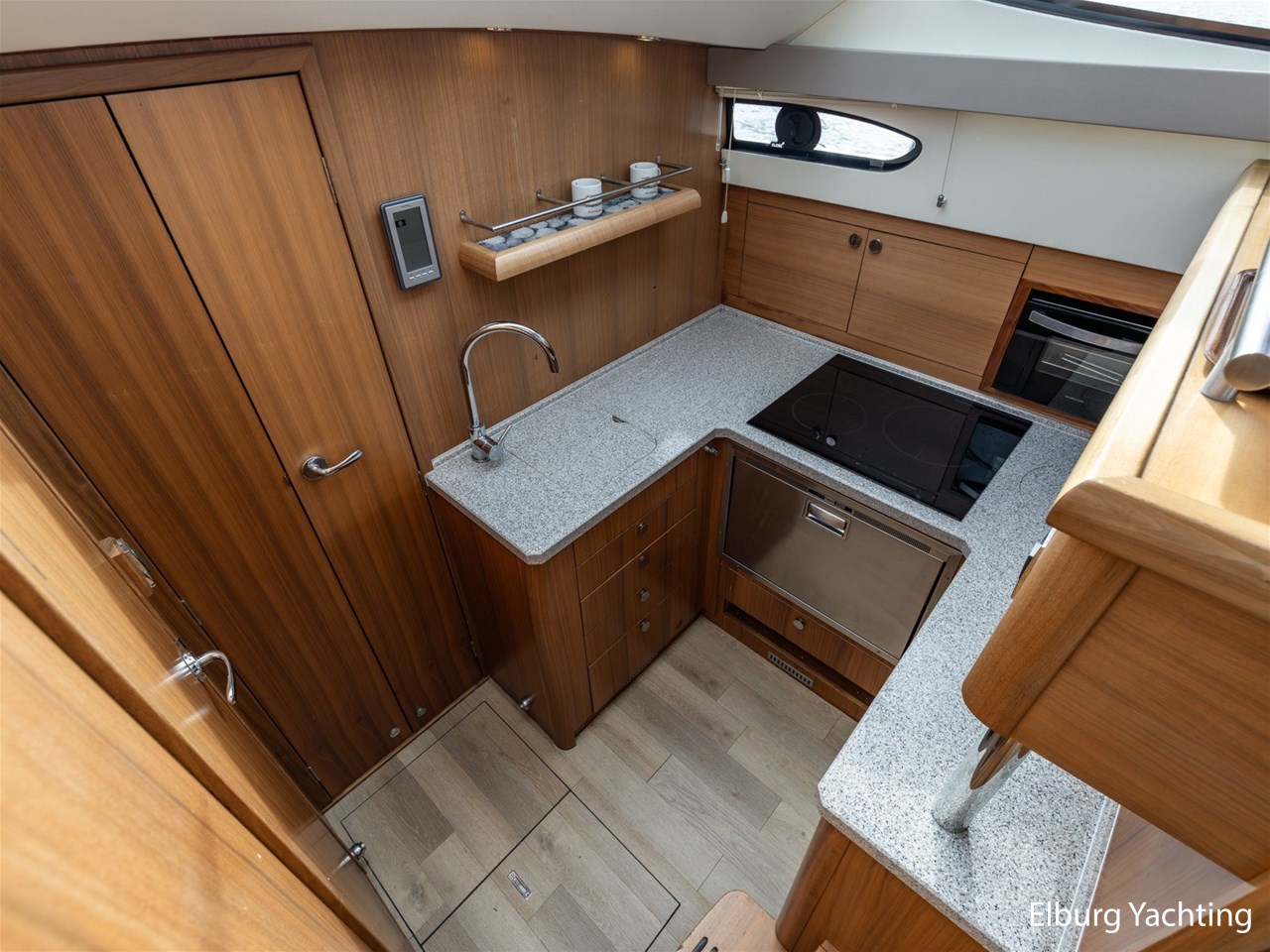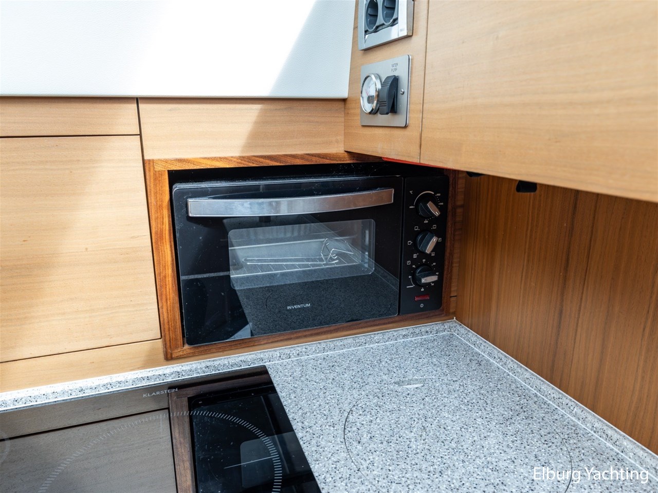 The Haines 32 Offshore is goanywhere open-cockpit motor yacht from the renowned Haines Offshore range in excellent maintained condition. This Haines 32 Offshore is designed for both leisurely cruises and sporty sailing on inland waterways, rivers, and the open sea. Thanks to its specially designed hull and powerful 260 hp Yanmar engine, the boat offers comfort at both low speeds and high speeds up to 17 knots. The yacht makes optimal use of the available space thanks to a smart layout. The open cockpit creates a direct connection to the water for an optimal boating experience. The three folding doors are equipped with screens and curtains, which enhance the connection between the outside and inside. The cockpit can be fully enclosed with a cockpit cover, making it comfortable to use in all weather conditions. There are two large storage compartments under the rear bench, and additional storage space is available in the port and starboard side compartments, for example for mooring lines, jackets, or other accessories. The saloon features high-quality woodwork and is equipped with a comfortable U-shaped bench, providing a panoramic view of the sailing area. An electrically adjustable bench can easily be converted into an additional passenger seat facing the direction of travel. Additionally, the saloon features an electrically operated sliding roof, equipped with both a sunshade and a mosquito net screen. The boat is equipped with forced-air heating in all areas. The floor in the salon, galley, and bedroom features high-quality PVC flooring. The lockable owner’s cabin offers a freestanding double bed, and the salon sofa can be converted into two additional berths. The galley is luxuriously and practically appointed, featuring Avonite countertops, convenient storage drawers, and a 3-burner induction cooktop. There is no gas on board, so everything is electrically powered for added safety. The head is equipped with an electrically operated Tecma toilet, mounted on a raised platform and connected to a holding tank, with the option to discharge directly into surface water via a bypass valve through the hull. In addition, the space features a washing machine (Daewoo DWD-CV702WP, 2022) with a 3 kg capacity. For added convenience and storage, there are spacious shelves, two drawers under the sink, and a large storage compartment under the washing machine. Equipment and extras include: water tanks replaced with plastic ones in 2021, new Whisper Power 8kW generator installed in 2021, electrically operated aft hatch for added convenience, Navionics Raymarine chart update in 2024, TV on a lift in the saloon, onboard Wi-Fi router for internet (SIM card not included), 4 x solar panels with control unit (2x 39W + 2x 54W), rearview camera via chartplotter screen, searchlight, dimmers for saloon lighting, Radio/CD with USB, rudder position indicator, 12-volt power supply, shore power alarm and “Where is my boat?” system, remote control for lighting upon arrival, deck wash pump, frost-proof Gardena hose reel, also for refueling. Clearance height approx. 2.75 m. Want to experience this Haines 32 Offshore for yourself? This Haines is currently available for viewing by appointment in Aalsmeer. For questions and/or to schedule a viewing, you are welcome at Elburg Yachting 7 days a week.