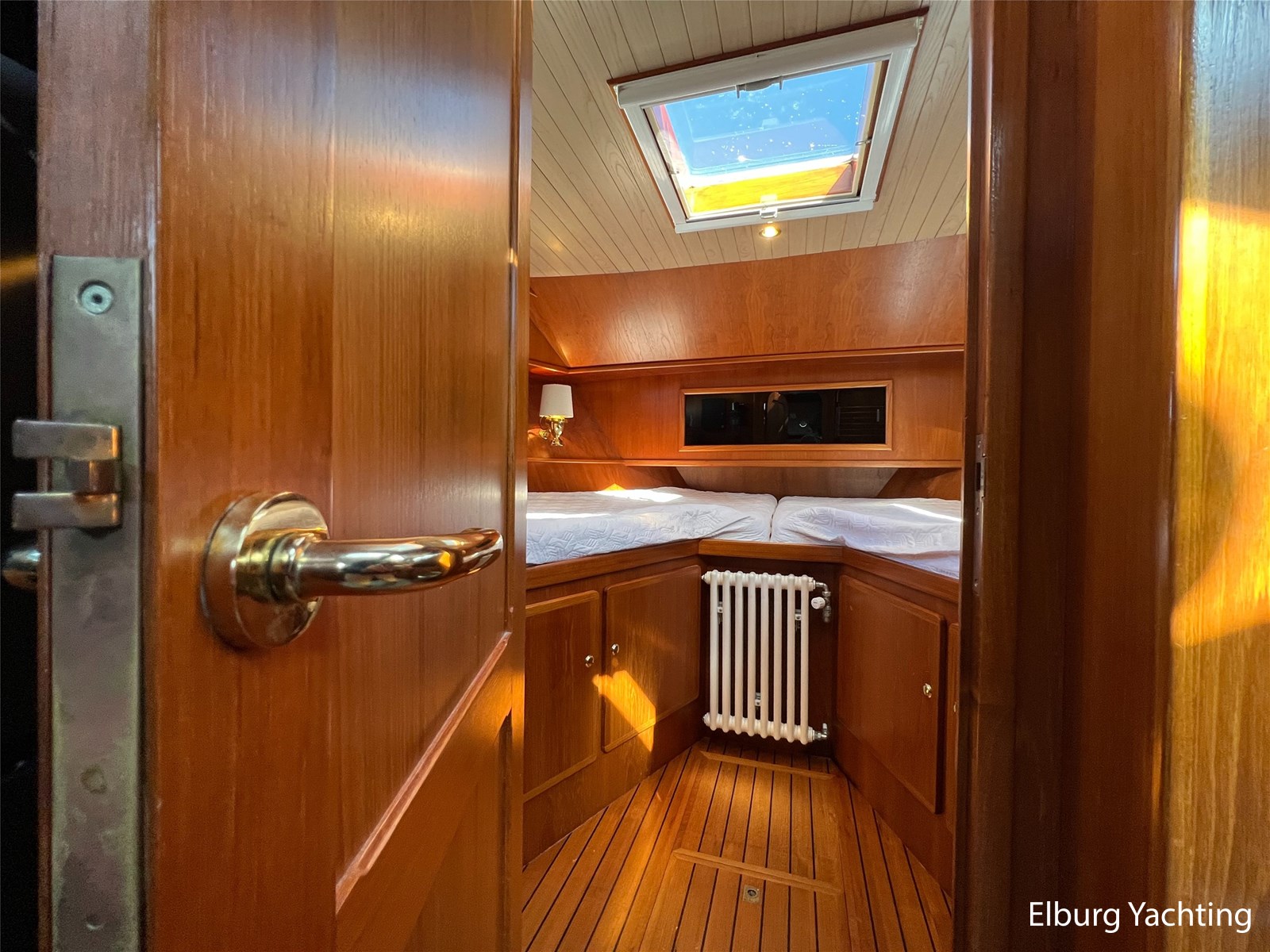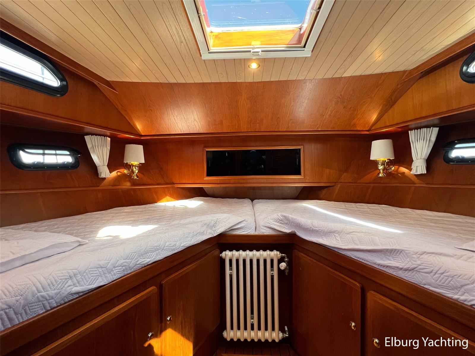 - 4 beds (1 freestanding bed in the aft cabin, 1 V-shaped bed in the forward cabin)
