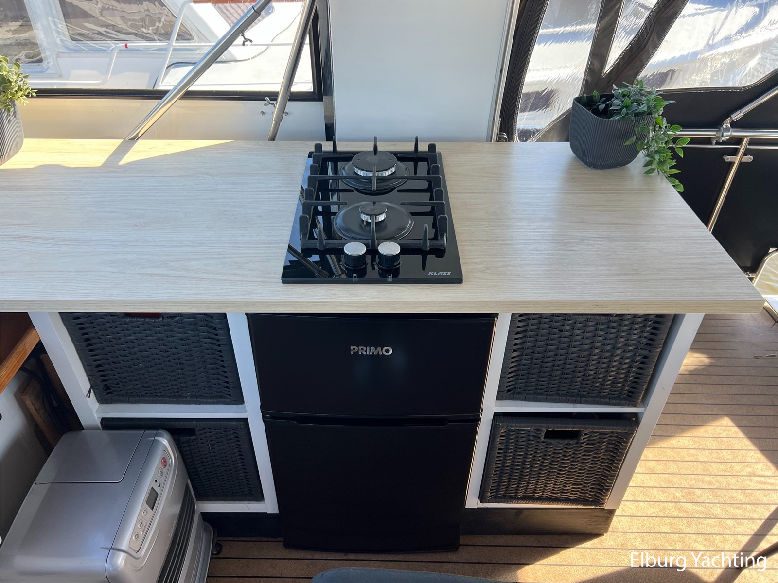 - Electric 2-door Exquisit refrigerator/freezer + drinks fridge on the aft deck