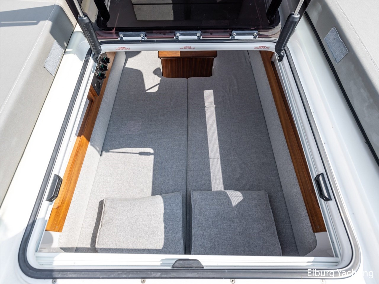 The optional aft cabin offers comfortable sleeping accommodation for two and also serves as a sun deck. The driver's seats can be flipped over creating a dining opportunity.
