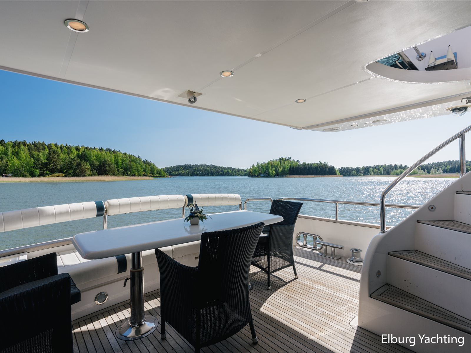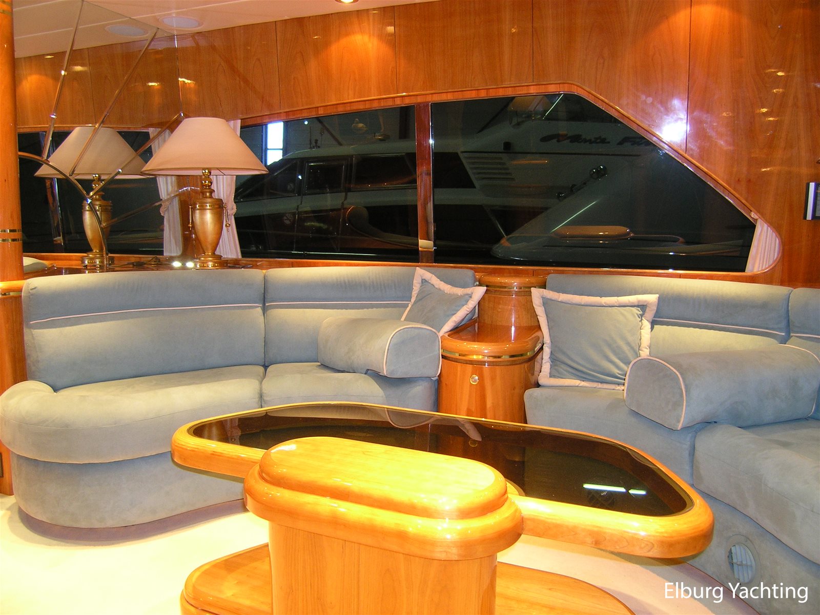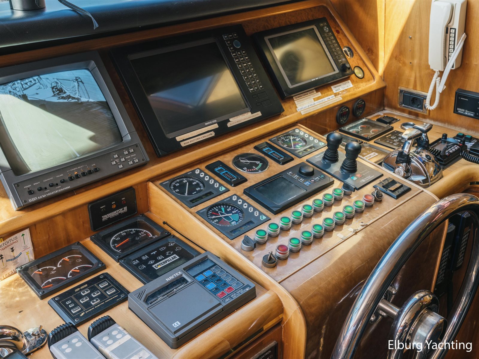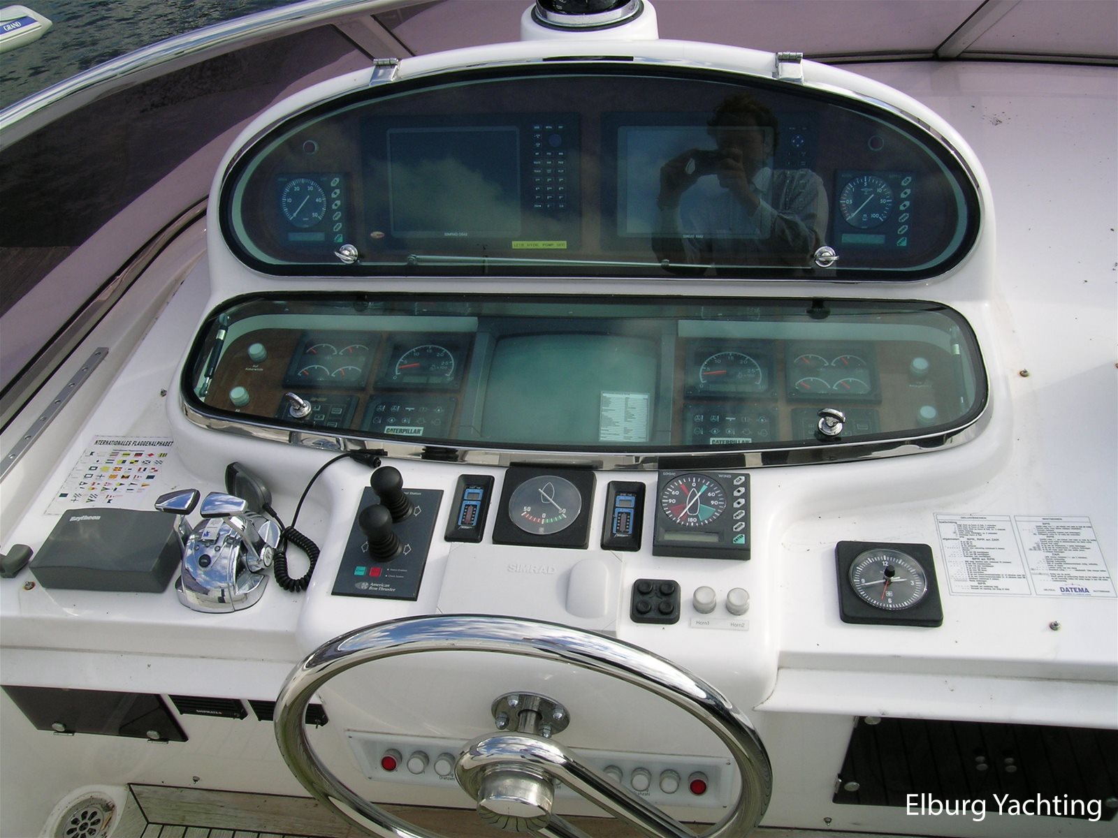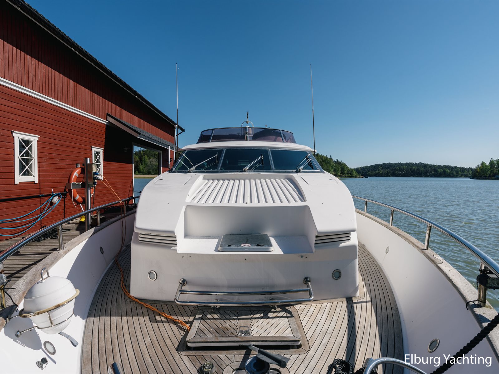 Deze Elegance 65 is voorzien van: Teakhouten potdeksel rondom, vaste zitbank in op achterdek met bijbehorende kussens, achterdek en salon gelijkvloers, fraaie r.v.s. halfronde schuifpui naar salon, 'luie' buitentrap naar flybridge, kussens voor buitenzit flybridge, buitenentree naar lazarette en machinekamer tevens ook via binnendoor bereikbaar, 4 blads schroeven, Maxwell verhaallier op achterdek, halogeenverlichting + dimmers, zijdeur aan SB zijde bij stuurstand, luxe vaarstoel, alle granieten vloeren zijn verwarmd, intern + extern camera systeem, Raytheon loudhailer, VDO logic windmeter, Besenzoni gangway, Miele was-/droogcombinatie, Miele vaatwasser, groot zonnedek op voorschip, wijnkoelinstallatie in achterschip, dekwaspomp, volledige buitenkeuken op flybridge, deels overdekte en brede gangboorden, B&O geluidsinstallatie, klapbare radarbeugel, veel bergruimte, zeer uitgebreid + luxueus afgewerkt schip. Het jacht is op afspraak te bezichtigen in Finland. 3D interieur impressie: https://my.matterport.com/show/?m=2QNkpAVueRm Voor vragen en/of het maken van een afspraak bent u van harte welkom 7 dagen in de week bij Elburg Yachting