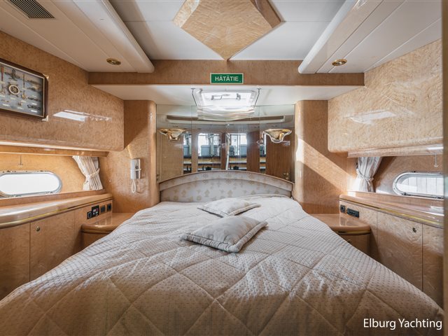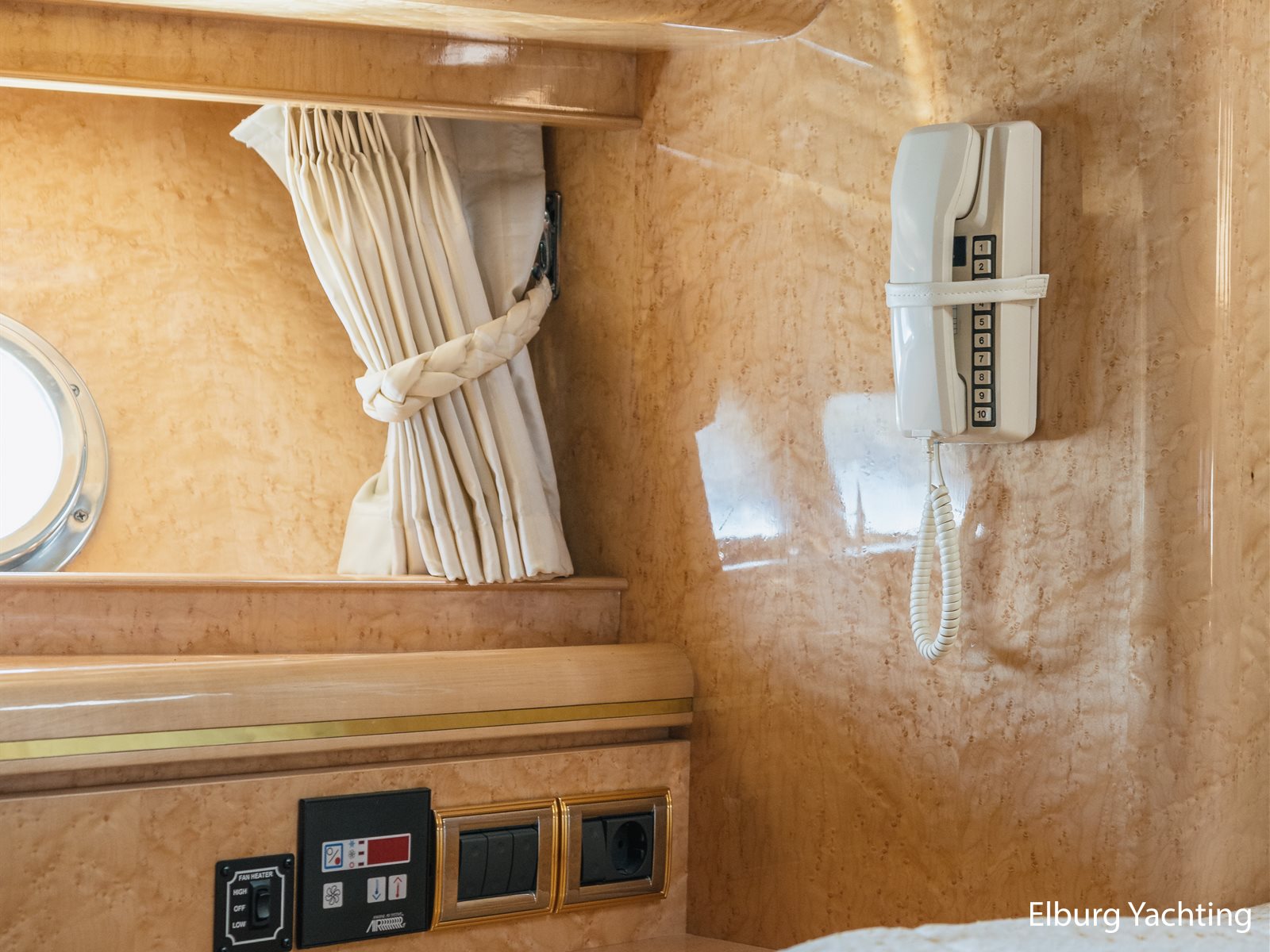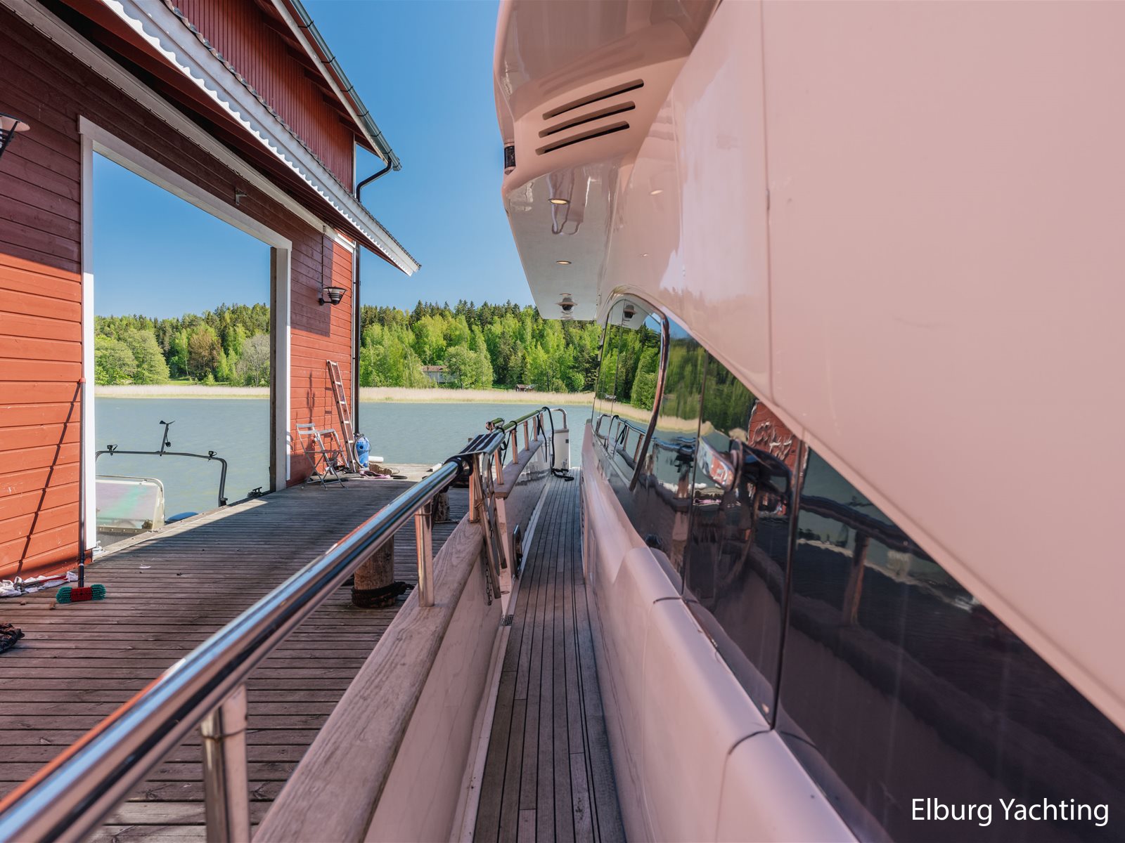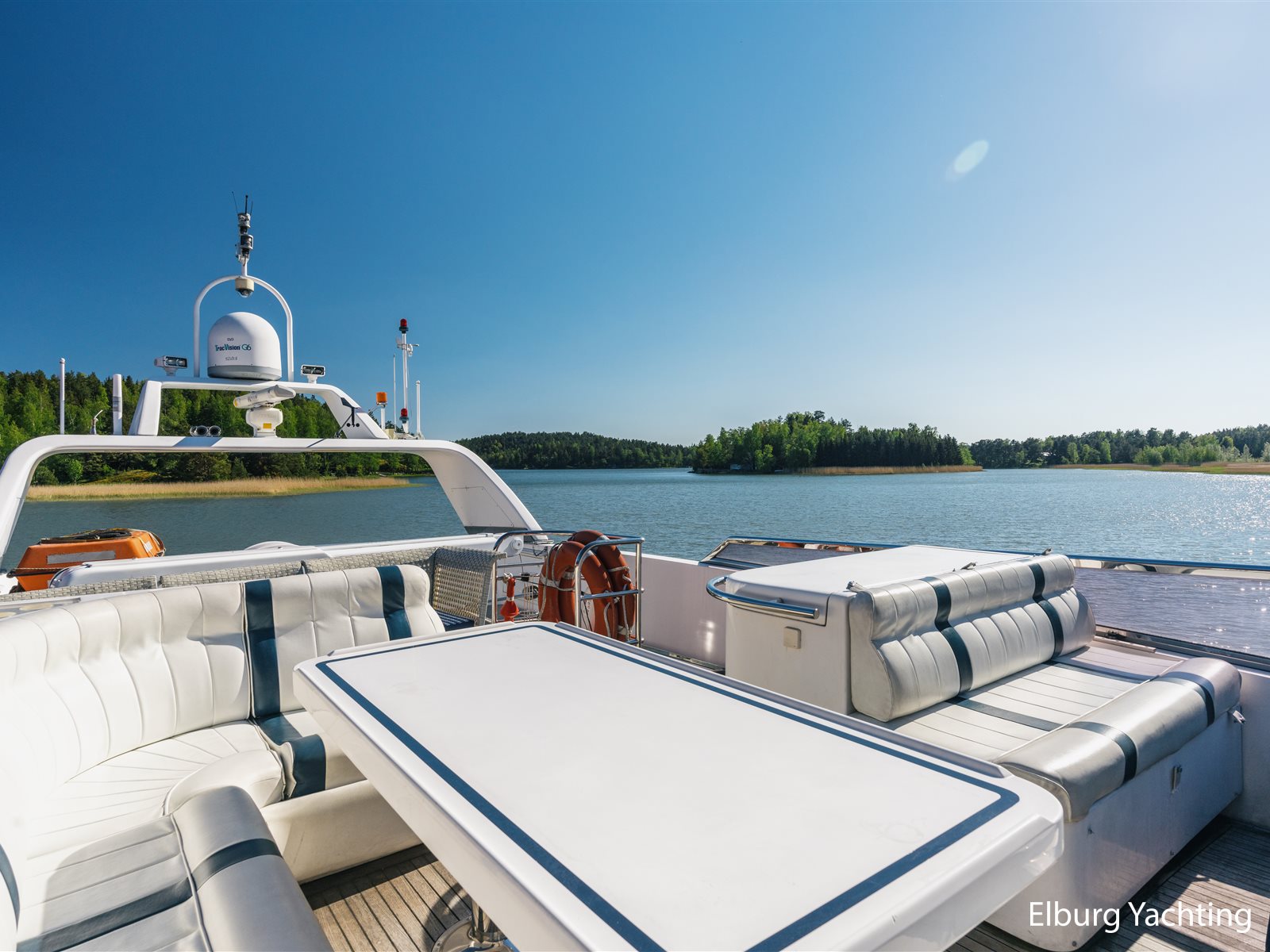 Deze Elegance 65 is voorzien van: Teakhouten potdeksel rondom, vaste zitbank in op achterdek met bijbehorende kussens, achterdek en salon gelijkvloers, fraaie r.v.s. halfronde schuifpui naar salon, 'luie' buitentrap naar flybridge, kussens voor buitenzit flybridge, buitenentree naar lazarette en machinekamer tevens ook via binnendoor bereikbaar, 4 blads schroeven, Maxwell verhaallier op achterdek, halogeenverlichting + dimmers, zijdeur aan SB zijde bij stuurstand, luxe vaarstoel, alle granieten vloeren zijn verwarmd, intern + extern camera systeem, Raytheon loudhailer, VDO logic windmeter, Besenzoni gangway, Miele was-/droogcombinatie, Miele vaatwasser, groot zonnedek op voorschip, wijnkoelinstallatie in achterschip, dekwaspomp, volledige buitenkeuken op flybridge, deels overdekte en brede gangboorden, B&O geluidsinstallatie, klapbare radarbeugel, veel bergruimte, zeer uitgebreid + luxueus afgewerkt schip. Het jacht is op afspraak te bezichtigen in Finland. 3D interieur impressie: https://my.matterport.com/show/?m=2QNkpAVueRm Voor vragen en/of het maken van een afspraak bent u van harte welkom 7 dagen in de week bij Elburg Yachting