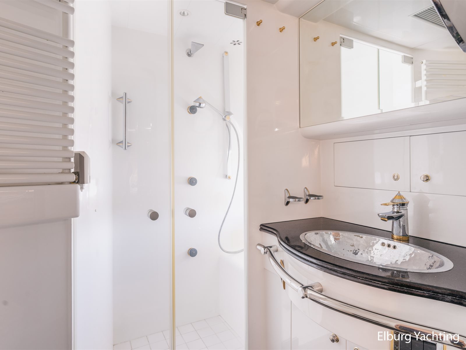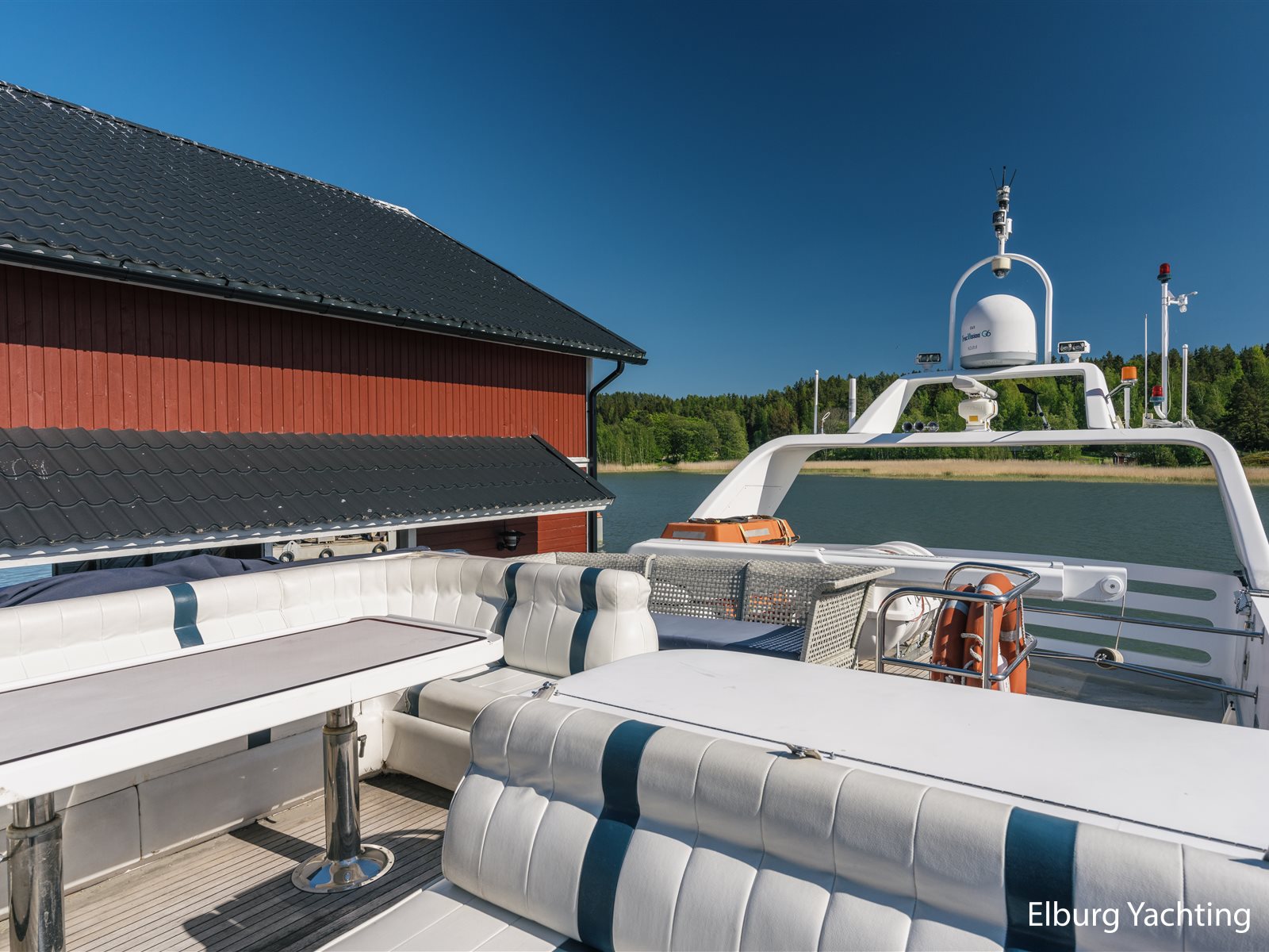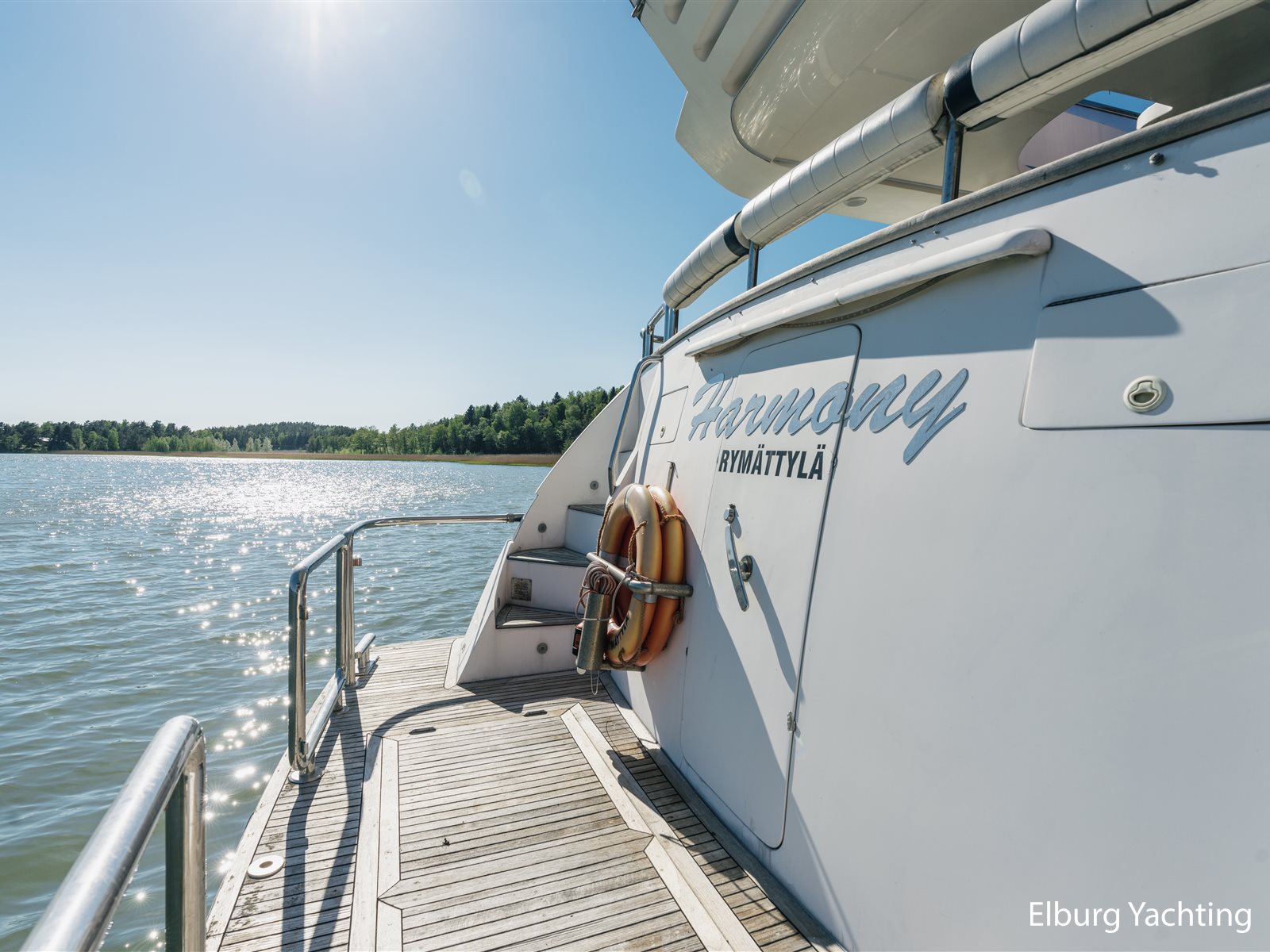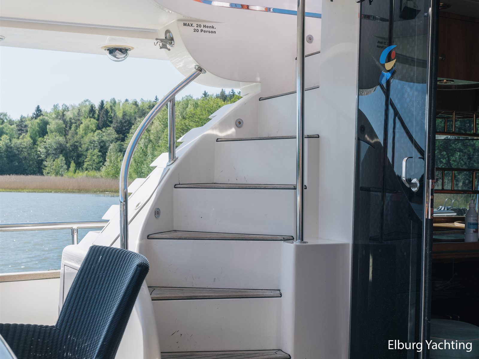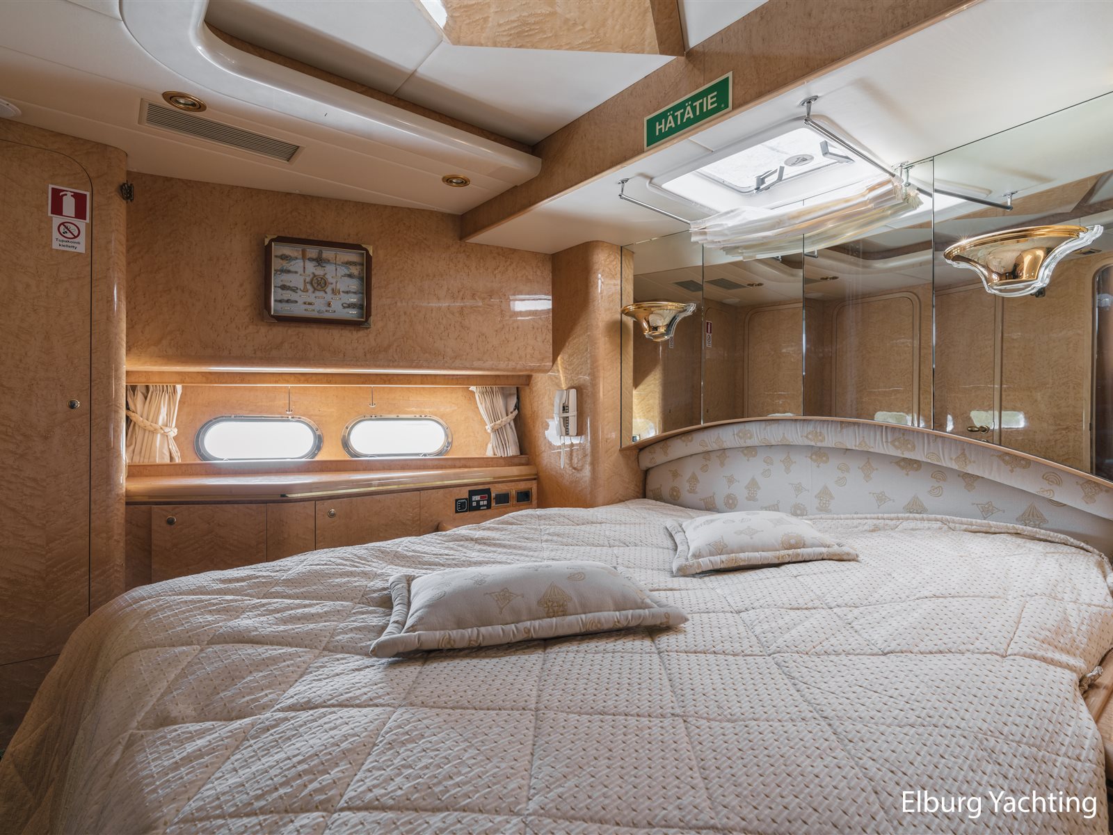 Deze Elegance 65 is voorzien van: Teakhouten potdeksel rondom, vaste zitbank in op achterdek met bijbehorende kussens, achterdek en salon gelijkvloers, fraaie r.v.s. halfronde schuifpui naar salon, 'luie' buitentrap naar flybridge, kussens voor buitenzit flybridge, buitenentree naar lazarette en machinekamer tevens ook via binnendoor bereikbaar, 4 blads schroeven, Maxwell verhaallier op achterdek, halogeenverlichting + dimmers, zijdeur aan SB zijde bij stuurstand, luxe vaarstoel, alle granieten vloeren zijn verwarmd, intern + extern camera systeem, Raytheon loudhailer, VDO logic windmeter, Besenzoni gangway, Miele was-/droogcombinatie, Miele vaatwasser, groot zonnedek op voorschip, wijnkoelinstallatie in achterschip, dekwaspomp, volledige buitenkeuken op flybridge, deels overdekte en brede gangboorden, B&O geluidsinstallatie, klapbare radarbeugel, veel bergruimte, zeer uitgebreid + luxueus afgewerkt schip. Het jacht is op afspraak te bezichtigen in Finland. 3D interieur impressie: https://my.matterport.com/show/?m=2QNkpAVueRm Voor vragen en/of het maken van een afspraak bent u van harte welkom 7 dagen in de week bij Elburg Yachting