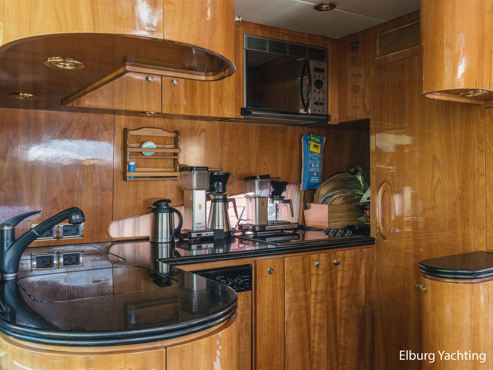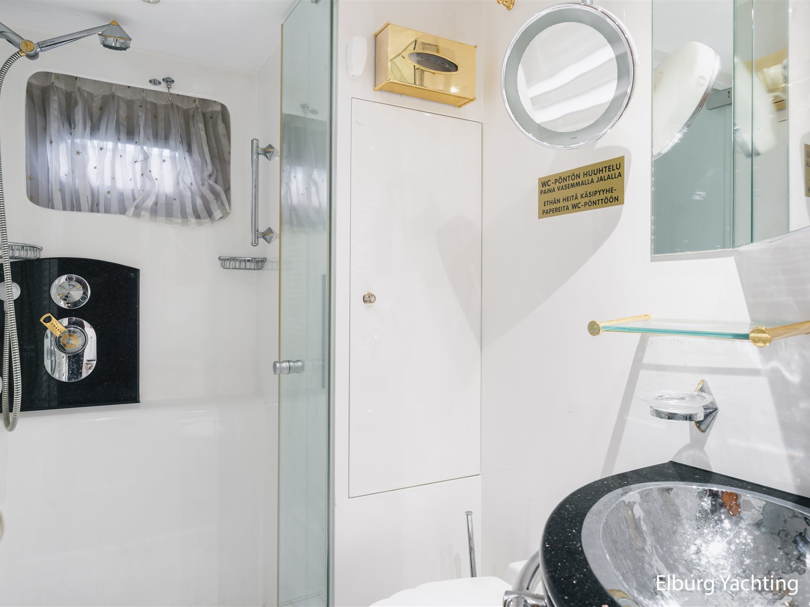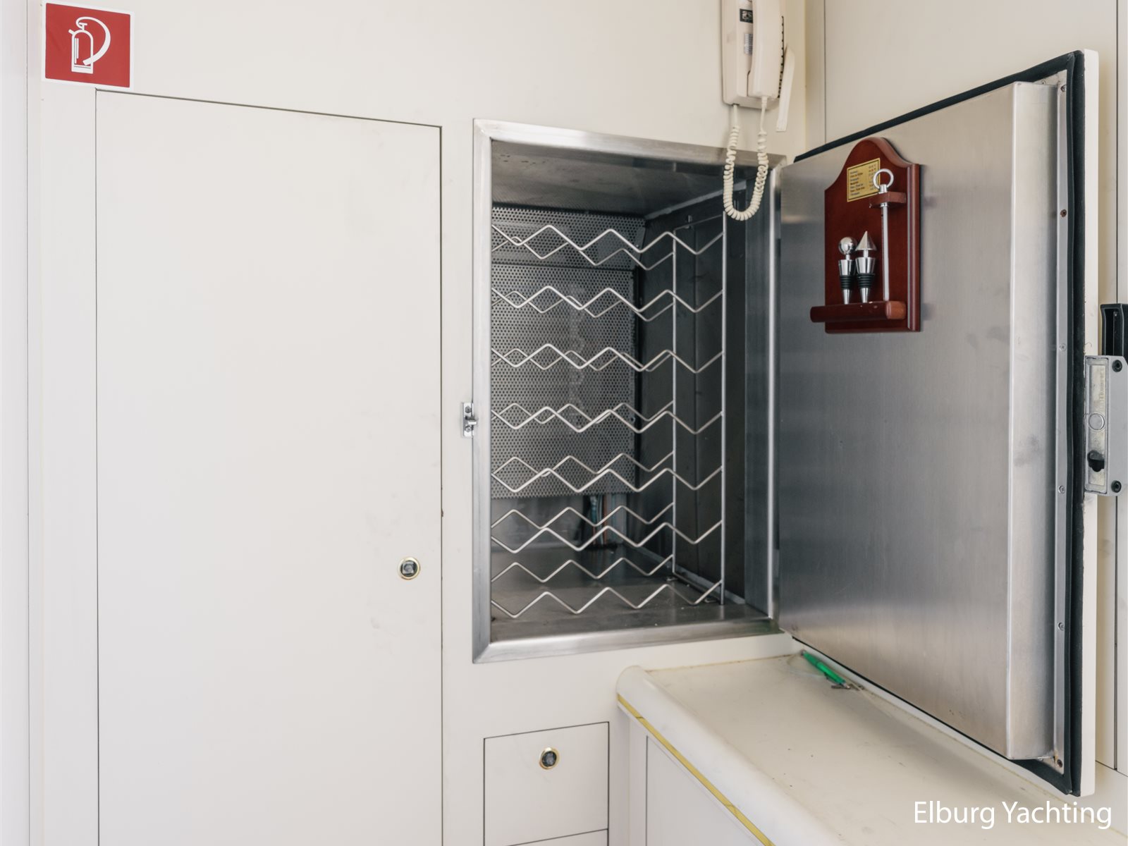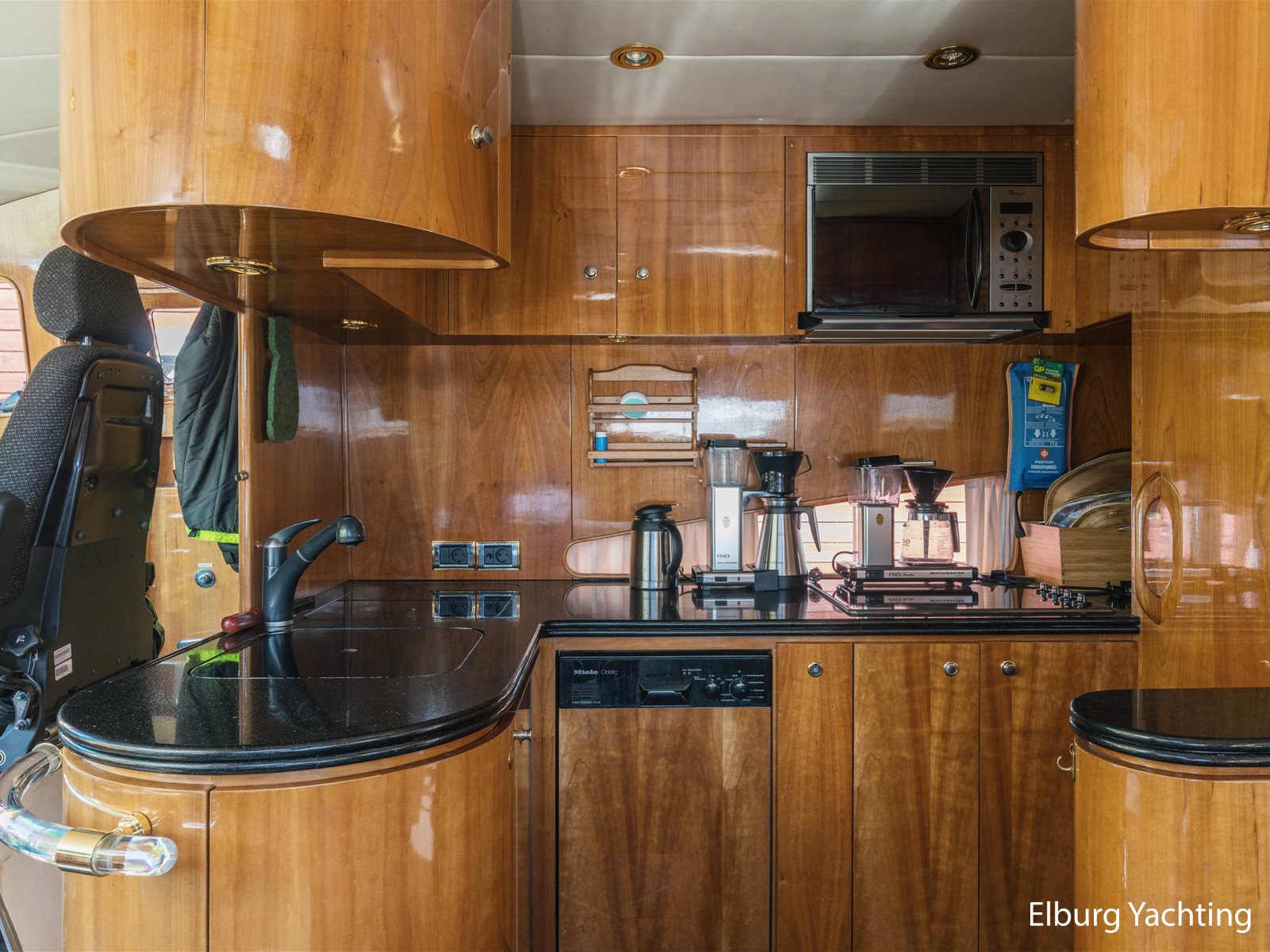 Deze Elegance 65 is voorzien van: Teakhouten potdeksel rondom, vaste zitbank in op achterdek met bijbehorende kussens, achterdek en salon gelijkvloers, fraaie r.v.s. halfronde schuifpui naar salon, 'luie' buitentrap naar flybridge, kussens voor buitenzit flybridge, buitenentree naar lazarette en machinekamer tevens ook via binnendoor bereikbaar, 4 blads schroeven, Maxwell verhaallier op achterdek, halogeenverlichting + dimmers, zijdeur aan SB zijde bij stuurstand, luxe vaarstoel, alle granieten vloeren zijn verwarmd, intern + extern camera systeem, Raytheon loudhailer, VDO logic windmeter, Besenzoni gangway, Miele was-/droogcombinatie, Miele vaatwasser, groot zonnedek op voorschip, wijnkoelinstallatie in achterschip, dekwaspomp, volledige buitenkeuken op flybridge, deels overdekte en brede gangboorden, B&O geluidsinstallatie, klapbare radarbeugel, veel bergruimte, zeer uitgebreid + luxueus afgewerkt schip. Het jacht is op afspraak te bezichtigen in Finland. 3D interieur impressie: https://my.matterport.com/show/?m=2QNkpAVueRm Voor vragen en/of het maken van een afspraak bent u van harte welkom 7 dagen in de week bij Elburg Yachting