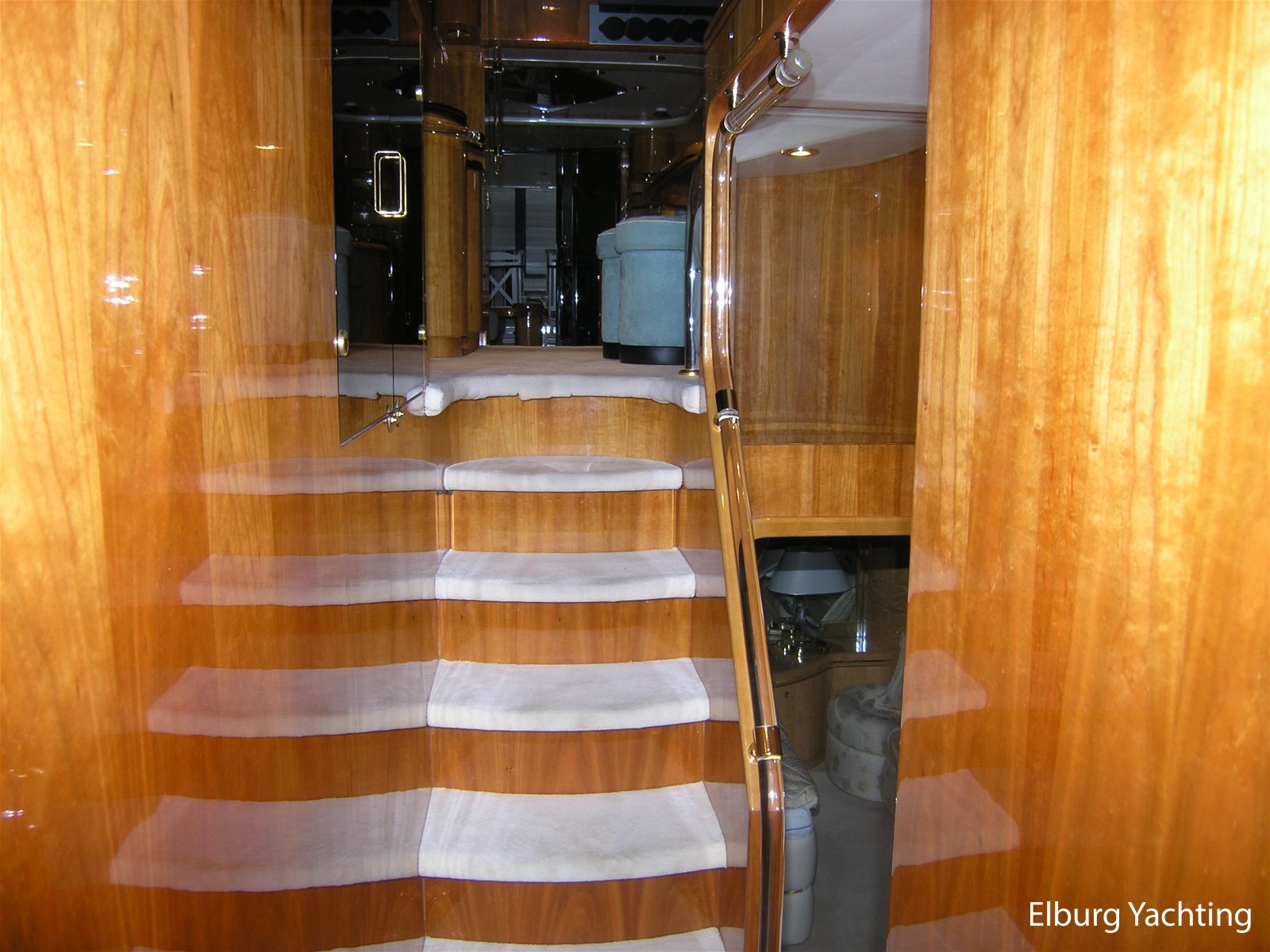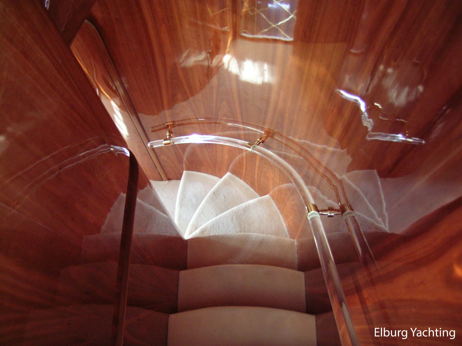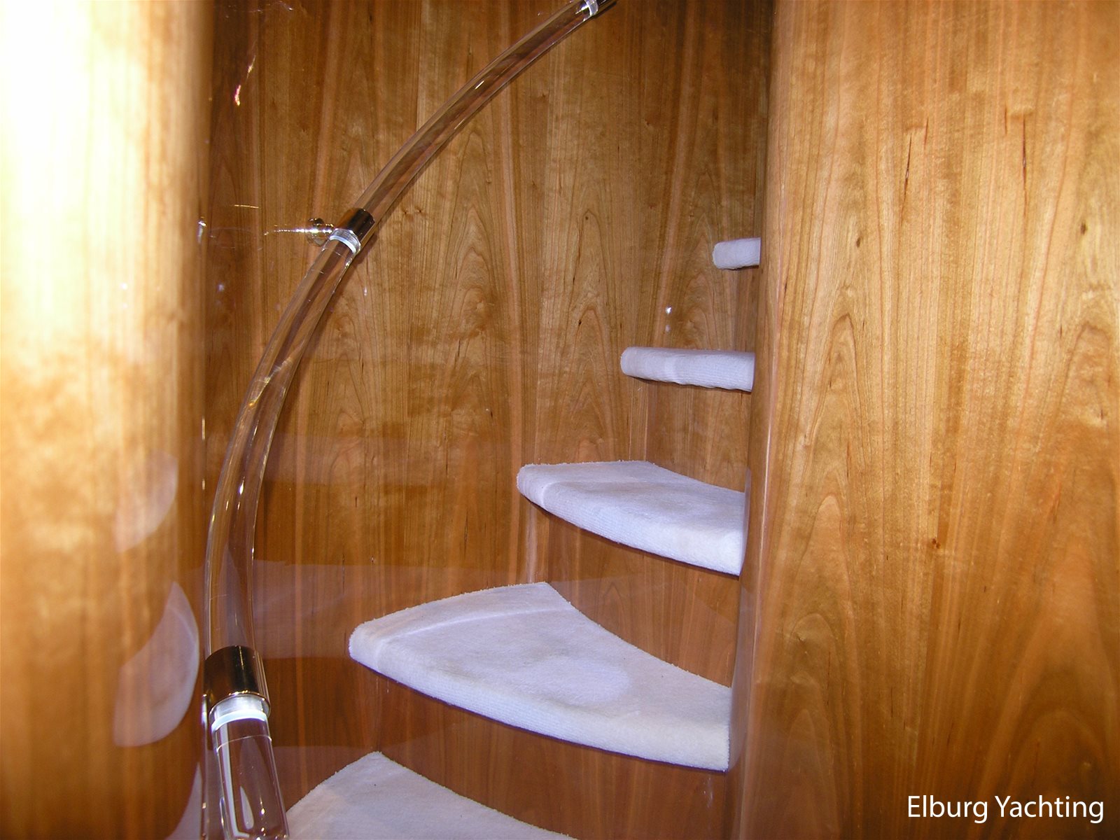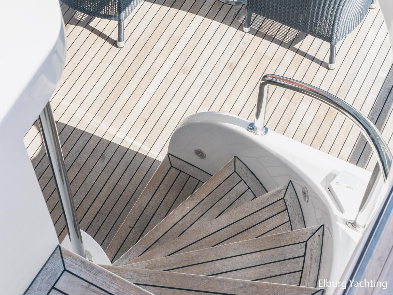 Geïntegreerd met vaste trap naar achterdek + r.v.s. reling