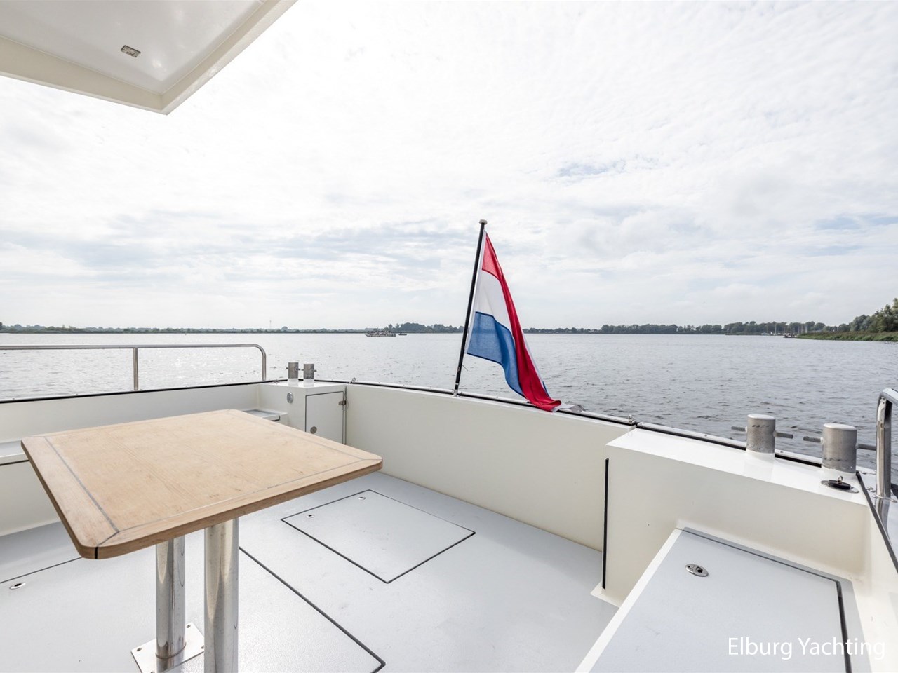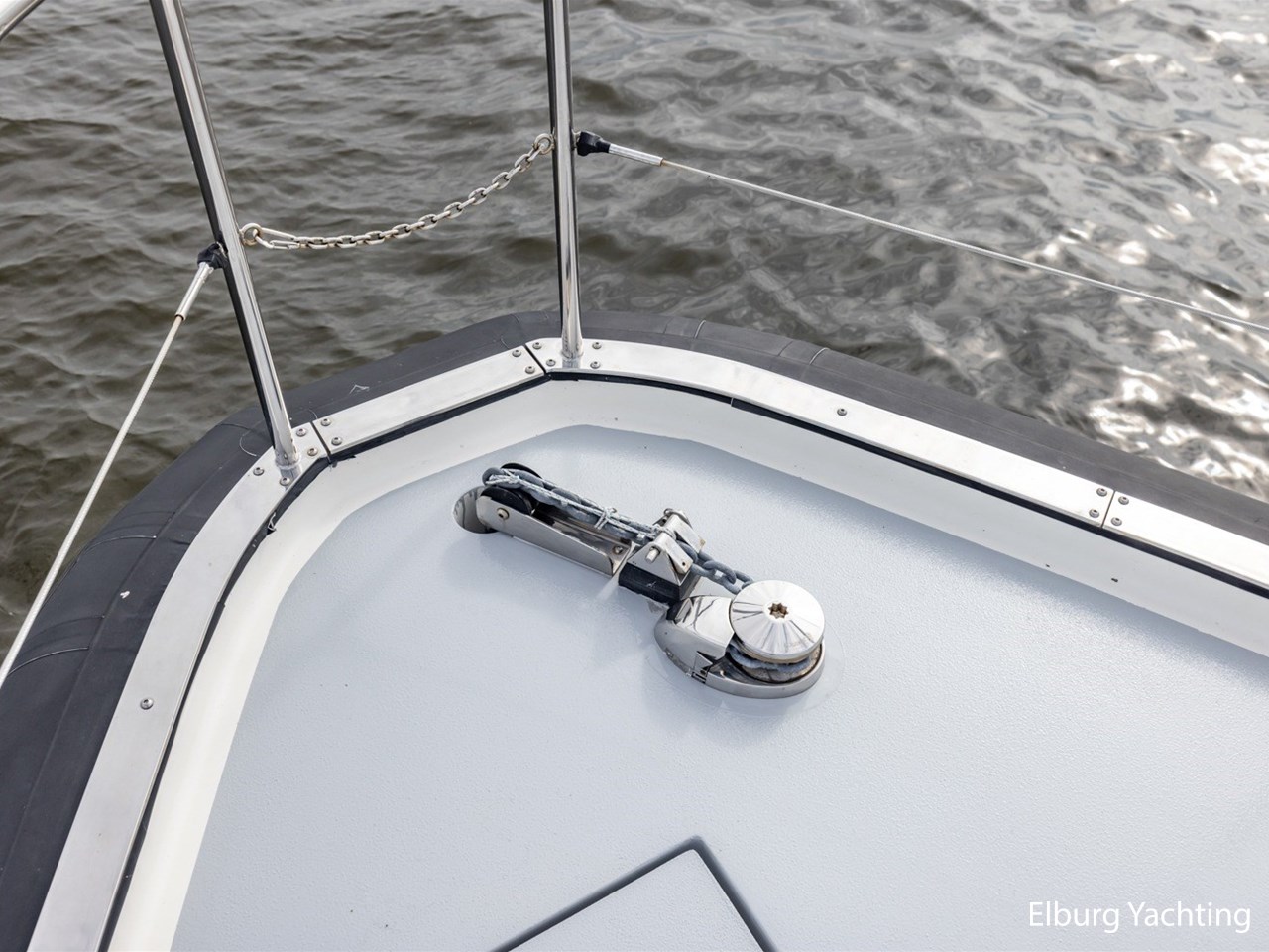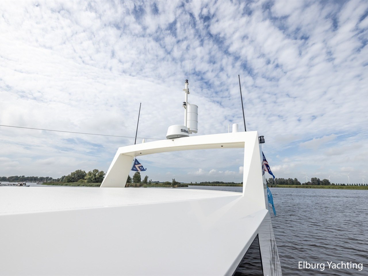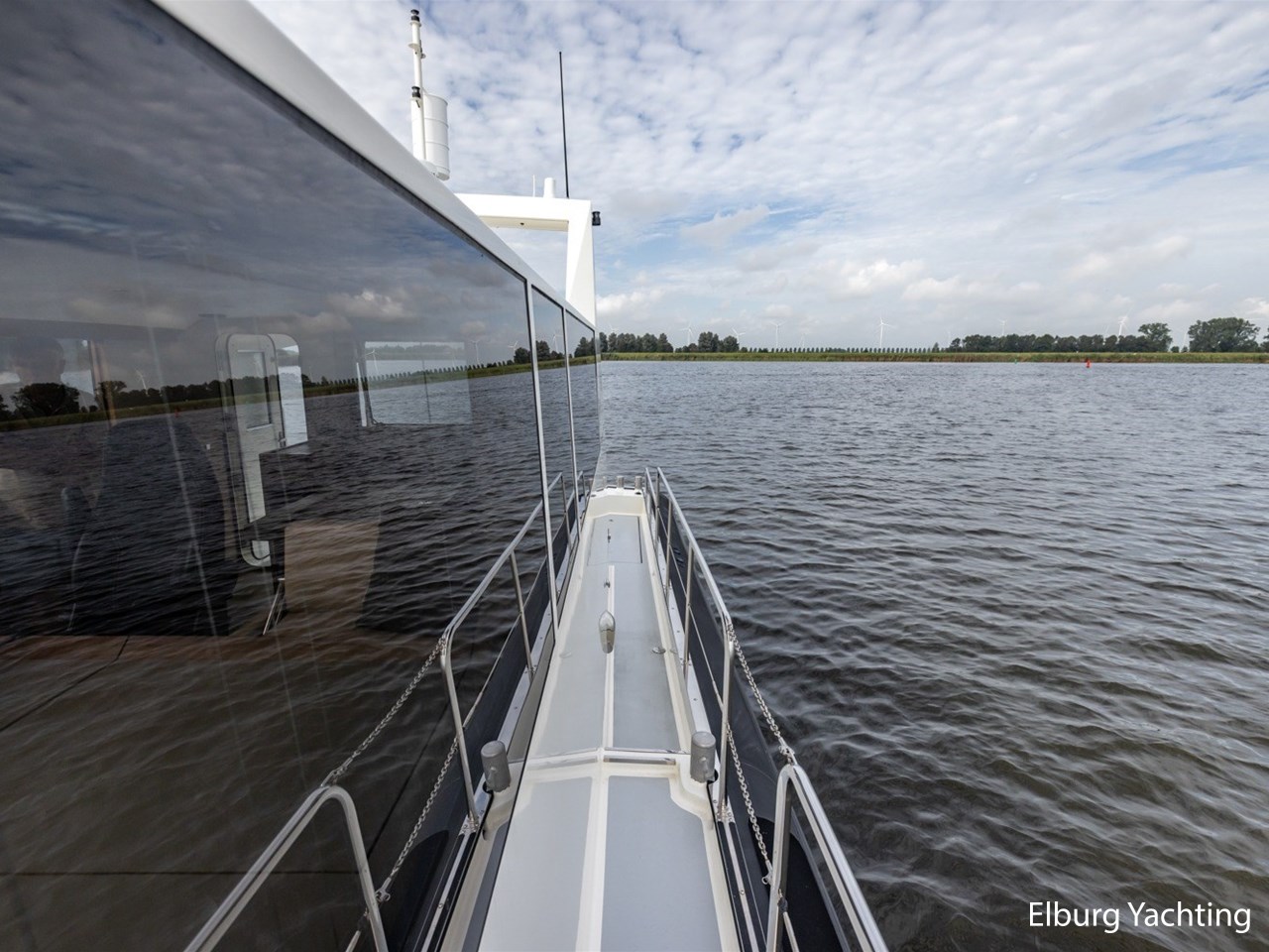 Het schip is aantoonbaar goed onderhouden onder de huidige en tevens eerste eigenaar. De uitgebreide en professionele Simrad navigatiemiddelen, AIS-transponder en Simrad 4G radar zorgen voor een comfortabele tocht met hoge mate van veiligheid. De hoogwaardige 2 Component Polyurethaan blauwe romp coating is in goede staat samen met de rest van het schip. De Volvo Penta D6 dieselmotoren (elk 435 pk) drijven de in halve tunnels ingebouwde schroeven aan, wat zorgt voor minder kwetsbaarheid, betere bescherming en minder diepgang. De D-fenders rondom zorgen voor een nog grotere stabiliteit (=veiligheid) bij slecht weer. Veel bergruimte door talrijke kasten en lades door het gehele schip. Het schip is voorzien van: Ruime en verdiepte open kuip voor een beschutte zitting met vast zitbank incl. bijbehorende kussens, de kuip is voorzien van een overkapping met nacht/werk verlichting en te verlengen met een canvas zonnescherm, kuip met afgesloten (diepe) bakskisten, ruim bergluik in achterschip, klapbare spiegel te gebruiken als zwemplatform, entree stuurhuis/salon via achter- en zijdeur (SB), volledig zicht rondom vanaf stuurstand, luxe Norsapp stuurstoel, professioneel ingericht dashboard met hoogwaardige Simrad navigatie-instrumenten, Wifi boordnet via 4G, voor de co- pilot is er een in hoogte elektrisch verstelbare meevaar zitting aanwezig welke in ruststand tevens versteld kan worden naar een gezellige zit aan de borrel tafel, het interieur is voorzien van comfortabele vloerverwarming, luxaflex plisse´ zonwering, Samsung TV op lift in salon, Samsung TV in voorhut, groot schuifdak boven stuurstand, Bosch keukenapparatuur met een inductie kookplaat / magnetron oven / vaatwasmachine, muggenhorren, Samsung was/droogcombinatie, elektrisch gevoelige apparatuur ondergebracht “ technische ruimte”. In het vooronder is ruimte voor opslag van diversen zoals trossen en fenders maar ook de ankerketting. De machinekamer heeft een automatisch blussysteem & dubbele brandstoffilters. De radarbeugel is elektrisch klapbaar, evenals de spiegel die zowel in de kuip buiten als op het dashboard binnen elektrisch bedienbaar is. Een comfortabele vaarsnelheid voor binnenwateren ligt rondom de 6@7 knopen hierbij is het verbruik totaal ca. 10 liter p/uur. De maximale snelheid ligt op ca. 25 knopen. Een uitgebreidere verbruikstabel is verzoek beschikbaar. De doorvaarthoogte met geklapte beugel is ca. 3,60 meter en met beugel op ca. 6,20 meter.