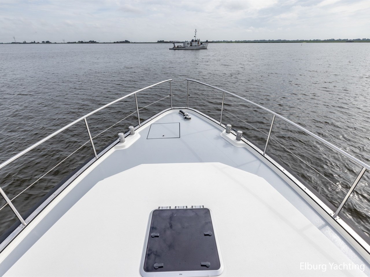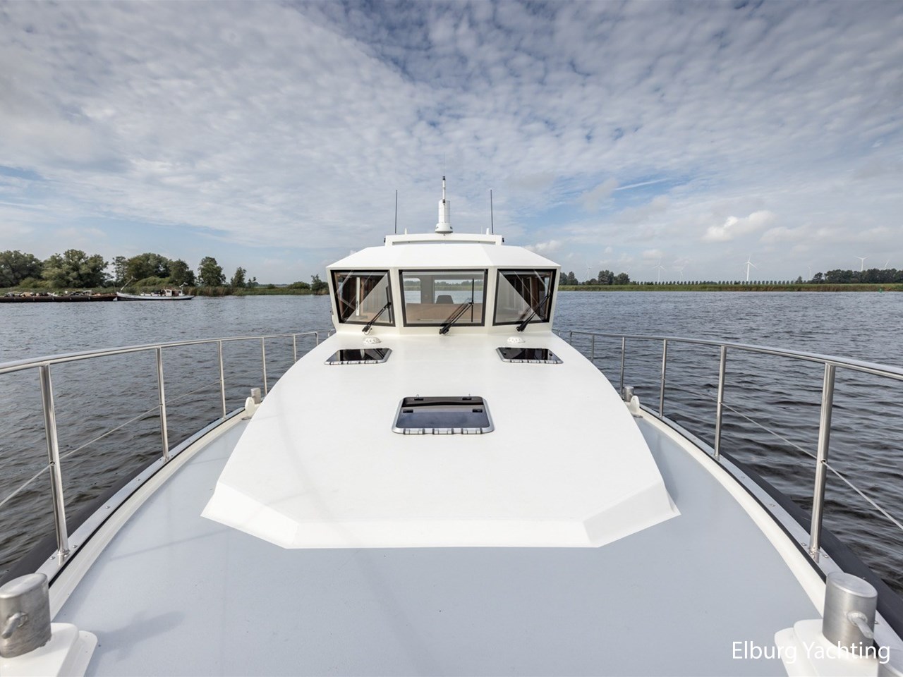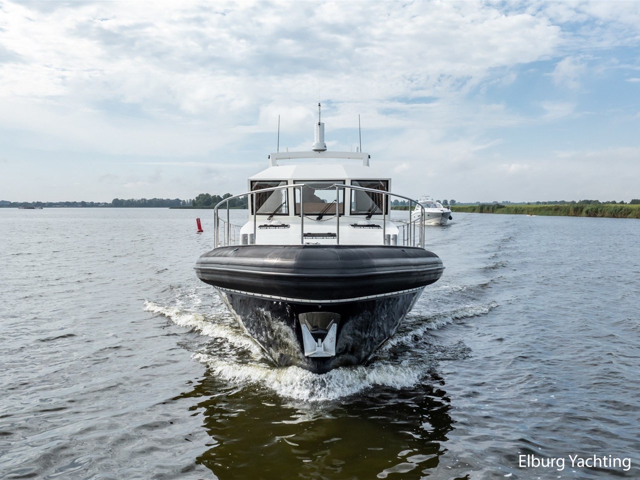Het schip is aantoonbaar goed onderhouden onder de huidige en tevens eerste eigenaar. De uitgebreide en professionele Simrad navigatiemiddelen, AIS-transponder en Simrad 4G radar zorgen voor een comfortabele tocht met hoge mate van veiligheid. De hoogwaardige 2 Component Polyurethaan blauwe romp coating is in goede staat samen met de rest van het schip. De Volvo Penta D6 dieselmotoren (elk 435 pk) drijven de in halve tunnels ingebouwde schroeven aan, wat zorgt voor minder kwetsbaarheid, betere bescherming en minder diepgang. De D-fenders rondom zorgen voor een nog grotere stabiliteit (=veiligheid) bij slecht weer. Veel bergruimte door talrijke kasten en lades door het gehele schip. Het schip is voorzien van: Ruime en verdiepte open kuip voor een beschutte zitting met vast zitbank incl. bijbehorende kussens, de kuip is voorzien van een overkapping met nacht/werk verlichting en te verlengen met een canvas zonnescherm, kuip met afgesloten (diepe) bakskisten, ruim bergluik in achterschip, klapbare spiegel te gebruiken als zwemplatform, entree stuurhuis/salon via achter- en zijdeur (SB), volledig zicht rondom vanaf stuurstand, luxe Norsapp stuurstoel, professioneel ingericht dashboard met hoogwaardige Simrad navigatie-instrumenten, Wifi boordnet via 4G, voor de co- pilot is er een in hoogte elektrisch verstelbare meevaar zitting aanwezig welke in ruststand tevens versteld kan worden naar een gezellige zit aan de borrel tafel, het interieur is voorzien van comfortabele vloerverwarming, luxaflex plisse´ zonwering, Samsung TV op lift in salon, Samsung TV in voorhut, groot schuifdak boven stuurstand, Bosch keukenapparatuur met een inductie kookplaat / magnetron oven / vaatwasmachine, muggenhorren, Samsung was/droogcombinatie, elektrisch gevoelige apparatuur ondergebracht “ technische ruimte”. In het vooronder is ruimte voor opslag van diversen zoals trossen en fenders maar ook de ankerketting. De machinekamer heeft een automatisch blussysteem & dubbele brandstoffilters. De radarbeugel is elektrisch klapbaar, evenals de spiegel die zowel in de kuip buiten als op het dashboard binnen elektrisch bedienbaar is. Een comfortabele vaarsnelheid voor binnenwateren ligt rondom de 6@7 knopen hierbij is het verbruik totaal ca. 10 liter p/uur. De maximale snelheid ligt op ca. 25 knopen. Een uitgebreidere verbruikstabel is verzoek beschikbaar. De doorvaarthoogte met geklapte beugel is ca. 3,60 meter en met beugel op ca. 6,20 meter.