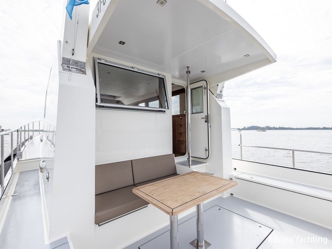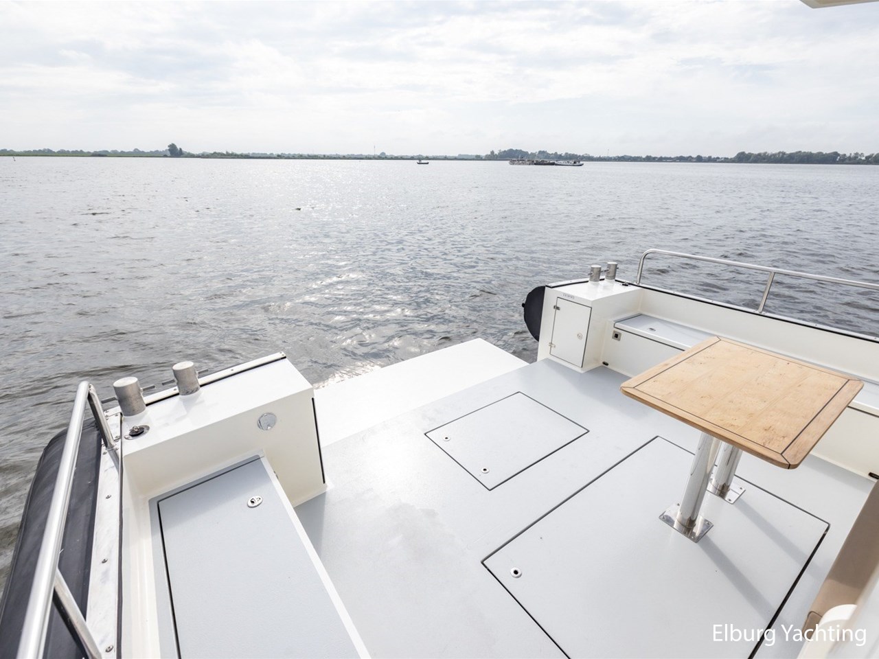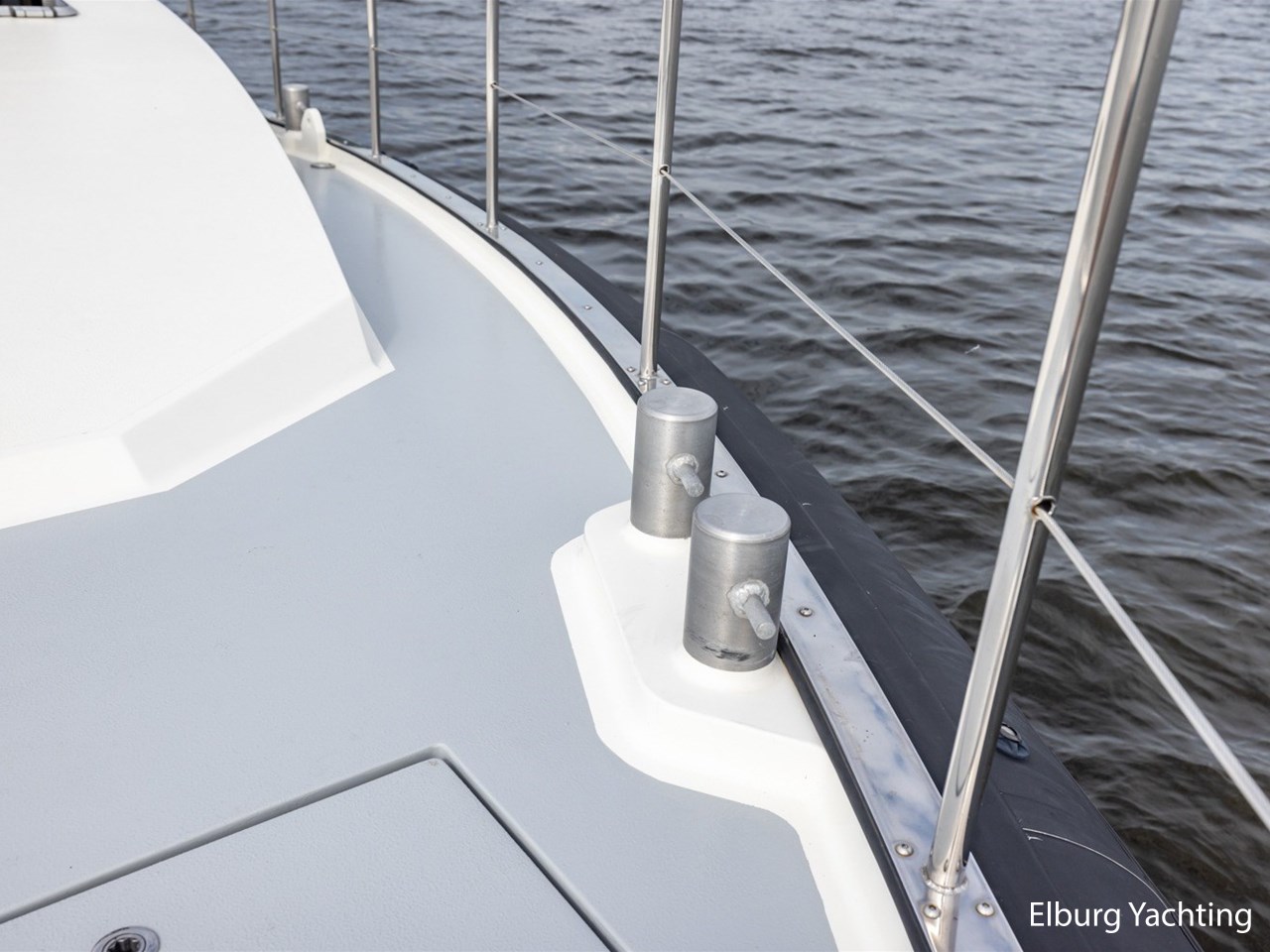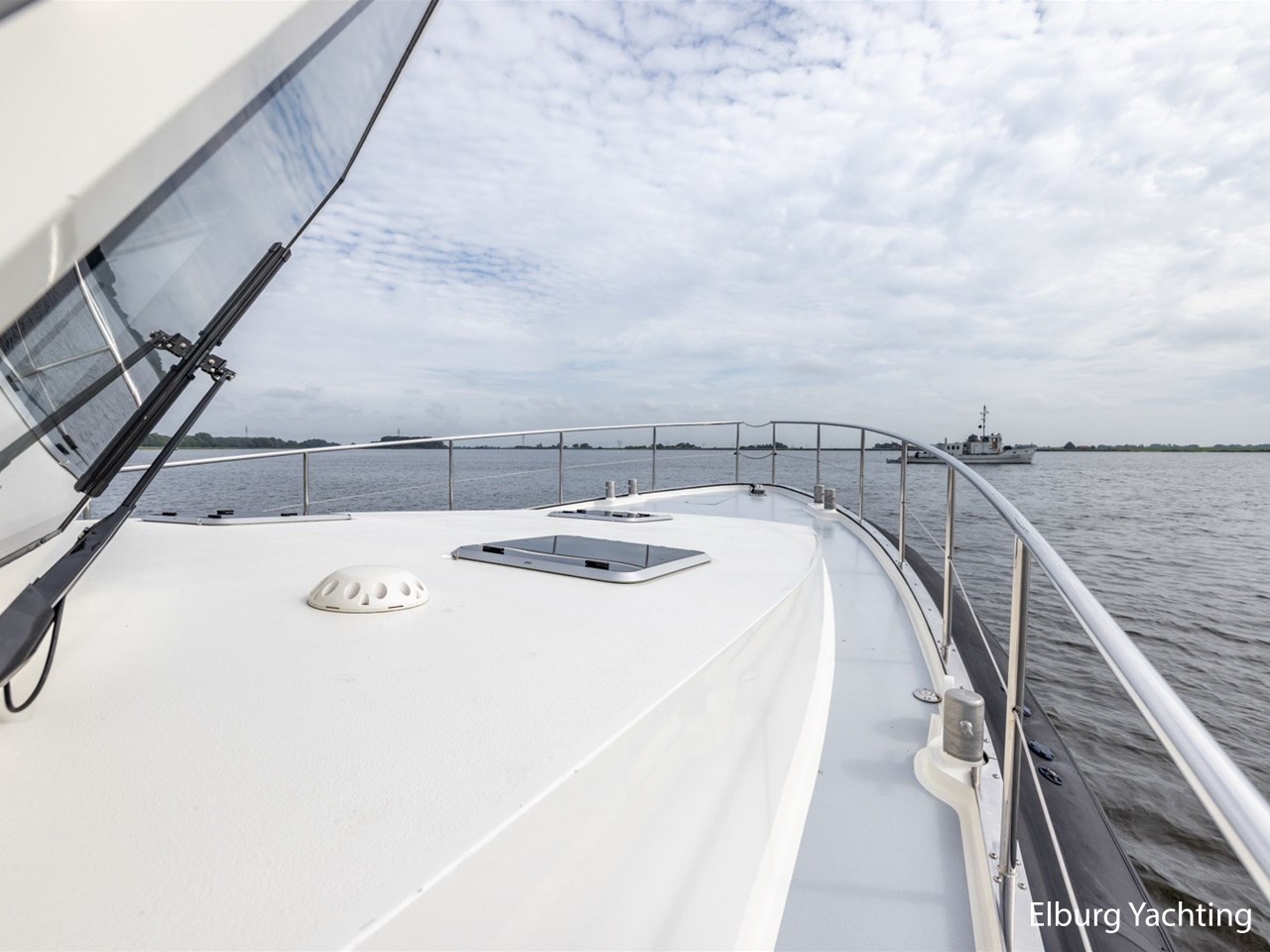 Het schip is aantoonbaar goed onderhouden onder de huidige en tevens eerste eigenaar. De uitgebreide en professionele Simrad navigatiemiddelen, AIS-transponder en Simrad 4G radar zorgen voor een comfortabele tocht met hoge mate van veiligheid. De hoogwaardige 2 Component Polyurethaan blauwe romp coating is in goede staat samen met de rest van het schip. De Volvo Penta D6 dieselmotoren (elk 435 pk) drijven de in halve tunnels ingebouwde schroeven aan, wat zorgt voor minder kwetsbaarheid, betere bescherming en minder diepgang. De D-fenders rondom zorgen voor een nog grotere stabiliteit (=veiligheid) bij slecht weer. Veel bergruimte door talrijke kasten en lades door het gehele schip. Het schip is voorzien van: Ruime en verdiepte open kuip voor een beschutte zitting met vast zitbank incl. bijbehorende kussens, de kuip is voorzien van een overkapping met nacht/werk verlichting en te verlengen met een canvas zonnescherm, kuip met afgesloten (diepe) bakskisten, ruim bergluik in achterschip, klapbare spiegel te gebruiken als zwemplatform, entree stuurhuis/salon via achter- en zijdeur (SB), volledig zicht rondom vanaf stuurstand, luxe Norsapp stuurstoel, professioneel ingericht dashboard met hoogwaardige Simrad navigatie-instrumenten, Wifi boordnet via 4G, voor de co- pilot is er een in hoogte elektrisch verstelbare meevaar zitting aanwezig welke in ruststand tevens versteld kan worden naar een gezellige zit aan de borrel tafel, het interieur is voorzien van comfortabele vloerverwarming, luxaflex plisse´ zonwering, Samsung TV op lift in salon, Samsung TV in voorhut, groot schuifdak boven stuurstand, Bosch keukenapparatuur met een inductie kookplaat / magnetron oven / vaatwasmachine, muggenhorren, Samsung was/droogcombinatie, elektrisch gevoelige apparatuur ondergebracht “ technische ruimte”. In het vooronder is ruimte voor opslag van diversen zoals trossen en fenders maar ook de ankerketting. De machinekamer heeft een automatisch blussysteem & dubbele brandstoffilters. De radarbeugel is elektrisch klapbaar, evenals de spiegel die zowel in de kuip buiten als op het dashboard binnen elektrisch bedienbaar is. Een comfortabele vaarsnelheid voor binnenwateren ligt rondom de 6@7 knopen hierbij is het verbruik totaal ca. 10 liter p/uur. De maximale snelheid ligt op ca. 25 knopen. Een uitgebreidere verbruikstabel is verzoek beschikbaar. De doorvaarthoogte met geklapte beugel is ca. 3,60 meter en met beugel op ca. 6,20 meter.