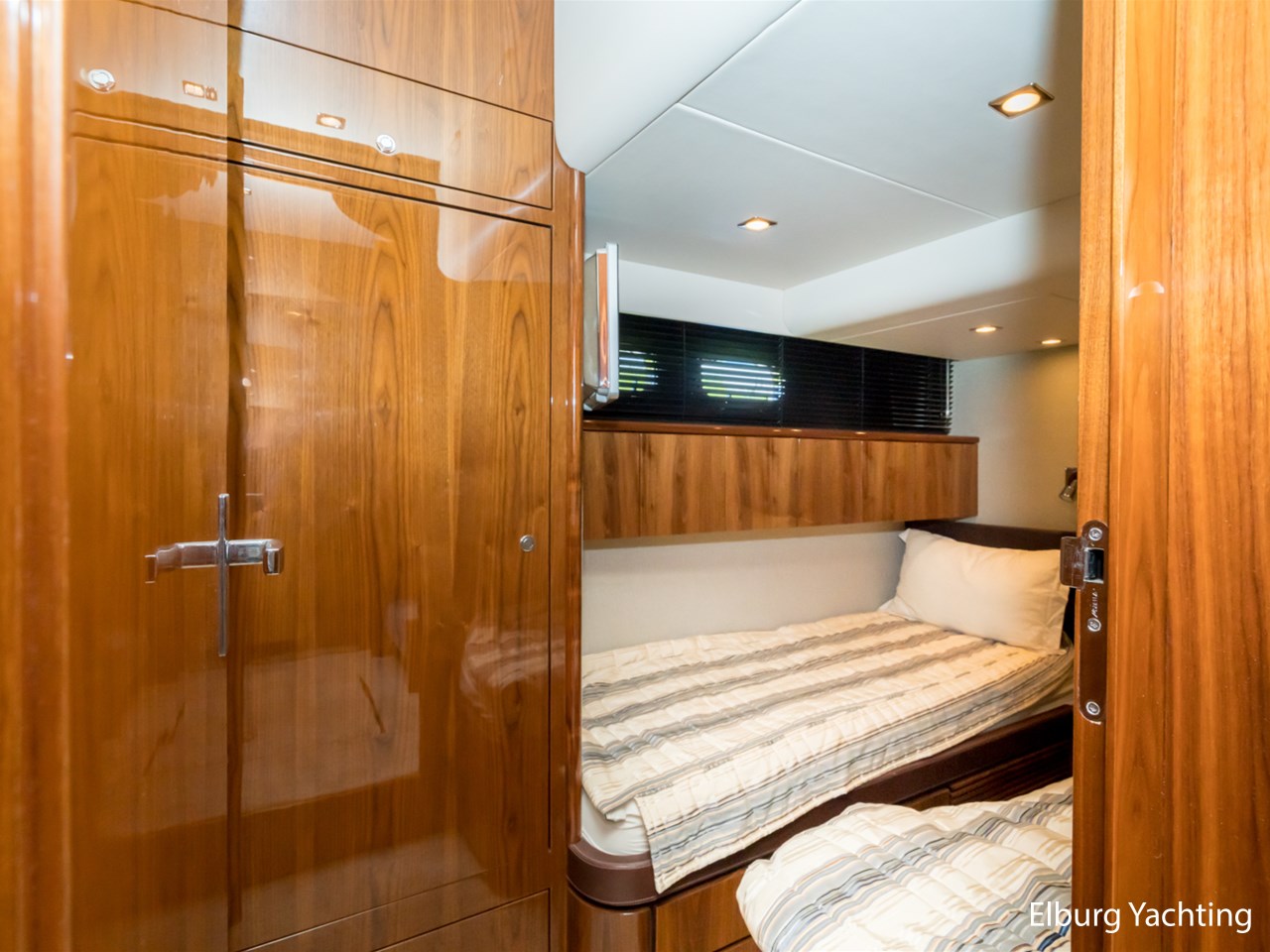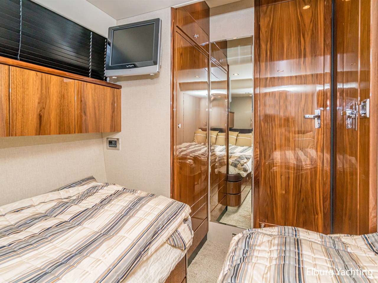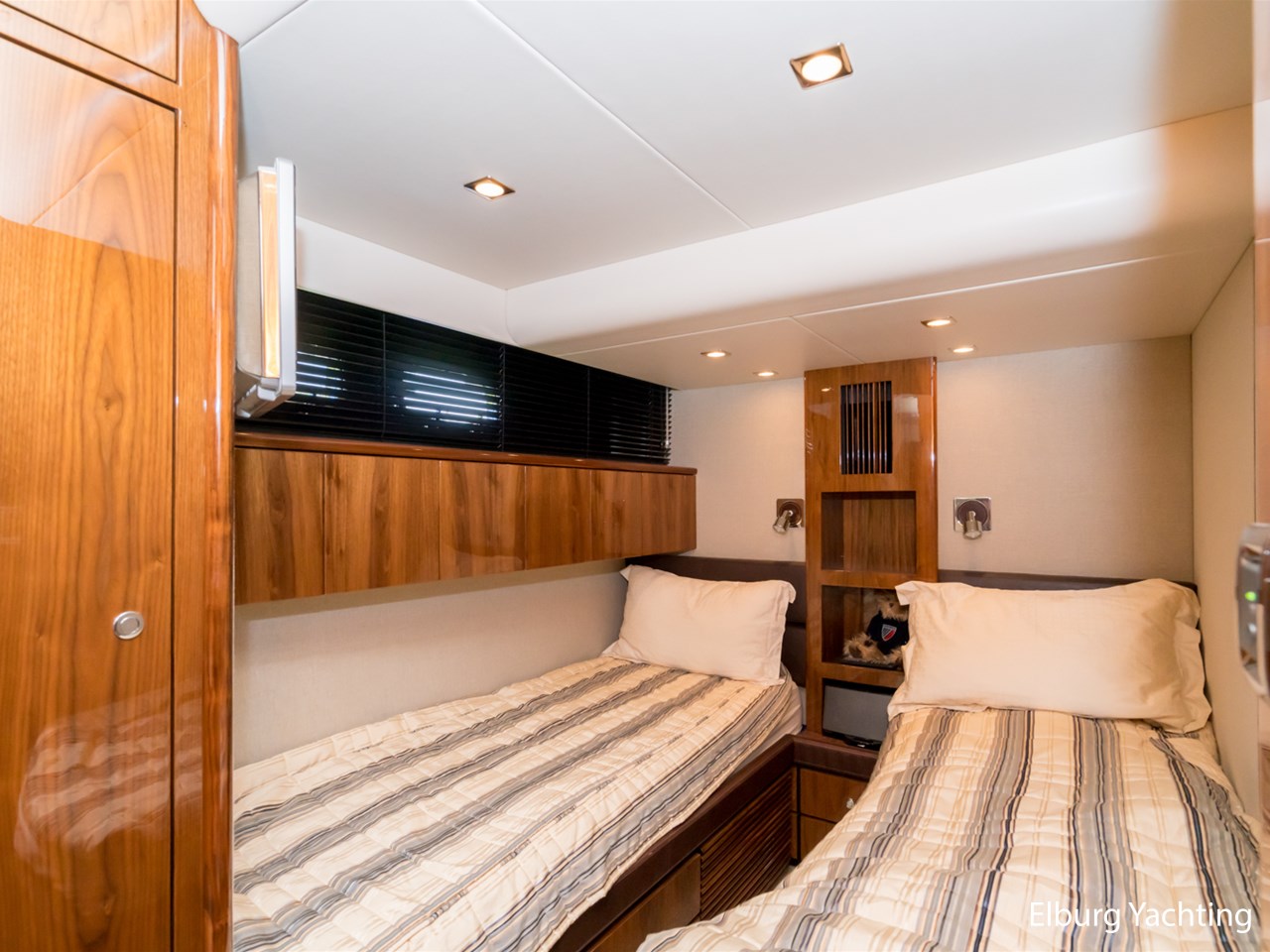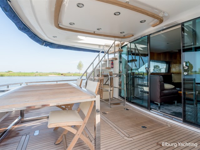 Achterdek, salon, dinette, kombuis en stuurstand gelijkvloers. 2 x stuurstoel + 1 x meervaarbank, ruim overdekt achterdek met vaste bank en tafel, veel r.v.s. afwerkingsdetails o.a. reling, trapleuning, schuifpui, fenderhouders, 2 x dinette op de flybridge, buitenkeuken met De Dietrich kookplaat, veel opbergruimte buiten, ruim zonnedek op voordek, SB+BB tankmogelijkheid, Owner cabin midscheeps incl. ramen welke te openen zijn, veel kastruimte binnen, Corian topbladen, Hans Grohe kranen type Axor, alle douchecabins afgewerkt met teak + zitvlak, sfeer en dimverlichting dor gehele schip, r.v.s. luie trap naar volledig ingerichte ruime flybridge, nieuwe afdekzeilen buiten, volledige winterkleed steven tot spiegel, achterdek volledig afsluitbaar met nieuw tentdoek, nieuwe van Besouw vloerbedekking in de salon, centraal stofzuiginstallatie door gehele schip, nieuwe buitenkussens, B&O TV + geluidsinstallatie, Bose boxen in de slaapkamers, veel kastruimte door gehele schip., geen charterboot geweest maar altijd privé jacht, 2 x elektrische zijdeuren, ronde r.v.s. schuifpui naar achterdek, entree machinekamer via zwemplateau en/of 2 x via achterdek, biminitop over flybridge, Lewmar elektrische kaapstanders, r.v.s. ankerketting, MCmurdo ICS Nav 6 Navtex, verstelbaar stuur voor vaarpositie, FLIR infrarood camerasysteem, CAT motor management systeem, vier raamblowers (warm+koud), 3 x 2 armige ruitenwissers + wasinstallatie, afdekzonnekleed over vaarraam, Miele vaatmachine, anti-rammelsloten, 2 x vluchtluik voorzijde, centraal brandblusinstallatie, elektrische Benzenzoni Passerelle, schip is voorzien van een vaste water aansluiting via de wal, hydraulisch Trim Tab + control systeem, Truevision kvh, CVO keur vanaf 2021, navigatie dubbel uitgevoerd ( binnen + flybridge), Zanussi wasdroogmachine, 2 x PTO pomp, 2 x Glendinning Cable Masters inrolsysteem voor walstroomkabels, Opacmare kraan op de flybridge, Elektrisch bedienbare deur achterdek met flybridge, Lithium battery package, motorstart in machinekamer, beide motoren hebben volledige service beurt gehad incl. ontkalken. Bouwjaar van het jacht is 2010, echter is het jacht in 2011 geleverd. Voor vragen en/of het maken van een afspraak bent u 7 dagen per week van harte welkom bij Elburg Yachting.