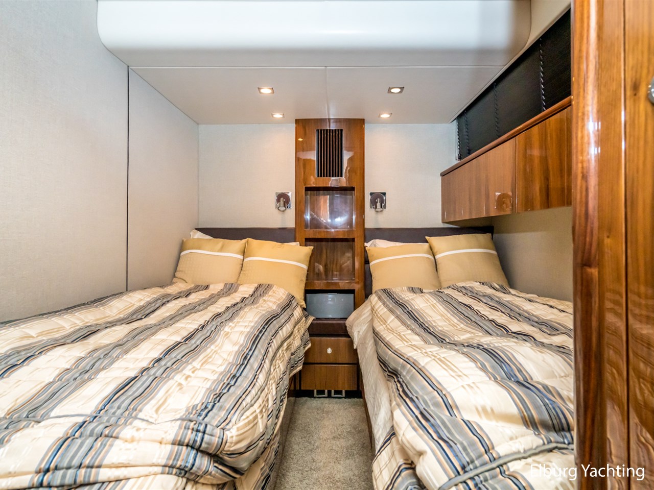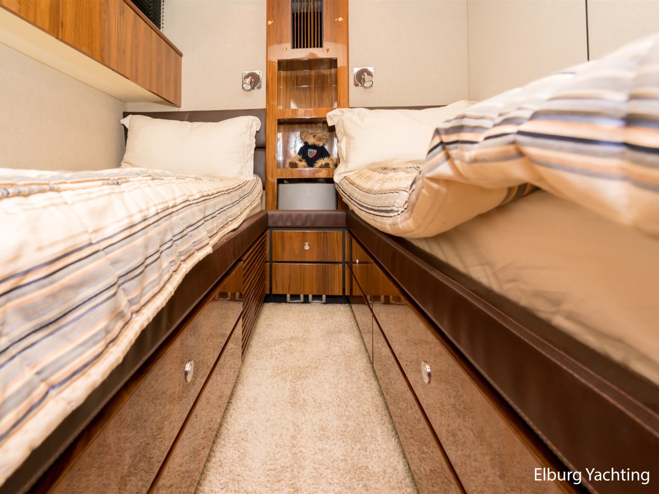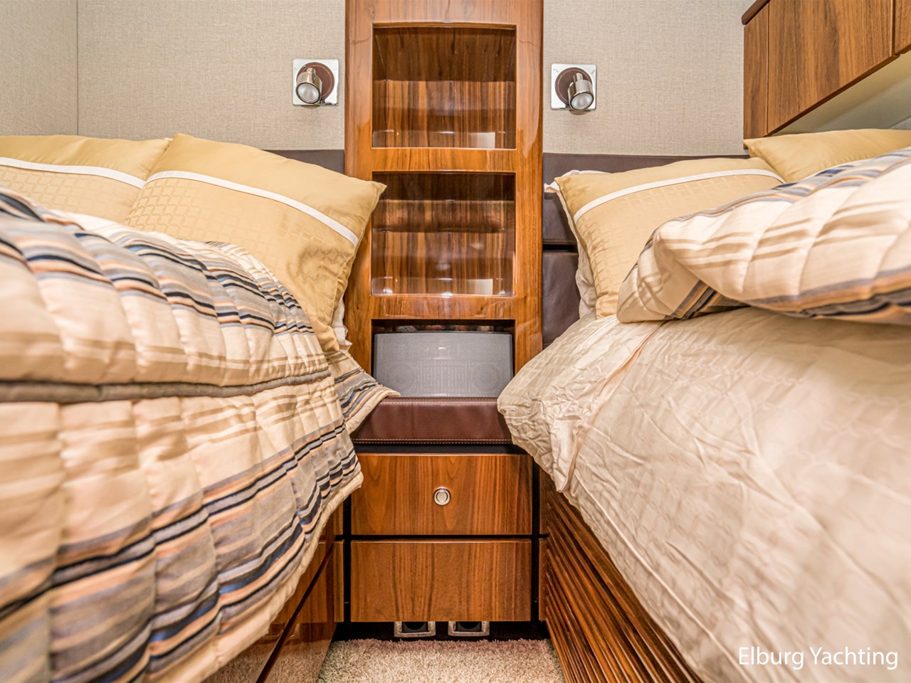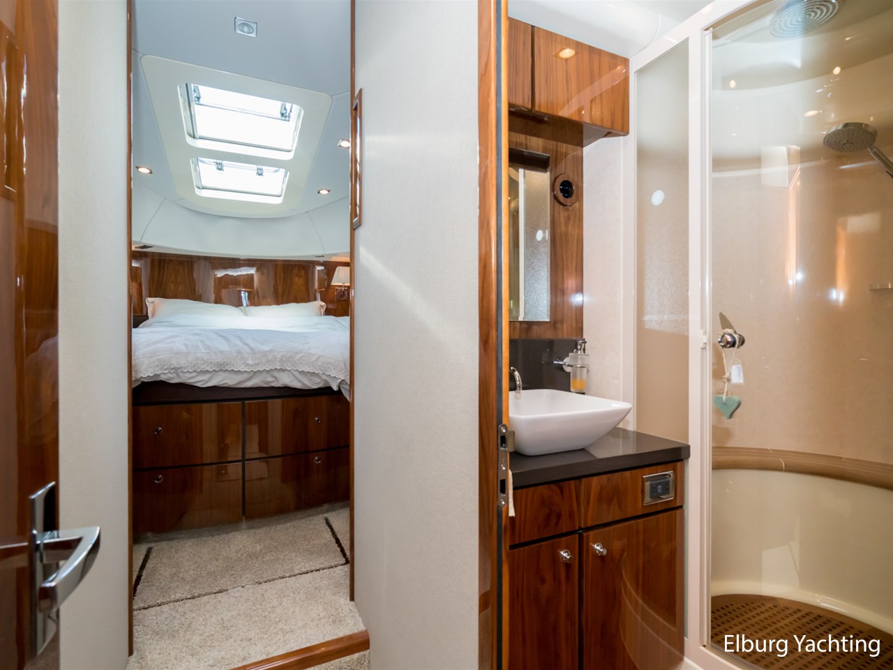 Achterdek, salon, dinette, kombuis en stuurstand gelijkvloers. 2 x stuurstoel + 1 x meervaarbank, ruim overdekt achterdek met vaste bank en tafel, veel r.v.s. afwerkingsdetails o.a. reling, trapleuning, schuifpui, fenderhouders, 2 x dinette op de flybridge, buitenkeuken met De Dietrich kookplaat, veel opbergruimte buiten, ruim zonnedek op voordek, SB+BB tankmogelijkheid, Owner cabin midscheeps incl. ramen welke te openen zijn, veel kastruimte binnen, Corian topbladen, Hans Grohe kranen type Axor, alle douchecabins afgewerkt met teak + zitvlak, sfeer en dimverlichting dor gehele schip, r.v.s. luie trap naar volledig ingerichte ruime flybridge, nieuwe afdekzeilen buiten, volledige winterkleed steven tot spiegel, achterdek volledig afsluitbaar met nieuw tentdoek, nieuwe van Besouw vloerbedekking in de salon, centraal stofzuiginstallatie door gehele schip, nieuwe buitenkussens, B&O TV + geluidsinstallatie, Bose boxen in de slaapkamers, veel kastruimte door gehele schip., geen charterboot geweest maar altijd privé jacht, 2 x elektrische zijdeuren, ronde r.v.s. schuifpui naar achterdek, entree machinekamer via zwemplateau en/of 2 x via achterdek, biminitop over flybridge, Lewmar elektrische kaapstanders, r.v.s. ankerketting, MCmurdo ICS Nav 6 Navtex, verstelbaar stuur voor vaarpositie, FLIR infrarood camerasysteem, CAT motor management systeem, vier raamblowers (warm+koud), 3 x 2 armige ruitenwissers + wasinstallatie, afdekzonnekleed over vaarraam, Miele vaatmachine, anti-rammelsloten, 2 x vluchtluik voorzijde, centraal brandblusinstallatie, elektrische Benzenzoni Passerelle, schip is voorzien van een vaste water aansluiting via de wal, hydraulisch Trim Tab + control systeem, Truevision kvh, CVO keur vanaf 2021, navigatie dubbel uitgevoerd ( binnen + flybridge), Zanussi wasdroogmachine, 2 x PTO pomp, 2 x Glendinning Cable Masters inrolsysteem voor walstroomkabels, Opacmare kraan op de flybridge, Elektrisch bedienbare deur achterdek met flybridge, Lithium battery package, motorstart in machinekamer, beide motoren hebben volledige service beurt gehad incl. ontkalken. Bouwjaar van het jacht is 2010, echter is het jacht in 2011 geleverd. Voor vragen en/of het maken van een afspraak bent u 7 dagen per week van harte welkom bij Elburg Yachting.