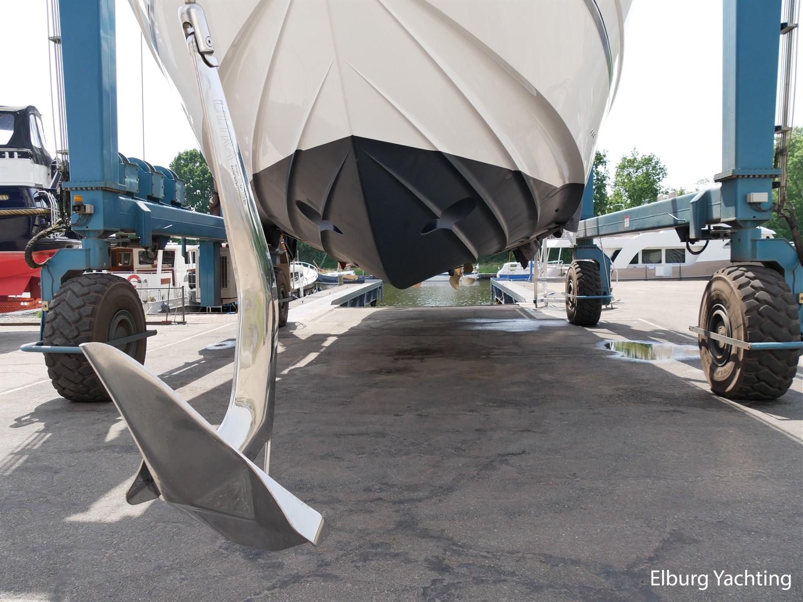 Opacmare kraan op flybridge + tender lift platform
