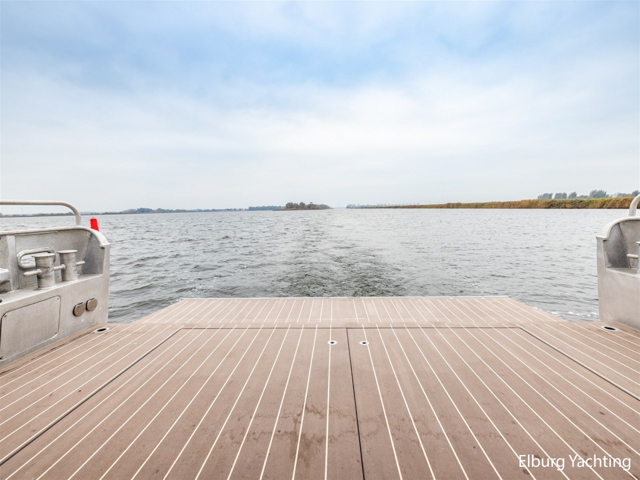 Het jacht wat u ter inspiratie kunt bezichtigen beschikt over : Achterdek en salon gelijkvloers, zij-ingang, elektrisch schuifdak bij stuurhut ( ca. 1.10 x 1.80 m, zij-ingang in reling, grote openslaande deuren naar de kuip om de salon en buitendek, dekdouche met warm/koud water bij zwemplateau, ruime leefomgeving in salon, buiten verlichting op tredes , Garmin navigatiepakket, 2 x 16" scherm, CTCV Camerasysteem voor achterdek en machinekamer, Dockmate - 2 motoren en boegschroef, Humphree interscepter set (4 x) met roll en pitch demping software + carbon vinnen, 4 x zonnepanelen op het achterdak, Fusion radio + 2 x speakers salon en 2 x cockpit (iPhone compatible), Miele was-droogcombinatie. Siemens vaatwasser, Ocean Air horren in eigenaar hut bij dekluik, shades/gordijnen in salon, lederen bekleding van de dashboardunit, elektrische lift voor vaarstoel- en passagiersstoel voor optimaal zicht, Lampe Gras zwarte design lampen, Frost zwarte douche armaturen, elektrische lift voor eettafel om te transformeren naar salon/lounge tafel, Kvadrat bekleding, geïntegreerde aluminium bolders, aluminium tredeplaat in voorroef, Aluminium geïntegreerde trap naar dak op bovenbouw, machinekamer akoestisch geïsoleerd, 3 x ruitenwissers met sproeisysteem. Lewmar dekluiken, Marlan tops, douche en toilet gescheiden voor gastenhut, Prebit leeslampjes, met USB aansluiting en dimbaar, Prebit plafondlampen dimbaar in rood/wit, Flatscreen 43" TV + lift, verborgen in salon rugleuning. In exclusieve samenwerking met Yachtfull International.