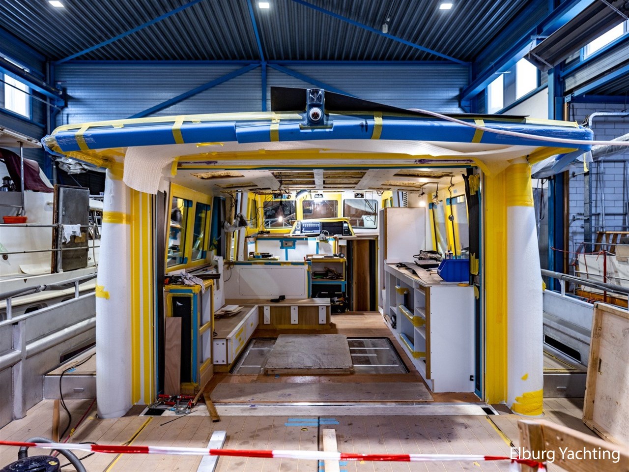 - Dubbel glas Thermopane in vast stuurhuis, elektrisch schuifdak bij stuurhut ( ca. 1.10 x 1.80 m