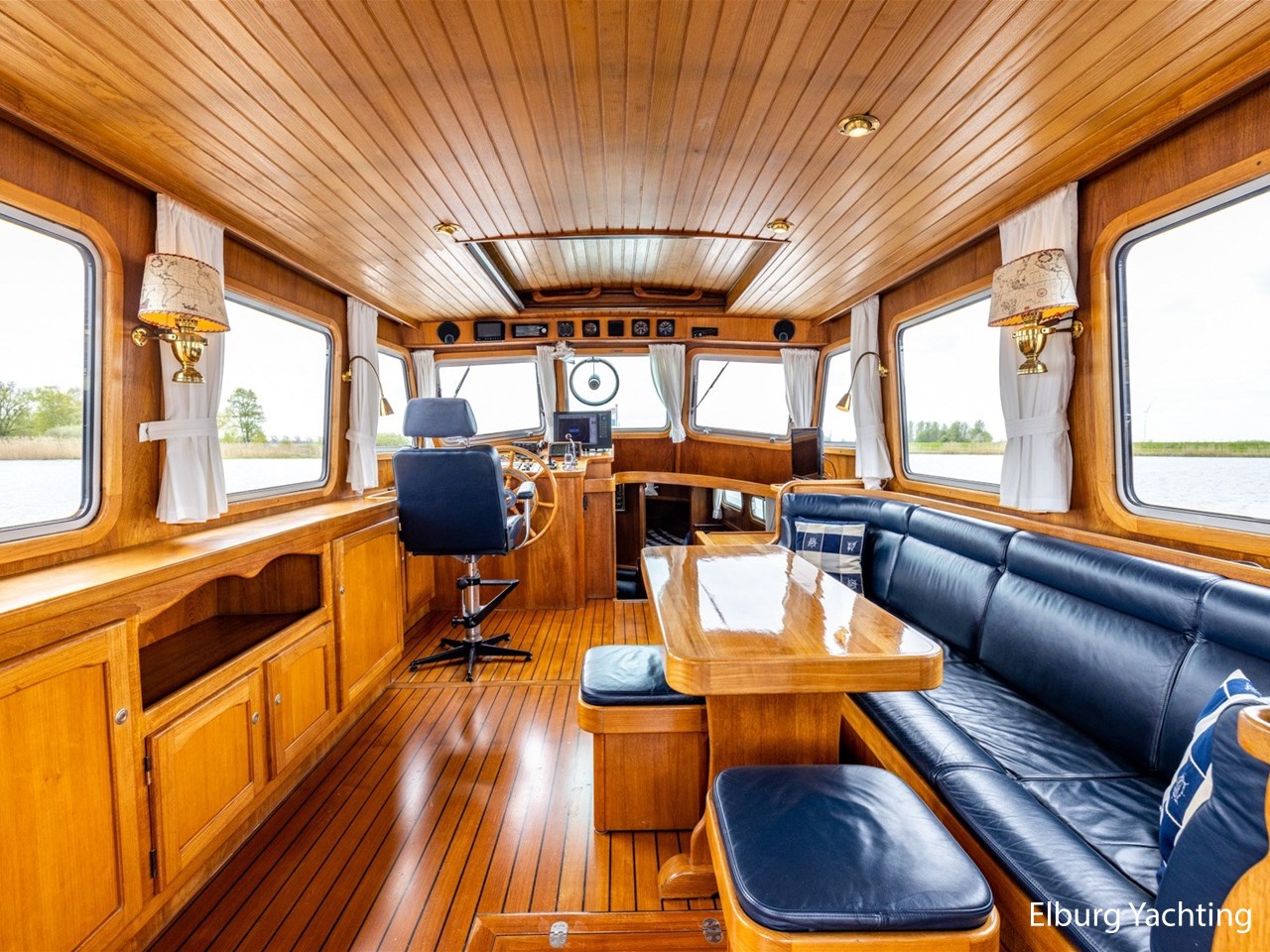 Authentiek en zwaar gebouwde Gillissen Rondspant Trawler met een klassieke uitstraling. Deze unieke Gillissen laat zich kenmerken door een professionele machinekamer, grote open kuip en een eigenaarshut midscheeps over de volledige breedte van het schip. Verder wordt dit schip geleverd met o.a: ruime salon met rondom zicht naar buiten, slingerruit, Miele novotronic WT 946was-/droogcombinatie, r.v.s. davits, mogelijkheid tot droogvallen, dubbele spoelbak in keuken, veel bergruimte door het gehele schip, traanplaat in machinekamer, automatische brandblusinstallatie in machinekamer (2019), gelakte houten railing, zwarte kunststof stootrand in r.v.s. eindhouders, 4 x openslaande deuren voor een open gevoel tussen salon en kuip, uitritsbare tent over de gehele kuip en achterhut (2019), camera aan achter zijde en aan stuurboord zijde, LED verlichting, teak banken met bergruimte in kuip, separate ingang naar machinekamer vanaf kuip of achterhut, dekwasinstallatie met separate hydrofoor, beunkoeling, hydraulisch strijkbare mast, romp in 2018 geschilderd, opbouw in 2017 geschilderd. Het schip heeft in 2002 een refit ondergaan bij Balk in Elburg en is daarna goed gedocumenteerd gebleven qua onderhoud. Voor vragen en/of het maken van een afspraak bent u 7 dagen per week van harte welkom bij Elburg Yachting.