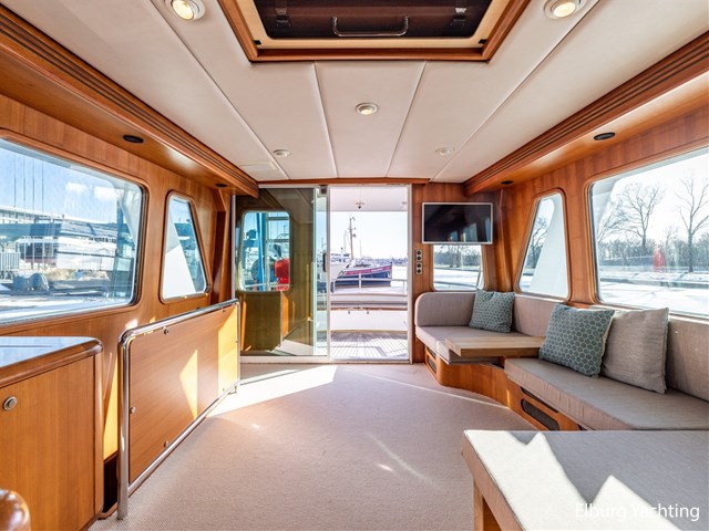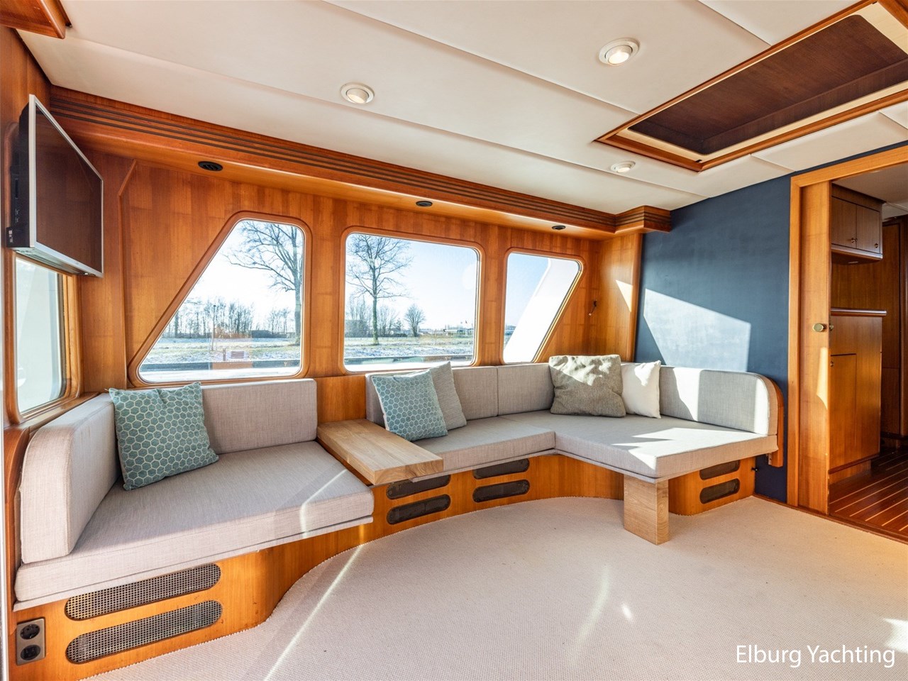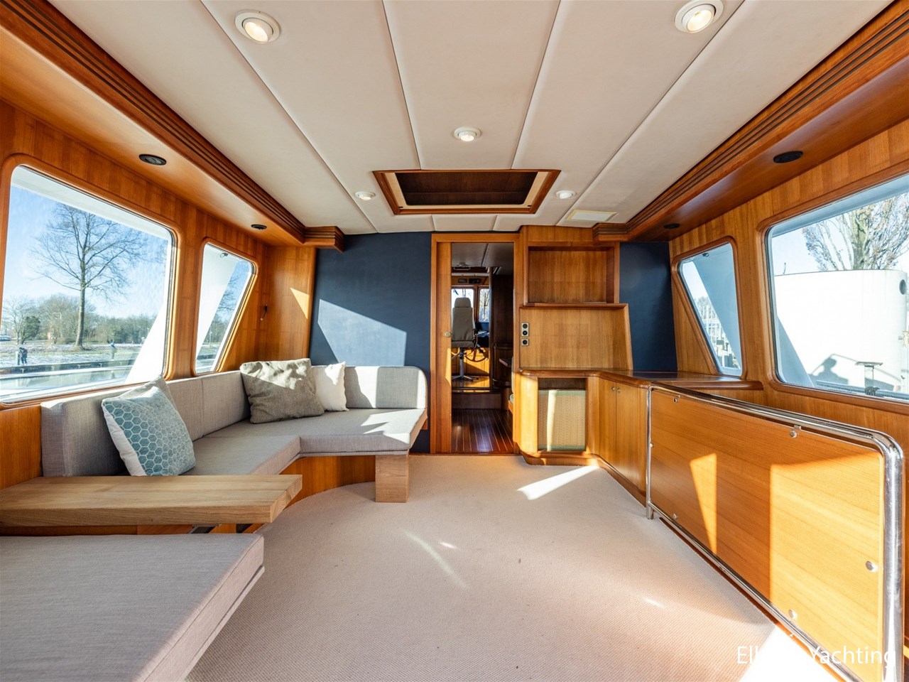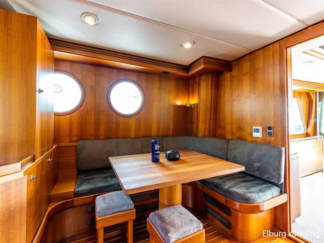 Zwaar gebouwde rondspant trawler motorjacht gebouwd door Porsius Shipyard met het ontwerp van Olivier van Meer. Dit jacht is zeer zeewaardig ontworpen mede door haar hoge verschansing, diepe rondspant stalen casco, hydraulische vin stabilisatoren en professionele techniek aan boord. Afhankelijk van de vaarsnelheid en omstandigheden is een vaarbereik van ca. 3.000 tot ca. 5.500NM haalbaar. In de afgelopen twee jaar zijn er aan boord vele vernieuwingen doorgevoerd waaronder: Kabola KB45 kachel, reddingsvlot, Yachtcontrol yachtmanagement in combinatie met Garmin navigatiesysteem, Garmin radar, camerasysteem voor zicht op SB & BB zijde / machinekamer en achteruitzicht, vloerbedekking, lakwerk vernieuwd aan de binnenzijde verschansing, lijfhouten en deel teakdek vernieuwd, teakdek op zwemplateau vernieuwd, motoronderhoud uitgevoerd, voorhut omgebouwd tot walk-in closet + 1 pers. bed dit is ook weer om te bouwen tot zijn originele hut met 4 x 1 pers. slaapplaats, nieuwe ruitenwisserarmen met wisserbladen. De salonlounge is in januari 2024 omgebouwd tot salonbank.