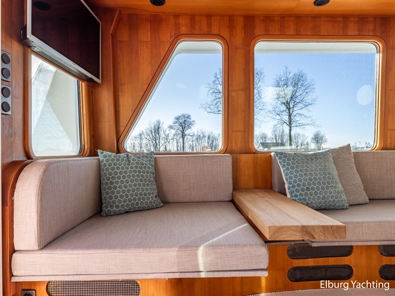 Deze Porsius 1900 Trawler is uitgevoerd met: Salon / kombuis en stuurstand gelijkvloers, flybridge voor opslag bijboot en te gebruiken als extra zitruimte, 2 x zij-deur met knevels in stuurhuis + 1 x achteringang, vaste zitbank op achterdek inclusief bijbehorende kussens, luxe eigenaarshut met vrijstaand bed in achterhut met eigen toegang via salon, overdekte en rondom lopende gangboorden, overdekt achterdek, professionele machinekamer met stahoogte en voorzien van goede isolatie, luxe stuurstoel, extra opbergkast in stuurhuis voor jassen en toegang tot elektrisch paneel, 2 x open schuifdak (1 x stuurhut, 1 x salon), volledige LED verlichting door het gehele schip, TV in salon (2022), WiFi module aan boord voor mobiel internet, Miele vaatwasmachine (2019), Miele was-droogmachine, 2 x elektrische Lofrans kaapstanders op het achterdek, verwarmingsradiator in machinekamer, aluminium klapbare radarmast waarmee een min. doorvaarthoogte kan worden verkregen van ca. 4,25m, zonneschermen rondom stuurhuis, muggenhorren voor patrijspoorten, mangaten in tanks, romp en opbouw geïsoleerd, oliebad schroefassen incl. touwsnijder, Cramm hydraulisch systeem voor boegschroef/autopilot/anker lier/stabilisatoren, Racor diesel filters, trimsysteem voor 4 x watertanks, dekwas, extra diepe bergruimte in achterschip, afneembare gangway, Victron Quattro omvormer / acculader / walstroomtrafo / Victron display - vernieuwd in 2019. Dit jacht is voorzien van een zeebrief registratie en is zeer uitgebreid gedocumenteerd. Dit jacht is vaarklaar voor prachtige toekomstige reisavonturen.