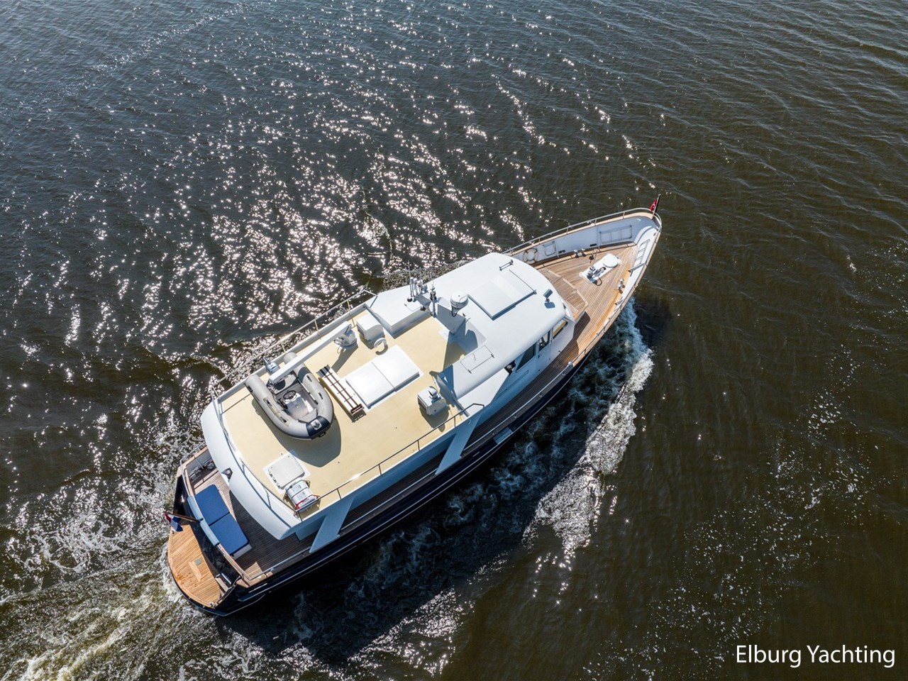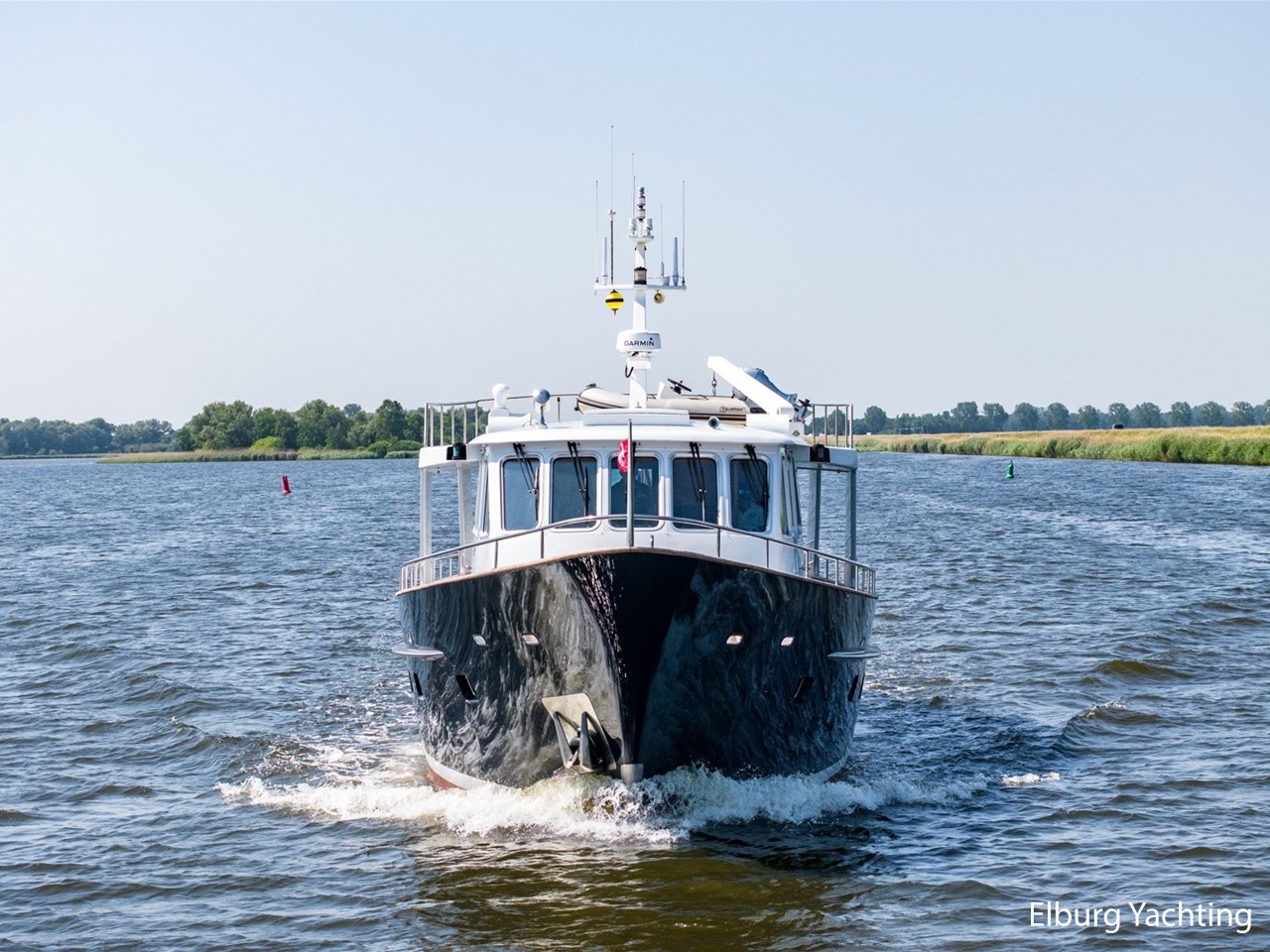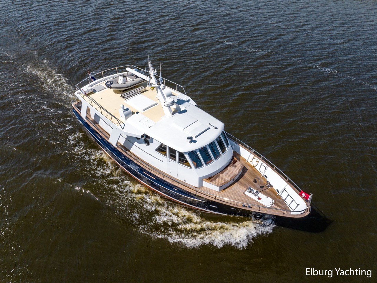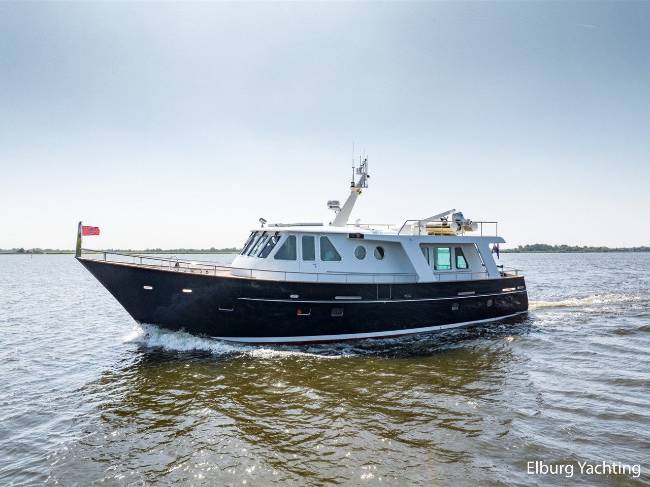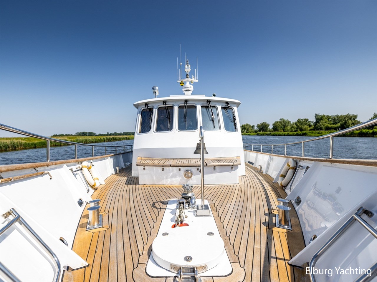 Zwaar gebouwde rondspant trawler motorjacht gebouwd door Porsius Shipyard met het ontwerp van Olivier van Meer. Dit jacht is zeer zeewaardig ontworpen mede door haar hoge verschansing, diepe rondspant stalen casco, hydraulische vin stabilisatoren en professionele techniek aan boord. Afhankelijk van de vaarsnelheid en omstandigheden is een vaarbereik van ca. 3.000 tot ca. 5.500NM haalbaar. In de afgelopen twee jaar zijn er aan boord vele vernieuwingen doorgevoerd waaronder: Kabola KB45 kachel, reddingsvlot, Yachtcontrol yachtmanagement in combinatie met Garmin navigatiesysteem, Garmin radar, camerasysteem voor zicht op SB & BB zijde / machinekamer en achteruitzicht, vloerbedekking, lakwerk vernieuwd aan de binnenzijde verschansing, lijfhouten en deel teakdek vernieuwd, teakdek op zwemplateau vernieuwd, motoronderhoud uitgevoerd, voorhut omgebouwd tot walk-in closet + 1 pers. bed dit is ook weer om te bouwen tot zijn originele hut met 4 x 1 pers. slaapplaats, nieuwe ruitenwisserarmen met wisserbladen. De salonlounge is in januari 2024 omgebouwd tot salonbank.