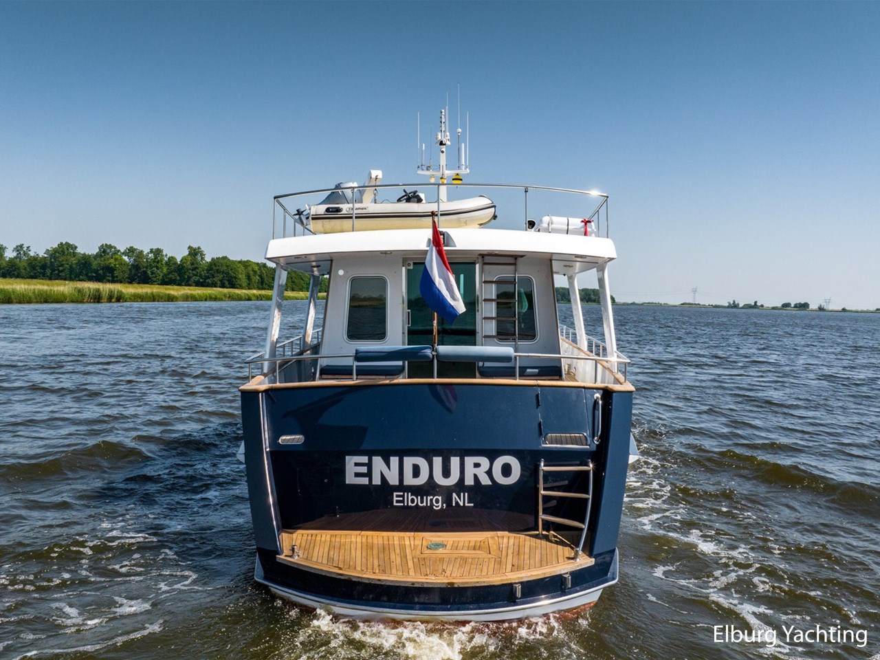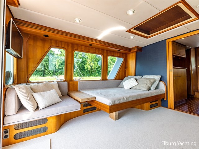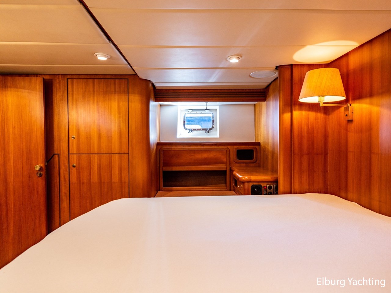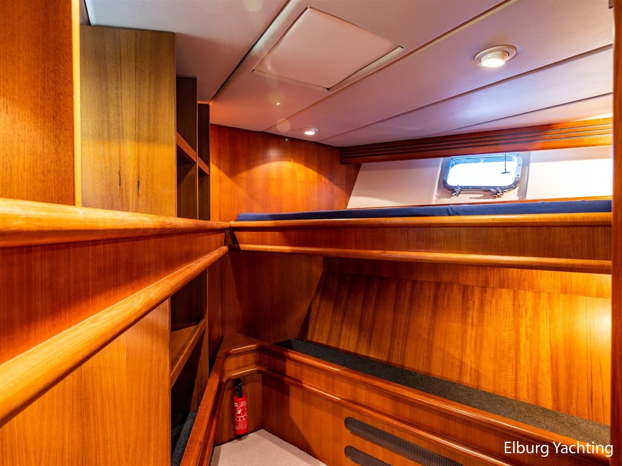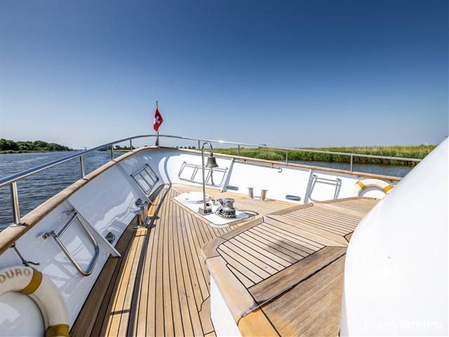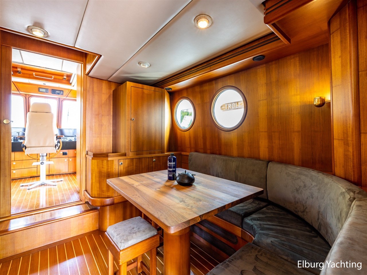 Zwaar gebouwde rondspant trawler motorjacht gebouwd door Porsius Shipyard met het ontwerp van Olivier van Meer. Dit jacht is zeer zeewaardig ontworpen mede door haar hoge verschansing, diepe rondspant stalen casco, hydraulische vin stabilisatoren en professionele techniek aan boord. Afhankelijk van de vaarsnelheid en omstandigheden is een vaarbereik van ca. 3.000 tot ca. 5.500NM haalbaar. In de afgelopen twee jaar zijn er aan boord vele vernieuwingen doorgevoerd waaronder: Kabola KB45 kachel, reddingsvlot, Yachtcontrol yachtmanagement in combinatie met Garmin navigatiesysteem, Garmin radar, camerasysteem voor zicht op SB & BB zijde / machinekamer en achteruitzicht, vloerbedekking, lakwerk vernieuwd aan de binnenzijde verschansing, lijfhouten en deel teakdek vernieuwd, teakdek op zwemplateau vernieuwd, motoronderhoud uitgevoerd, voorhut omgebouwd tot walk-in closet + 1 pers. bed dit is ook weer om te bouwen tot zijn originele hut met 4 x 1 pers. slaapplaats, nieuwe ruitenwisserarmen met wisserbladen. De salonlounge is in januari 2024 omgebouwd tot salonbank.