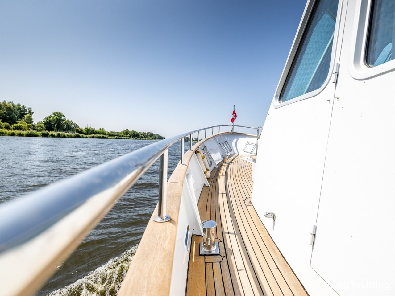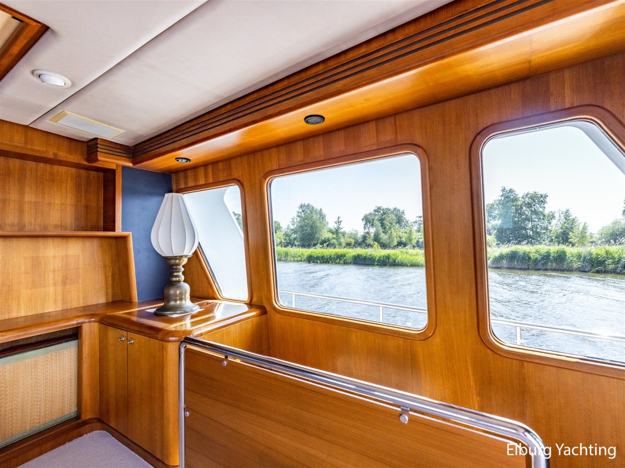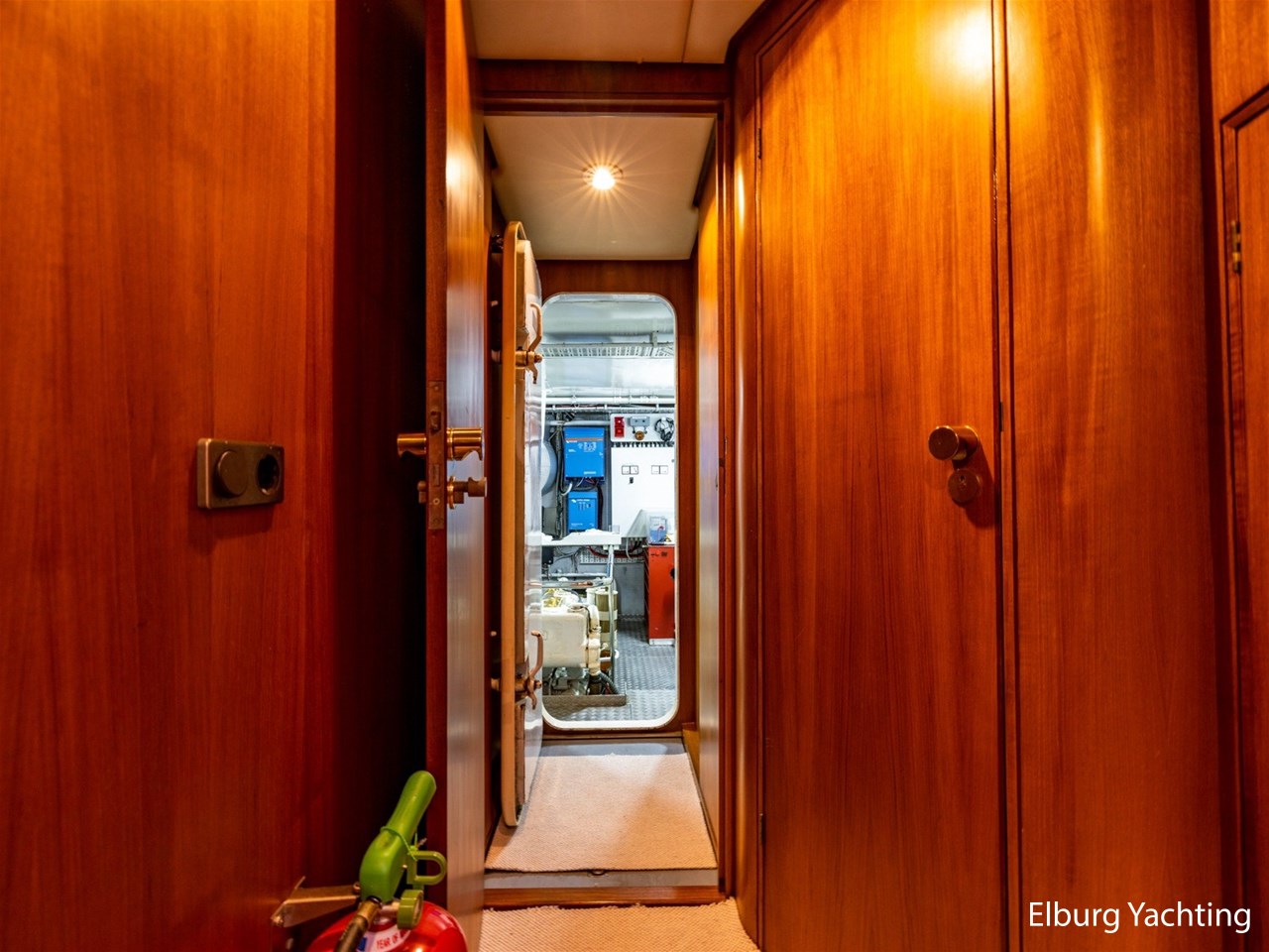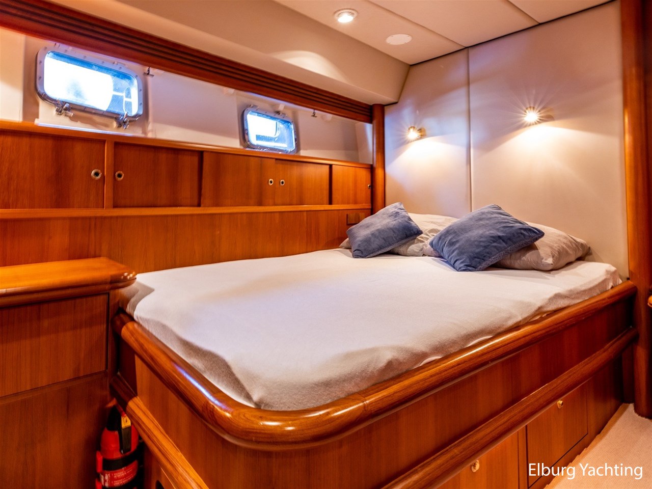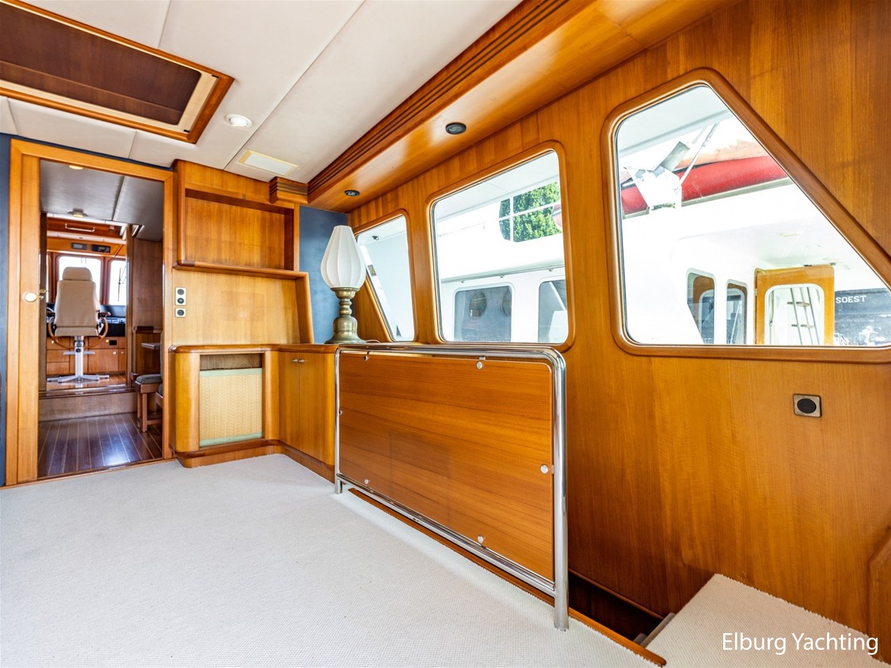 Zwaar gebouwde rondspant trawler motorjacht gebouwd door Porsius Shipyard met het ontwerp van Olivier van Meer. Dit jacht is zeer zeewaardig ontworpen mede door haar hoge verschansing, diepe rondspant stalen casco, hydraulische vin stabilisatoren en professionele techniek aan boord. Afhankelijk van de vaarsnelheid en omstandigheden is een vaarbereik van ca. 3.000 tot ca. 5.500NM haalbaar. In de afgelopen twee jaar zijn er aan boord vele vernieuwingen doorgevoerd waaronder: Kabola KB45 kachel, reddingsvlot, Yachtcontrol yachtmanagement in combinatie met Garmin navigatiesysteem, Garmin radar, camerasysteem voor zicht op SB & BB zijde / machinekamer en achteruitzicht, vloerbedekking, lakwerk vernieuwd aan de binnenzijde verschansing, lijfhouten en deel teakdek vernieuwd, teakdek op zwemplateau vernieuwd, motoronderhoud uitgevoerd, voorhut omgebouwd tot walk-in closet + 1 pers. bed dit is ook weer om te bouwen tot zijn originele hut met 4 x 1 pers. slaapplaats, nieuwe ruitenwisserarmen met wisserbladen. De salonlounge is in januari 2024 omgebouwd tot salonbank.