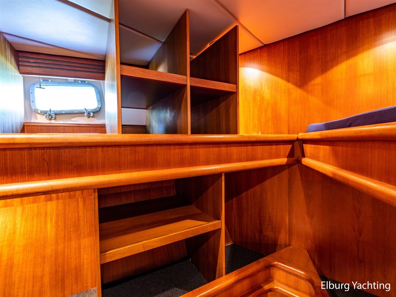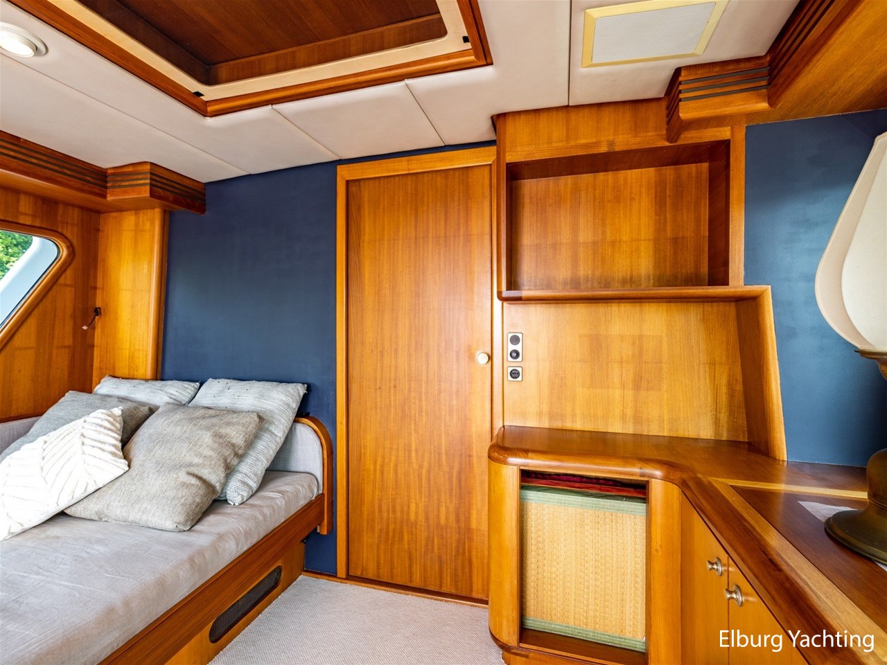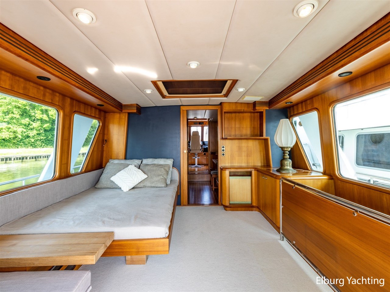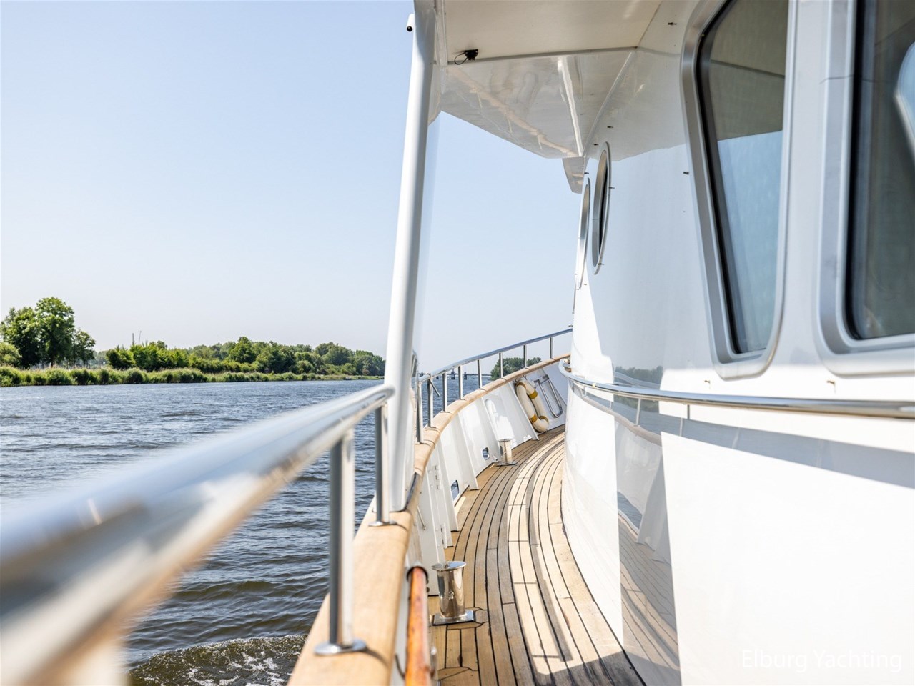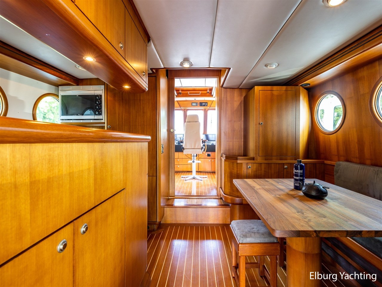 Zwaar gebouwde rondspant trawler motorjacht gebouwd door Porsius Shipyard met het ontwerp van Olivier van Meer. Dit jacht is zeer zeewaardig ontworpen mede door haar hoge verschansing, diepe rondspant stalen casco, hydraulische vin stabilisatoren en professionele techniek aan boord. Afhankelijk van de vaarsnelheid en omstandigheden is een vaarbereik van ca. 3.000 tot ca. 5.500NM haalbaar. In de afgelopen twee jaar zijn er aan boord vele vernieuwingen doorgevoerd waaronder: Kabola KB45 kachel, reddingsvlot, Yachtcontrol yachtmanagement in combinatie met Garmin navigatiesysteem, Garmin radar, camerasysteem voor zicht op SB & BB zijde / machinekamer en achteruitzicht, vloerbedekking, lakwerk vernieuwd aan de binnenzijde verschansing, lijfhouten en deel teakdek vernieuwd, teakdek op zwemplateau vernieuwd, motoronderhoud uitgevoerd, voorhut omgebouwd tot walk-in closet + 1 pers. bed dit is ook weer om te bouwen tot zijn originele hut met 4 x 1 pers. slaapplaats, nieuwe ruitenwisserarmen met wisserbladen. De salonlounge is in januari 2024 omgebouwd tot salonbank.