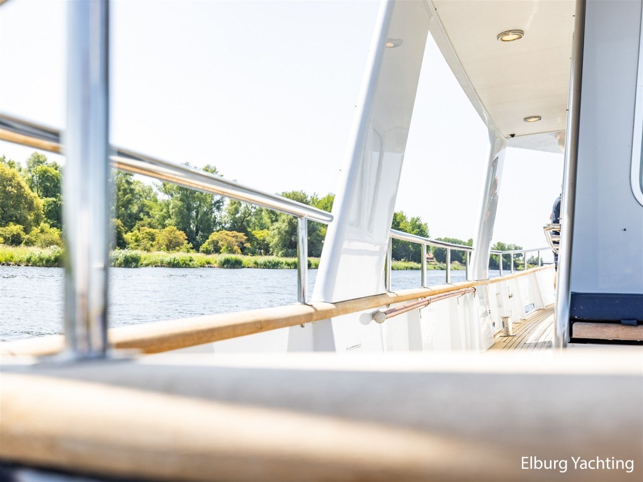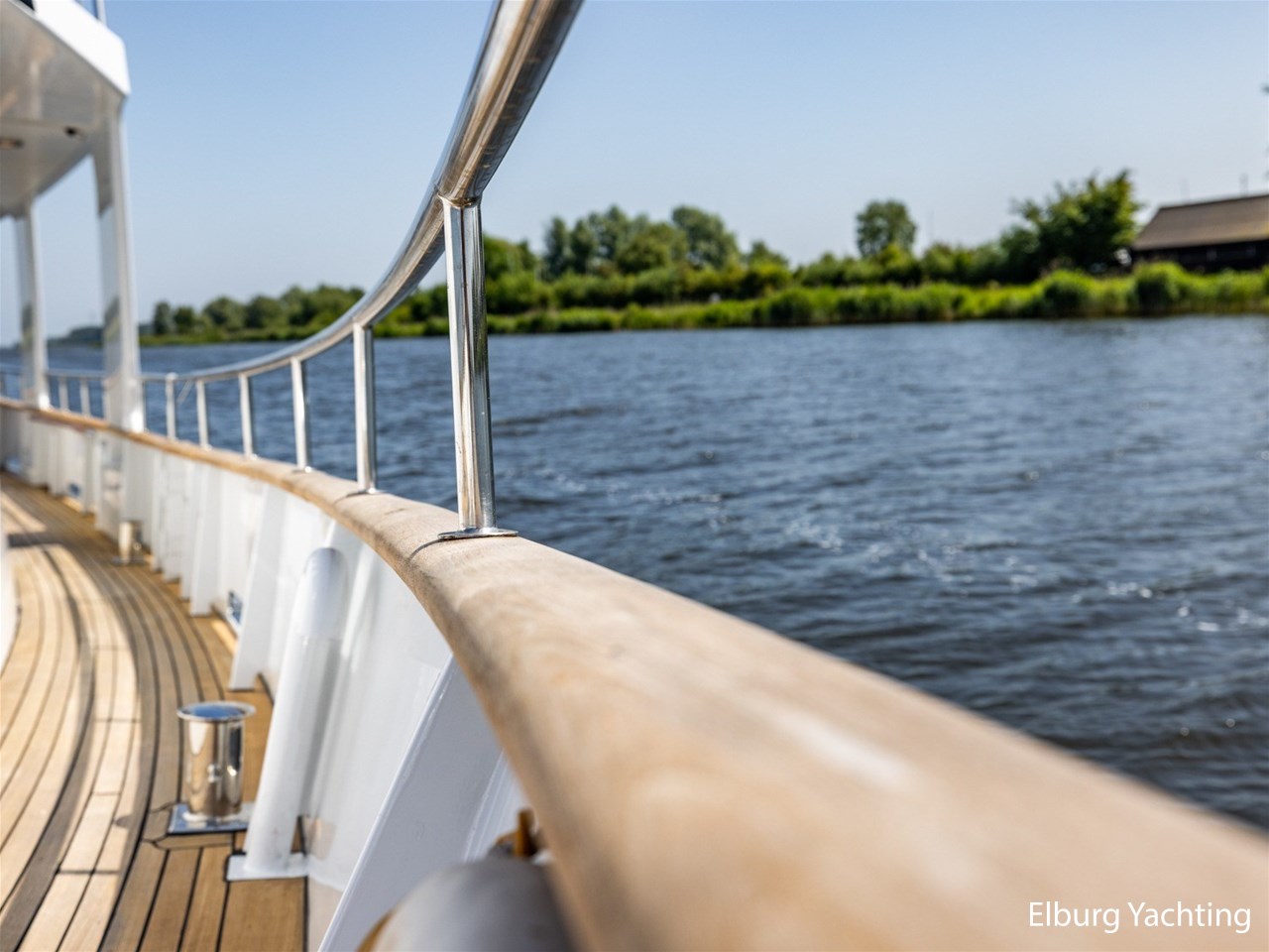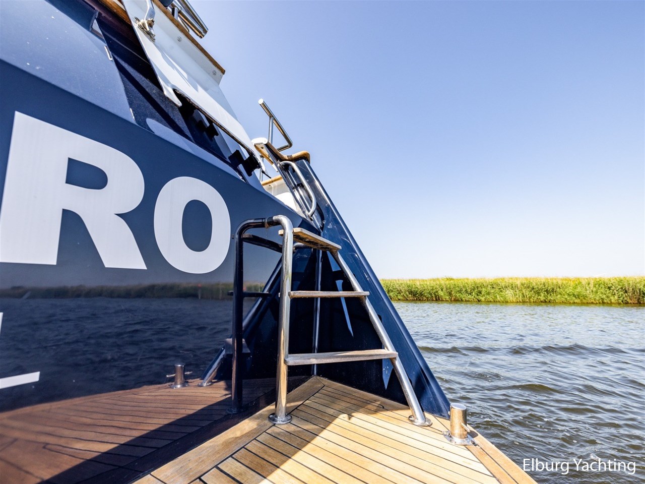 - Geïntegreerd met teakdek, vaste trap naar achterdek