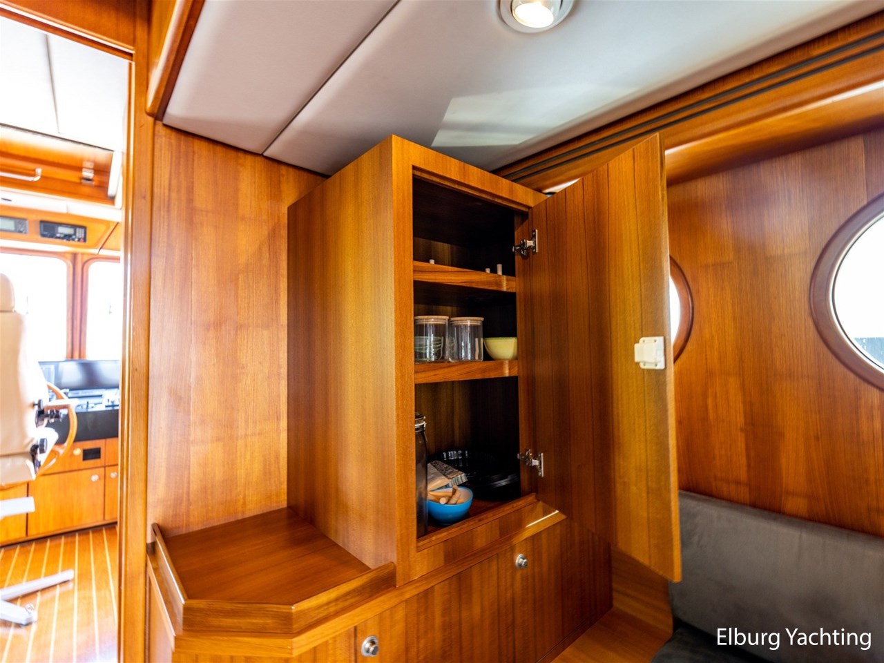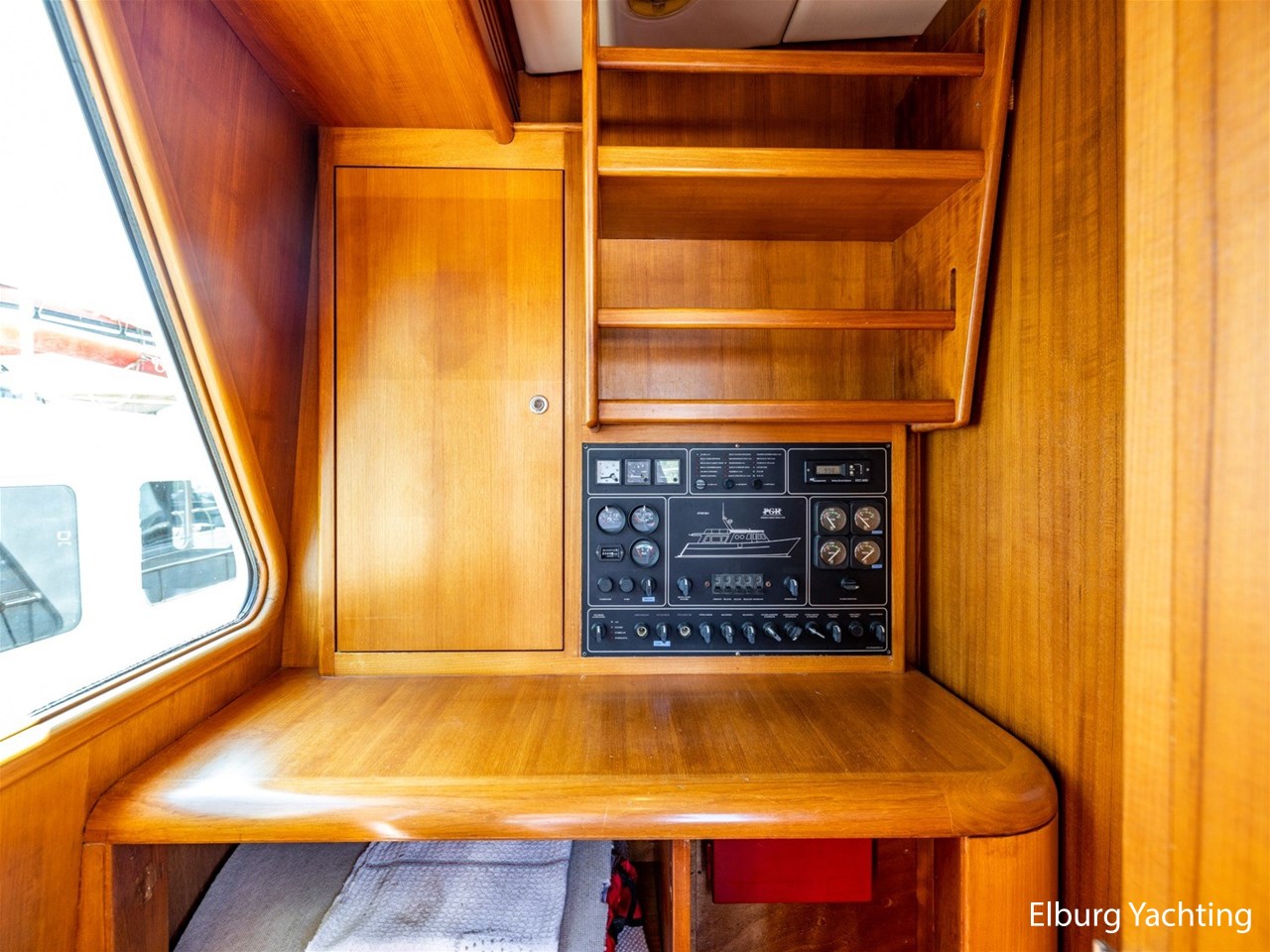 Deze Porsius 1900 Trawler is uitgevoerd met: Salon / kombuis en stuurstand gelijkvloers, flybridge voor opslag bijboot en te gebruiken als extra zitruimte, 2 x zij-deur met knevels in stuurhuis + 1 x achteringang, vaste zitbank op achterdek inclusief bijbehorende kussens, luxe eigenaarshut met vrijstaand bed in achterhut met eigen toegang via salon, overdekte en rondom lopende gangboorden, overdekt achterdek, professionele machinekamer met stahoogte en voorzien van goede isolatie, luxe stuurstoel, extra opbergkast in stuurhuis voor jassen en toegang tot elektrisch paneel, 2 x open schuifdak (1 x stuurhut, 1 x salon), volledige LED verlichting door het gehele schip, TV in salon (2022), WiFi module aan boord voor mobiel internet, Miele vaatwasmachine (2019), Miele was-droogmachine, 2 x elektrische Lofrans kaapstanders op het achterdek, verwarmingsradiator in machinekamer, aluminium klapbare radarmast waarmee een min. doorvaarthoogte kan worden verkregen van ca. 4,25m, zonneschermen rondom stuurhuis, muggenhorren voor patrijspoorten, mangaten in tanks, romp en opbouw geïsoleerd, oliebad schroefassen incl. touwsnijder, Cramm hydraulisch systeem voor boegschroef/autopilot/anker lier/stabilisatoren, Racor diesel filters, trimsysteem voor 4 x watertanks, dekwas, extra diepe bergruimte in achterschip, afneembare gangway, Victron Quattro omvormer / acculader / walstroomtrafo / Victron display - vernieuwd in 2019. Dit jacht is voorzien van een zeebrief registratie en is zeer uitgebreid gedocumenteerd. Dit jacht is vaarklaar voor prachtige toekomstige reisavonturen.