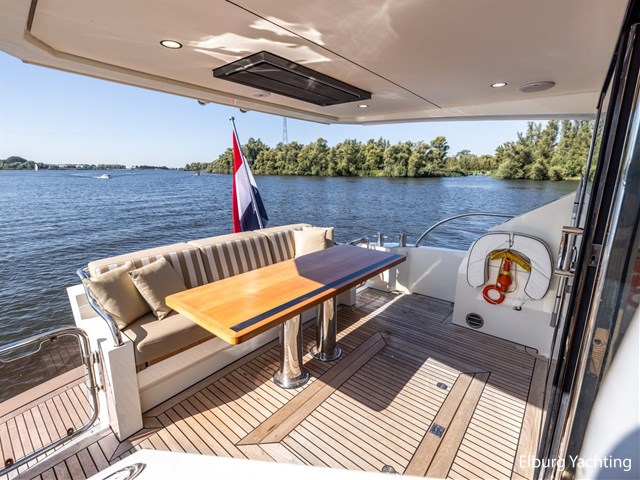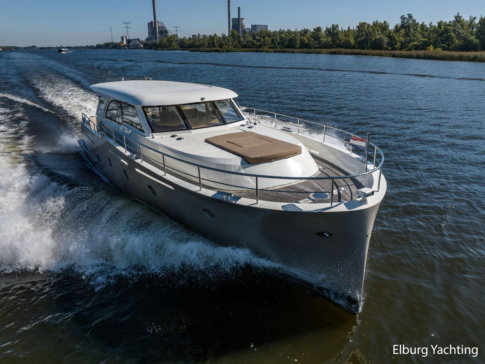 De Altena 52 - Aluminium Fast Going is een snelvarend aluminium motorjacht ontworpen door Theo Werner, gebouwd door de gerenommeerde Nederlandse scheepswerf Altena. De kuip, salon en het stuurhuis zijn gelijkvloers en staan in open verbinding met elkaar. De r.v.s. schuifpui zorgt voor toegang naar de ruime leefsalon. Benedendeks biedt dit jacht een slaapplaats voor vijf opvarenden, verdeeld in een tweepersoons frans bed in de voorhut / 2 x 1 persoons bed mid-scheeps aan SB zijde / 1 persoons bed mid-scheeps aan BB zijde. Alle hutten beschikken over een eigen douche en toilet ruimte. In de vloer van de openkuip heb je toegang tot een ruime berging en het hart van de elektrische installaties. Een watervaste deur vanuit de ruime berging geeft toegang tot de machinekamer. Uniek zijn de twee geïntegreerde zijtrappen (SB+BB) die op steigerhoogte kunnen worden afgesteld voor het gemakkelijk op en afstappen. Het jacht is o.a. voorzien van verlichting en een verwarmingselement in plafond over achterdek, de kuip is volledig af te sluiten met een afneembare tent, vele r.v.s. details aan dek, 2 x spiegeldeur naar zwemplateau, zonnebed op voordek met afneembare kussens, bergruimte in voorpiek voor fenders en lijnen, veel licht inval en goed zicht rondom door het grote raamoppervlakte, waardoor u kunt genieten van het ultieme gevoel op het water. Verder is zij voorzien van elektrisch bedienbare plissé gordijnen, TV op lift, Volvo Penta dockingstation, AIS, 2 x elektrisch bedienbare telescopische spudpalen (voor + achter) waarmee aanmeren kinderspel wordt en de mooiste ankerlocaties bereikbaar zijn, ruime berging in vloer bij kombuis, tanks met mangaten, professioneel ingerichte machinekamer met goede toegankelijkheid tot de techniek, doorvaarthoogte ca. 3,45m.