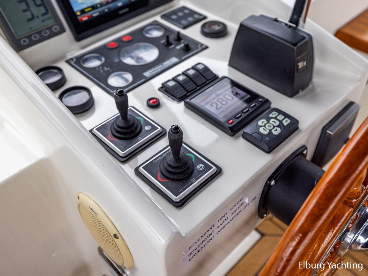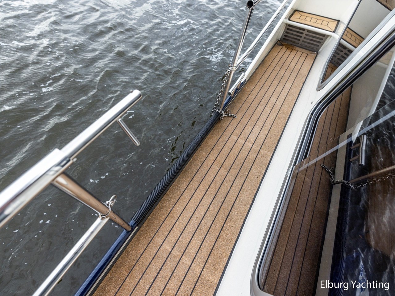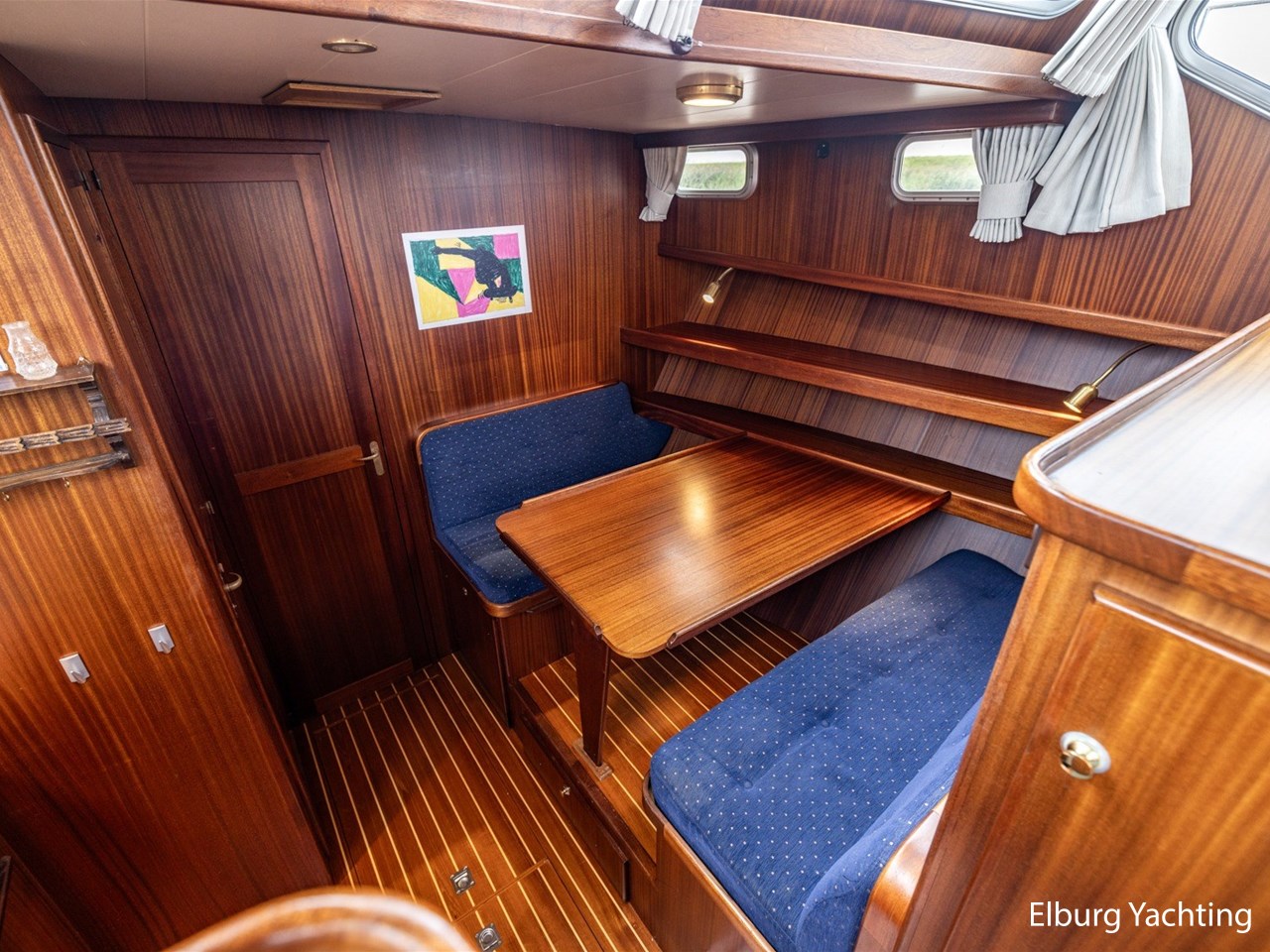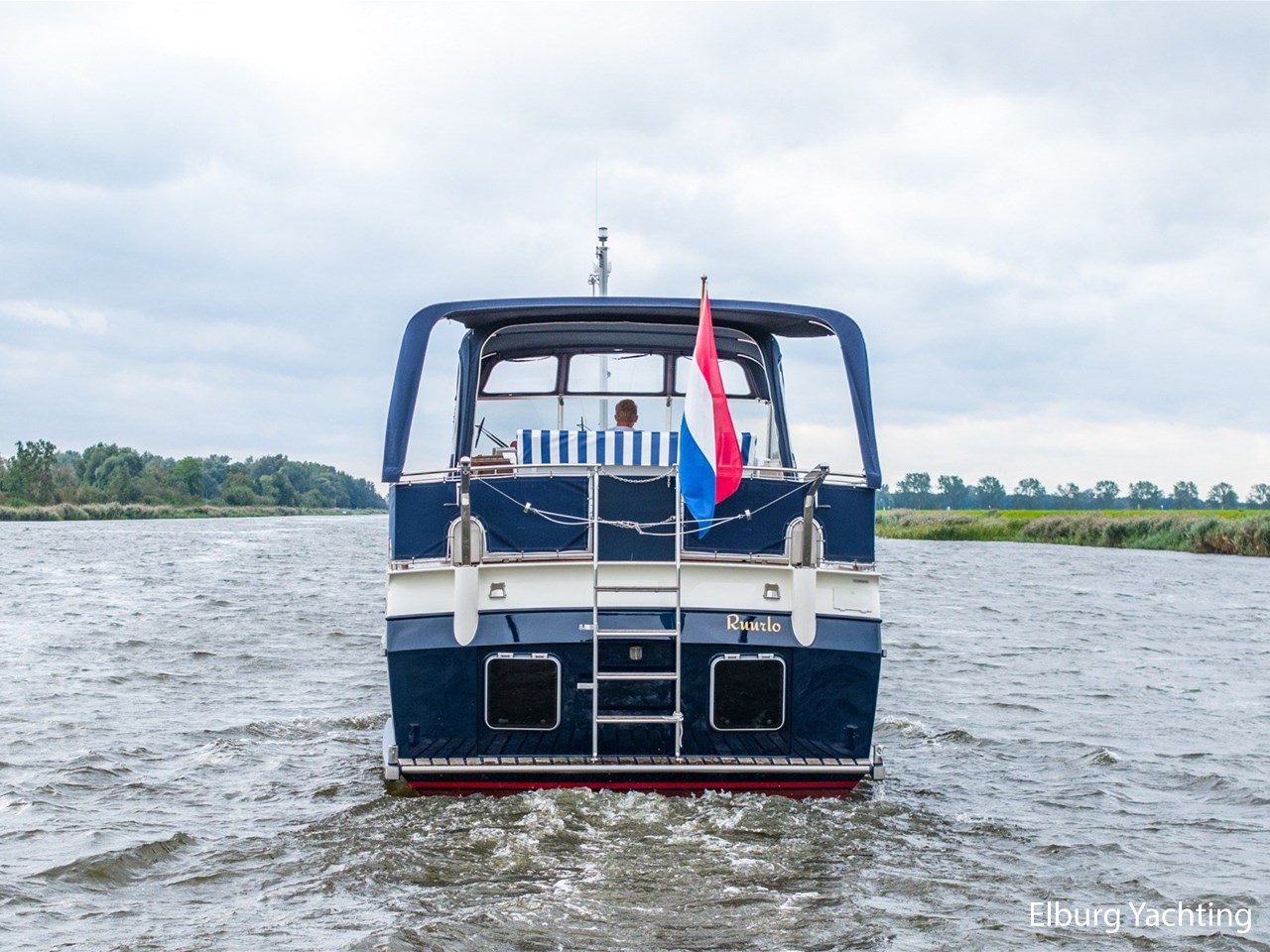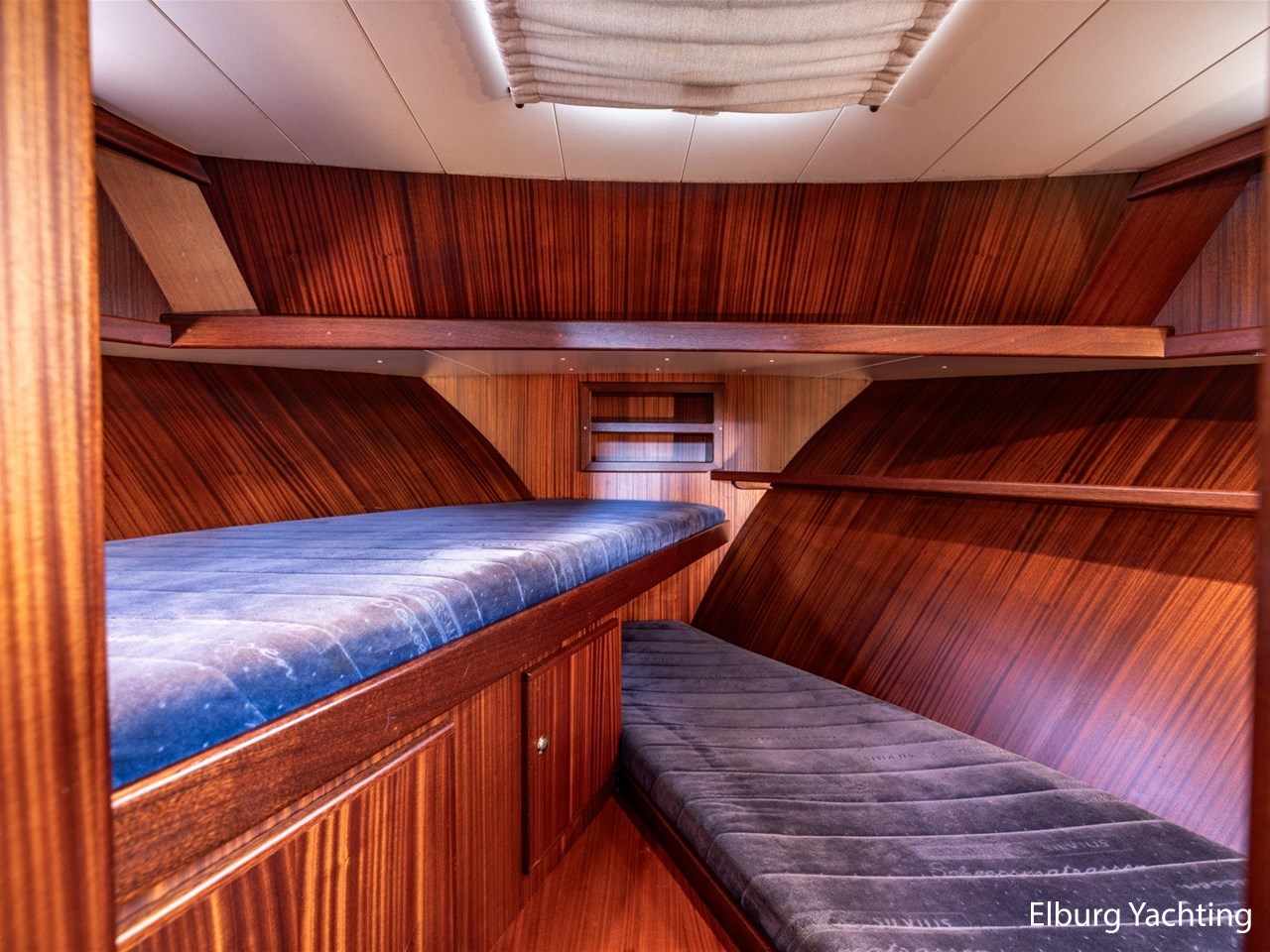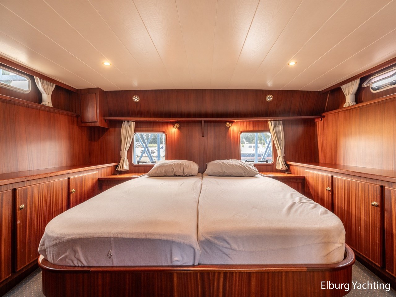 Strakke, goed verzorgde en degelijk gebouwde Privateer 40 XL gebouwd te Privateer Yachts in Uitwellingerga. Rondom is de Privateer 40 XL voorzien van een degelijk dek gemaakt van kurk. Rondom is er niet bezuinigd op de Privateer. Zo valt onder andere de dubbel uitgevoerde r.v.s. zeerailing op alsook de r.v.s. potdeksels. De gangboorden zijn zeer royaal waardoor u zich gemakkelijk verplaatst aan boord. De Privateer 40 XL beschikt over een zeer ruime open kuip, waar zich ook de vaste stuurstand bevindt. De open kuip verbindt zich met de salon via een riante trap. De salon bestaat uit prachtig mahony houten interieur met nette blauwe kussens, te openen ramen aan bak- en stuurboord en een het middelste raam aan de voorzijde kan ook opengeklapt worden. De eigenaarshut is erg royaal uitgevoerd en beschikt over een riant Frans bed, veel opbergruimte, airconditioning en meerdere te openen ramen met muggenhorren. De Privateer 40 XL beschikt over een ruime natte cel met eigen douchecabine en twee aparte elektrische toiletten, luxe 2 persoons vaarstoel bij stuurstand, veel opbergmogelijkheden aan dek in de verschillende bakskisten, volledig afluitbare tent rondom gehele achterdek, klapbare ramen voor lage kruiphoogte, dekwaspomp, 2 x raam in spiegel, Candy wasmachine 120ES.